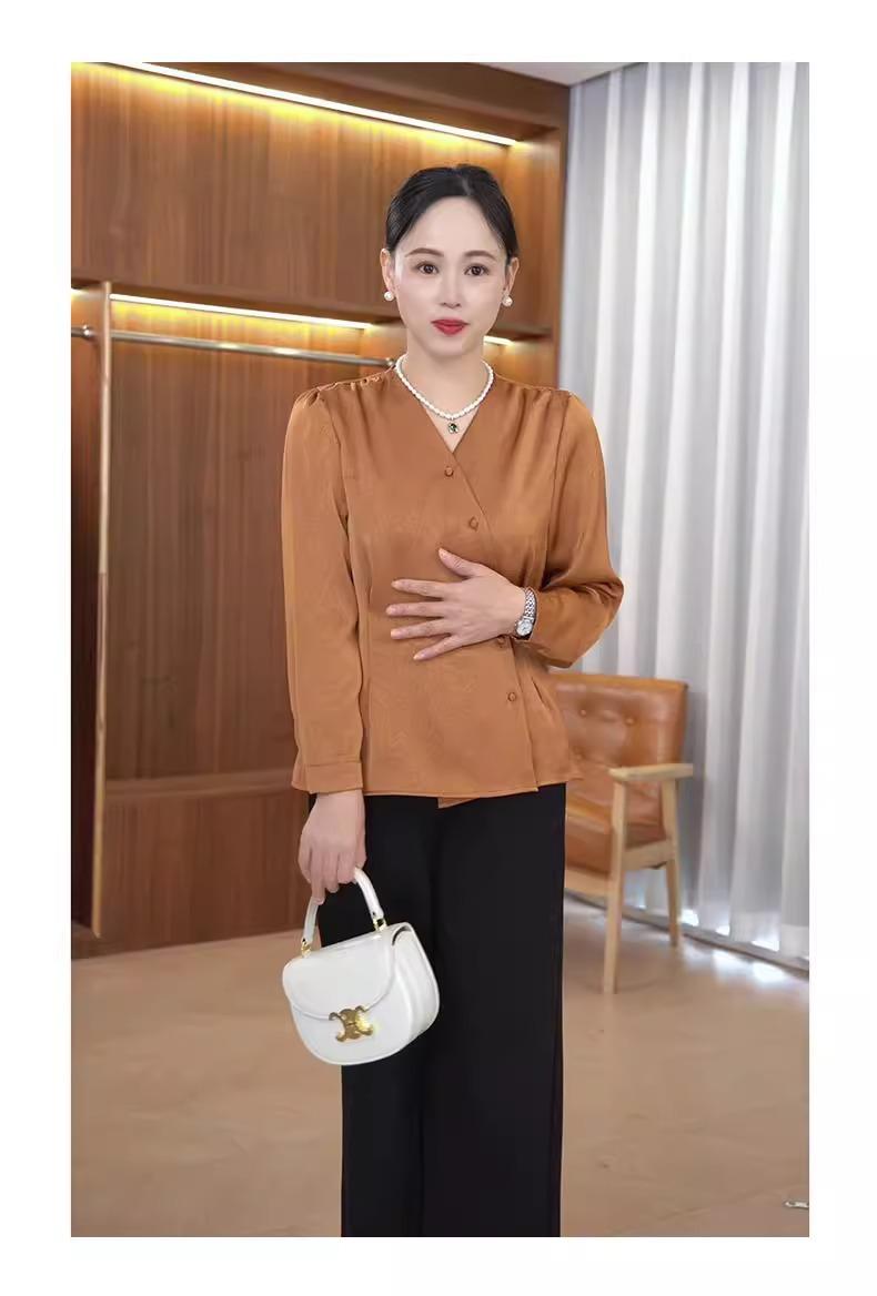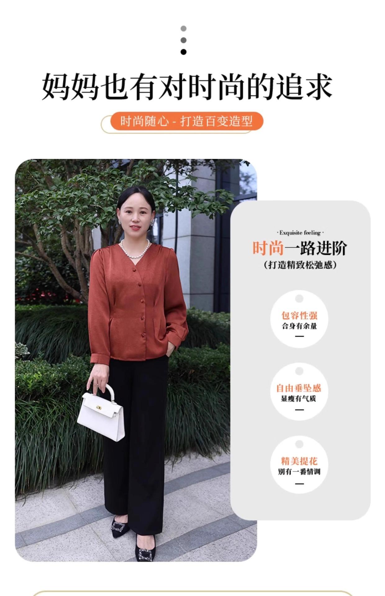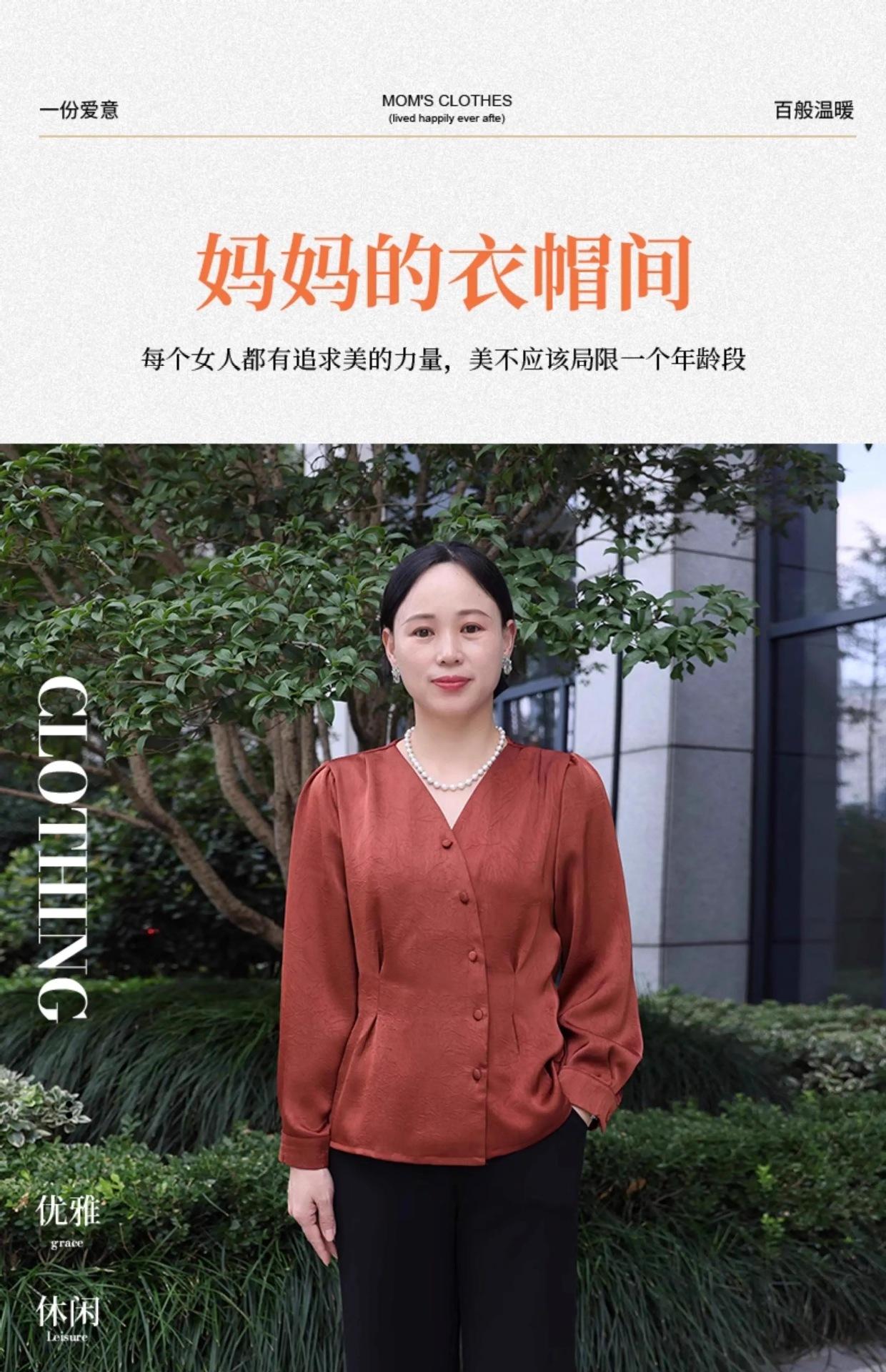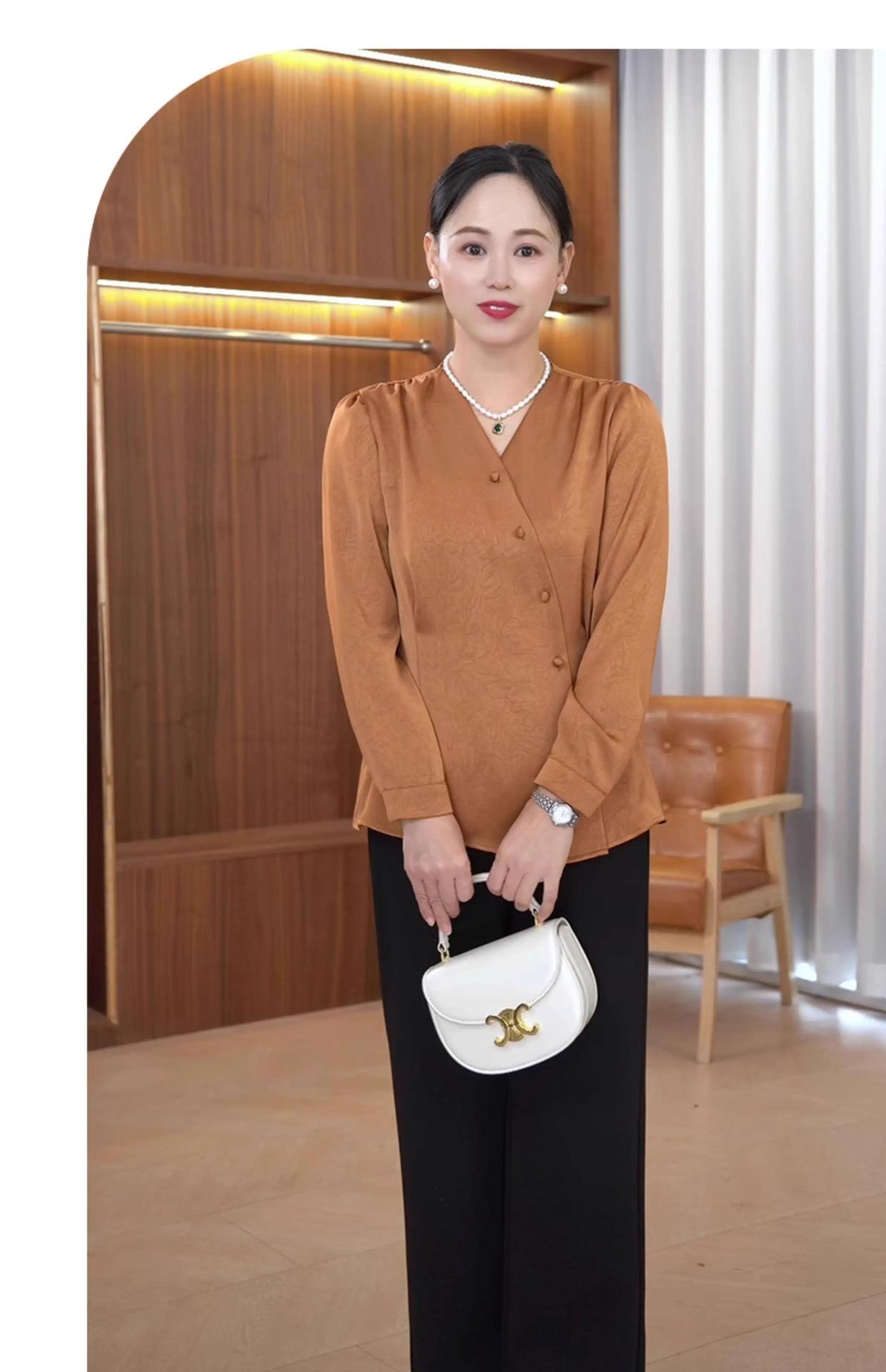 Madre de mediana edad moda primavera temperamento camisa pequeña 2025 nuevo damas de mediana edad y mayores primavera y otoño esposa rica top versátil