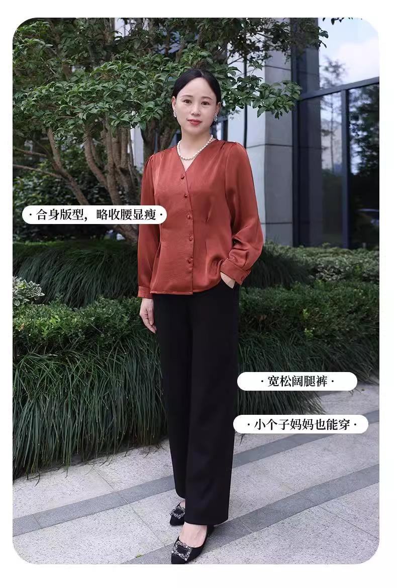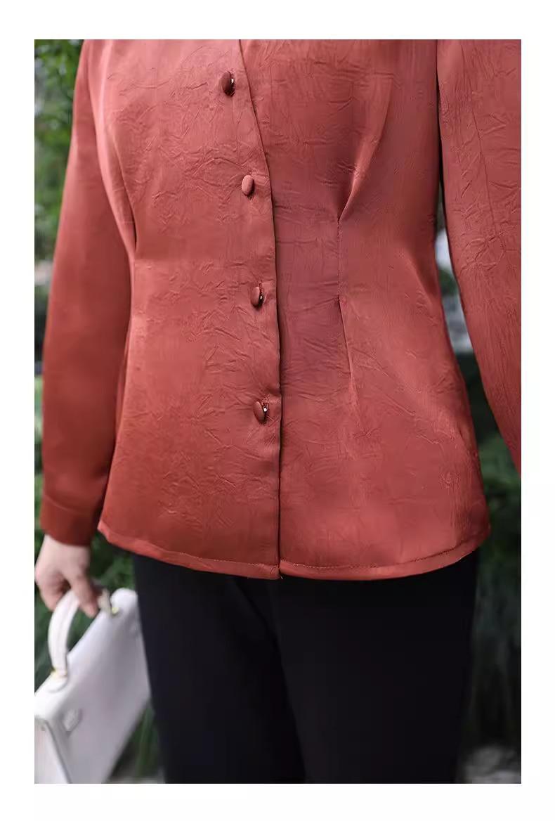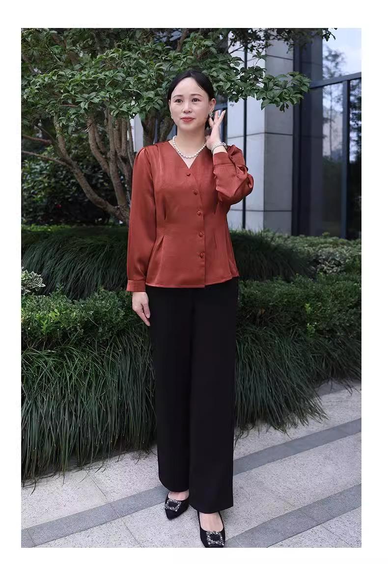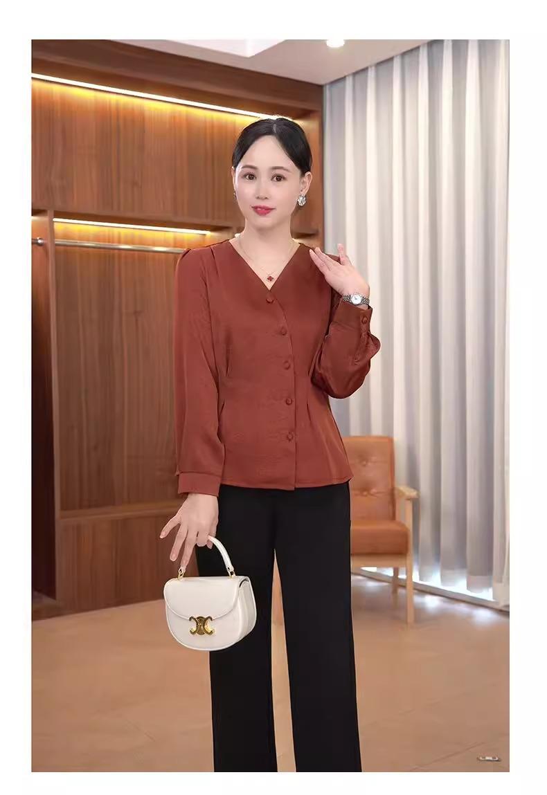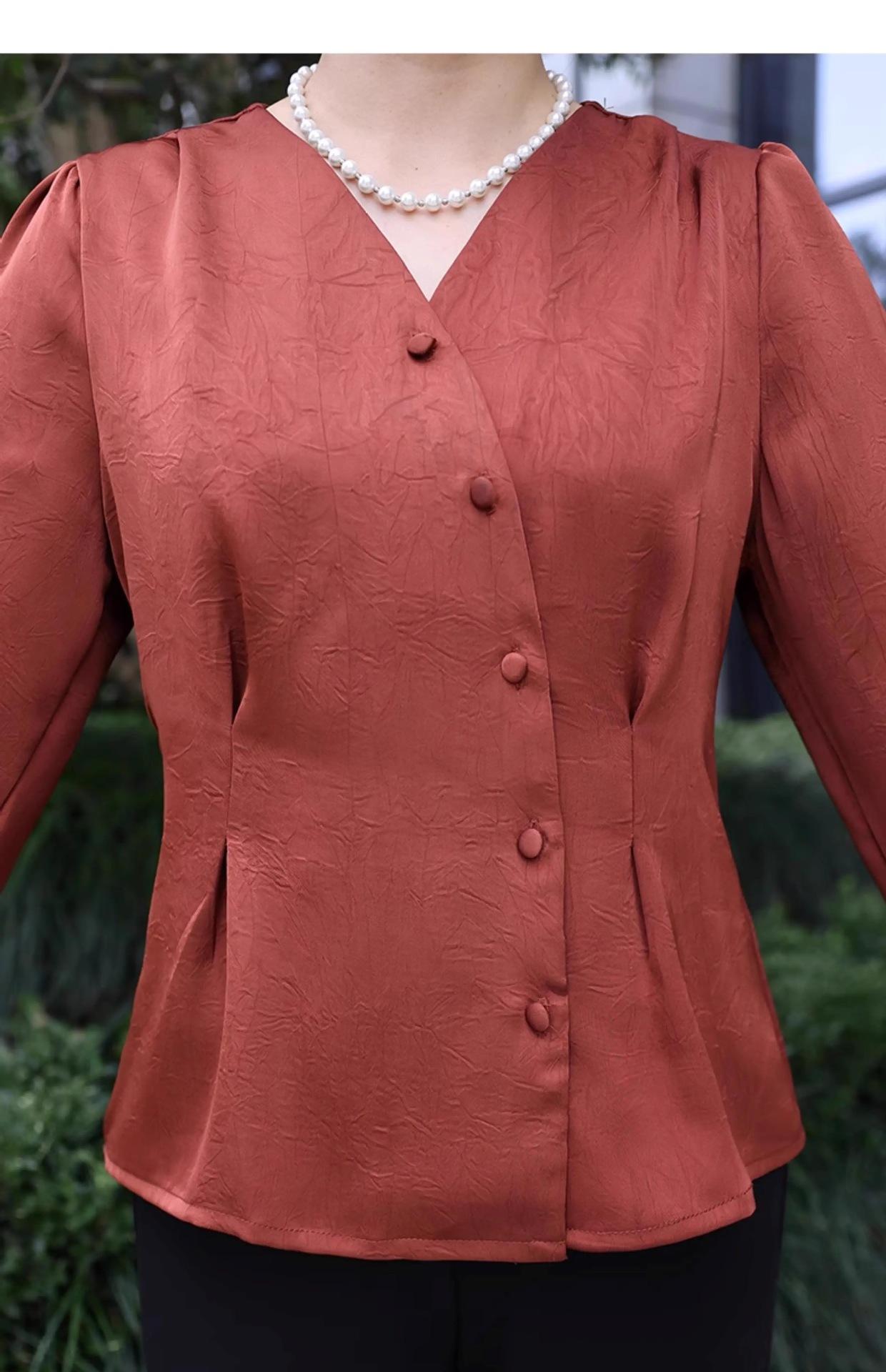 Madre de mediana edad moda primavera temperamento camisa pequeña 2025 nuevo damas de mediana edad y mayores primavera y otoño esposa rica top versátil