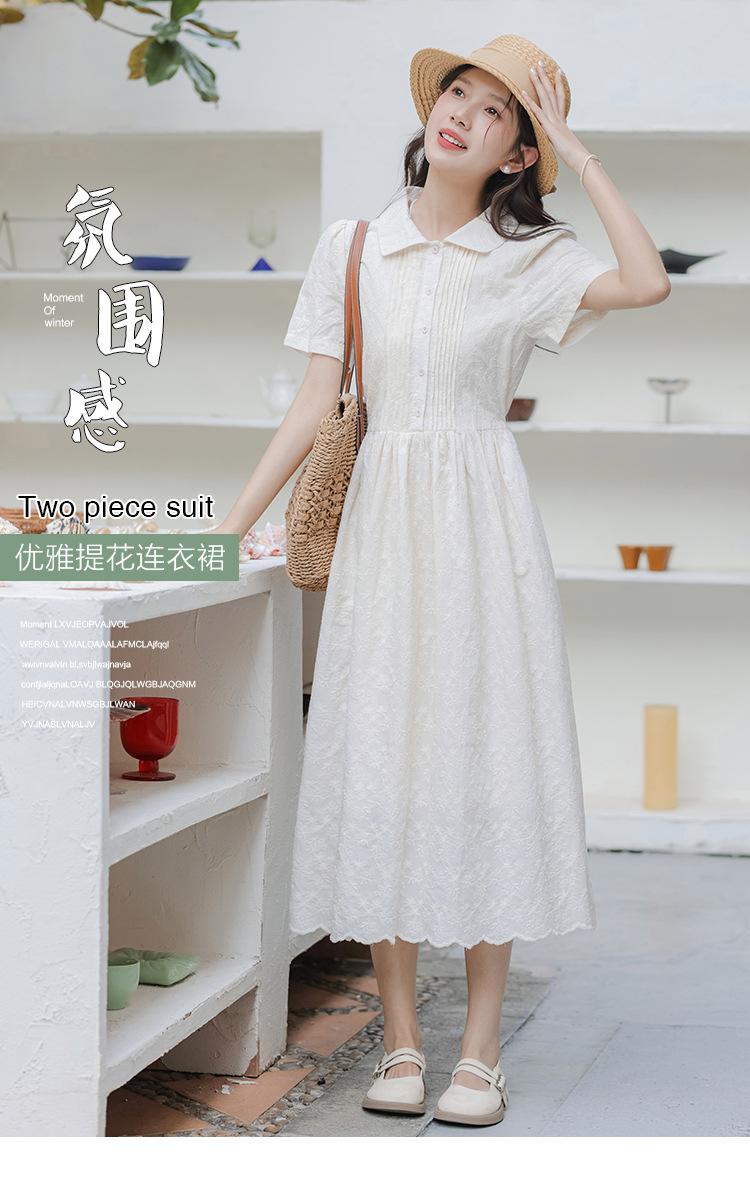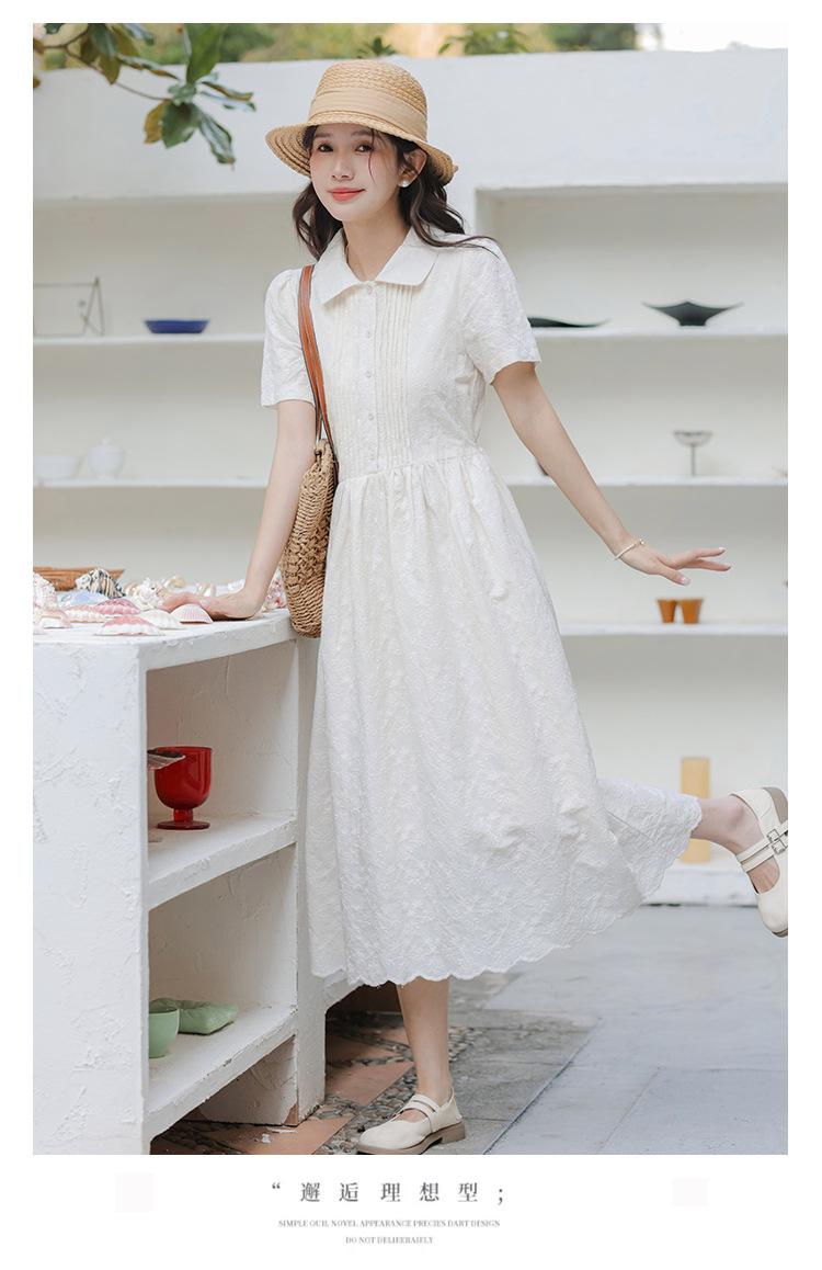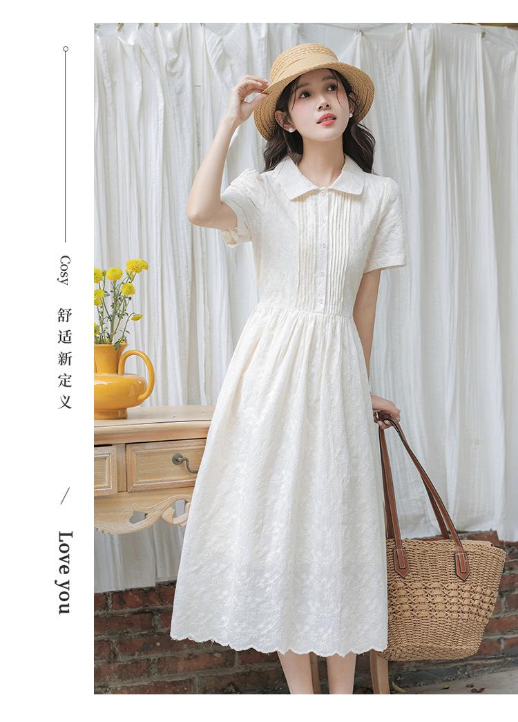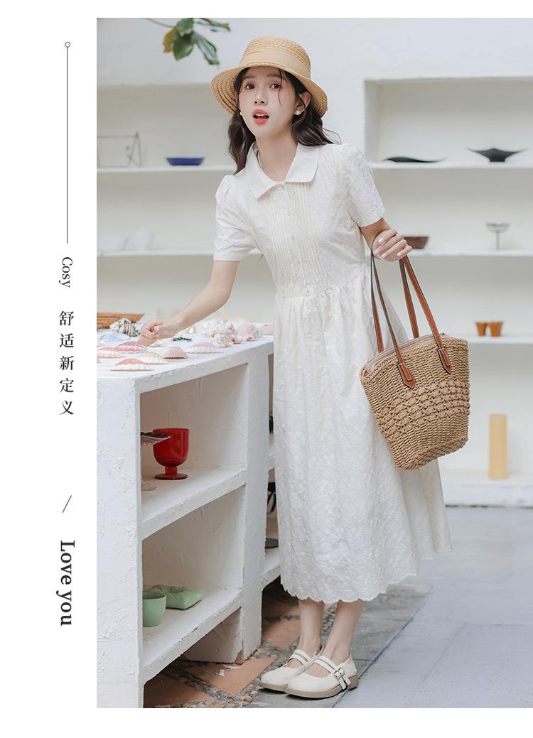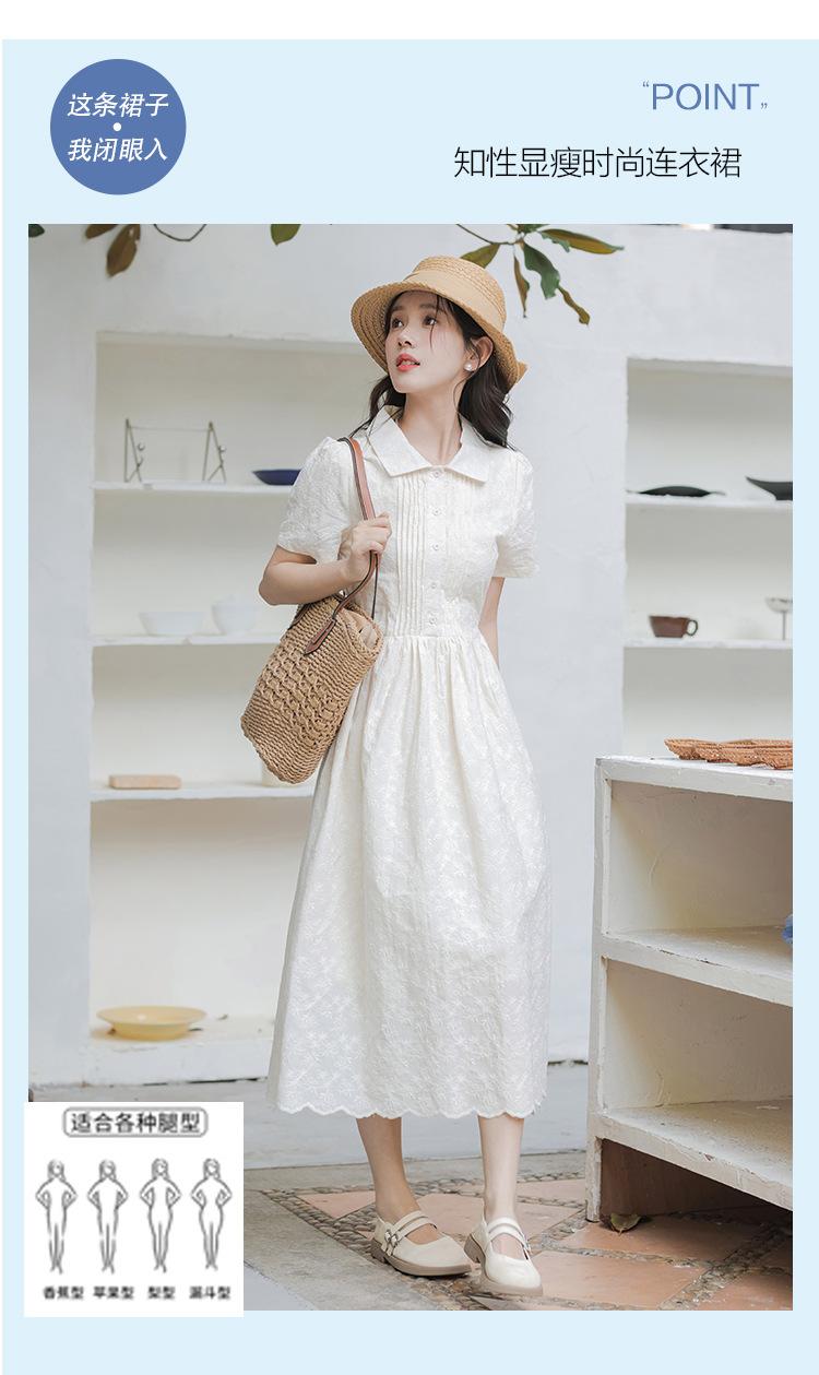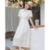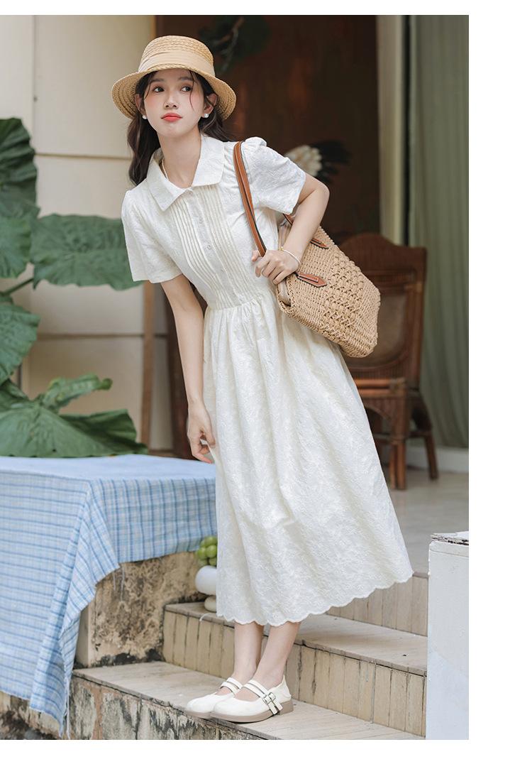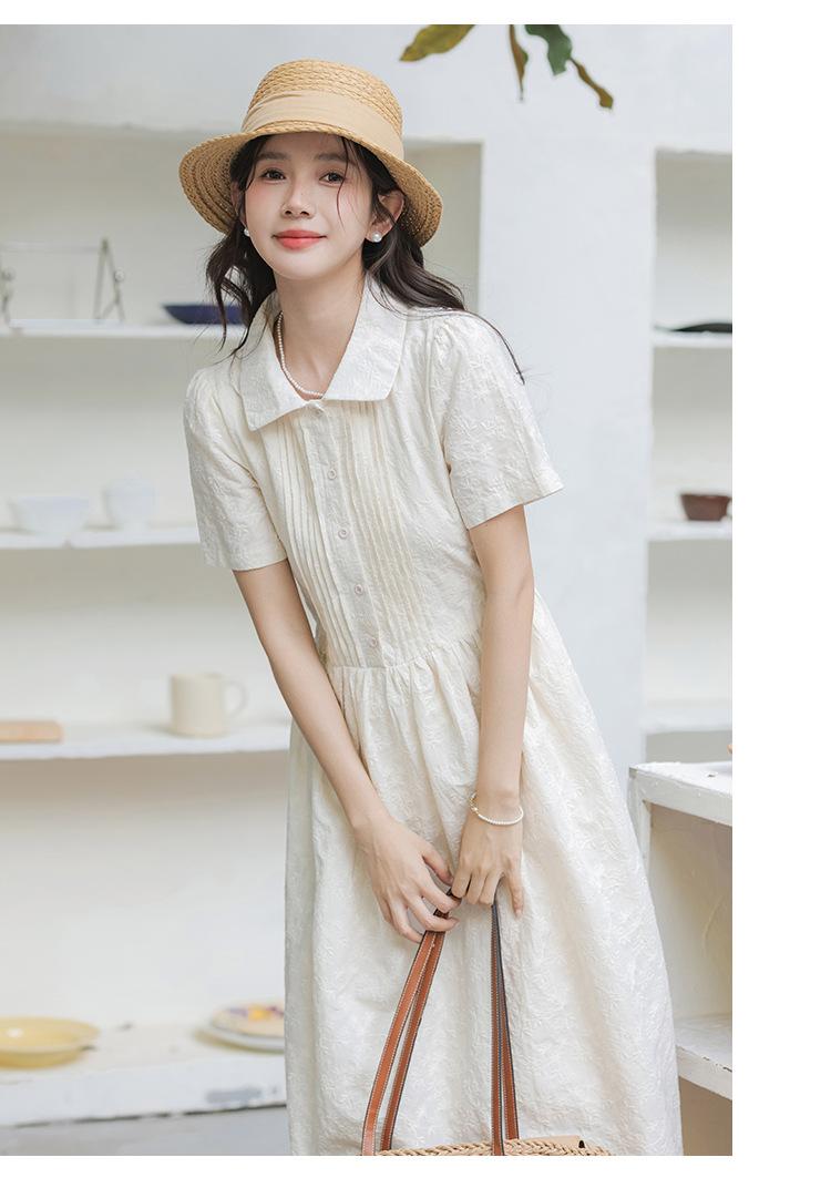 Vestido midi de cintura con temperamento de diosa artística y gentil para mujer verano 2025 cuello de muñeca francés jacquard manga corta