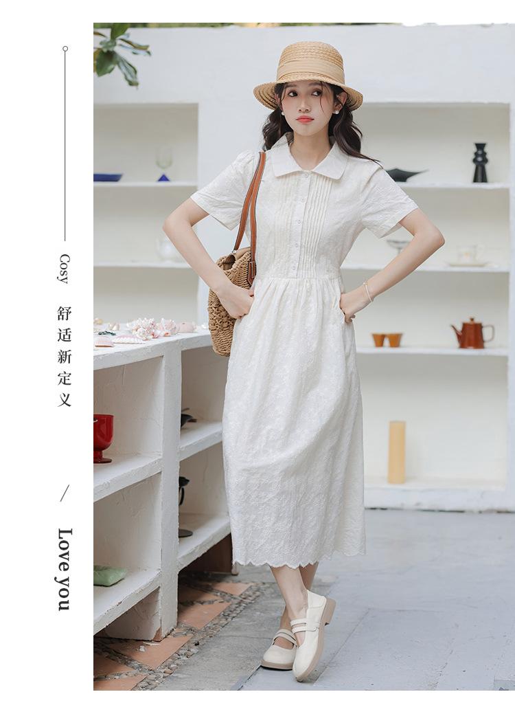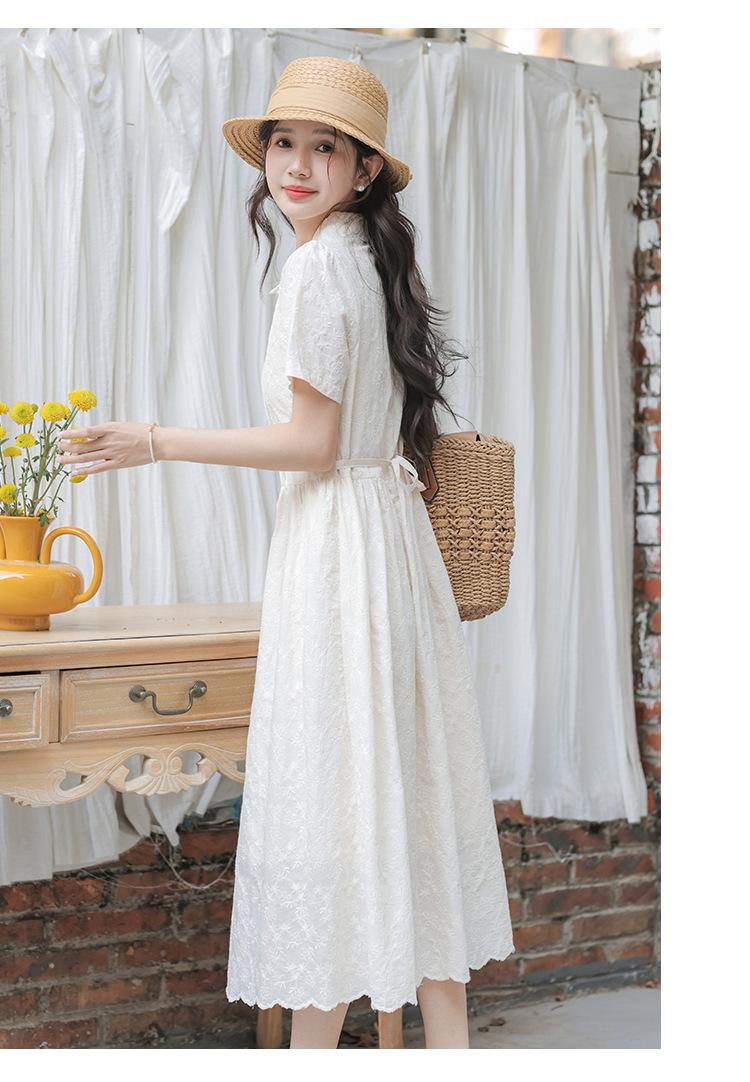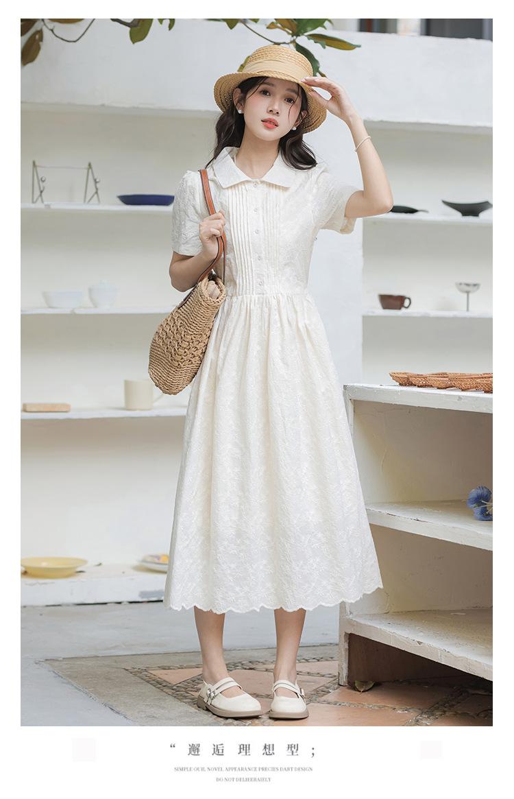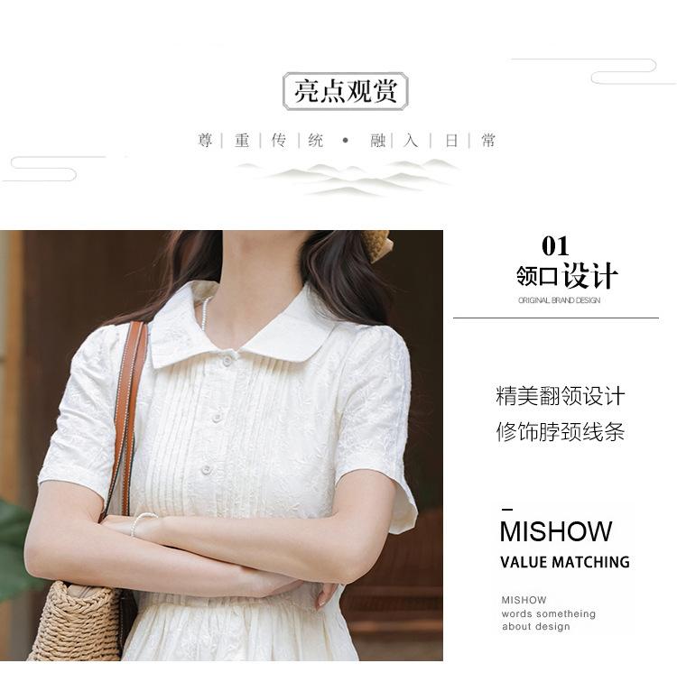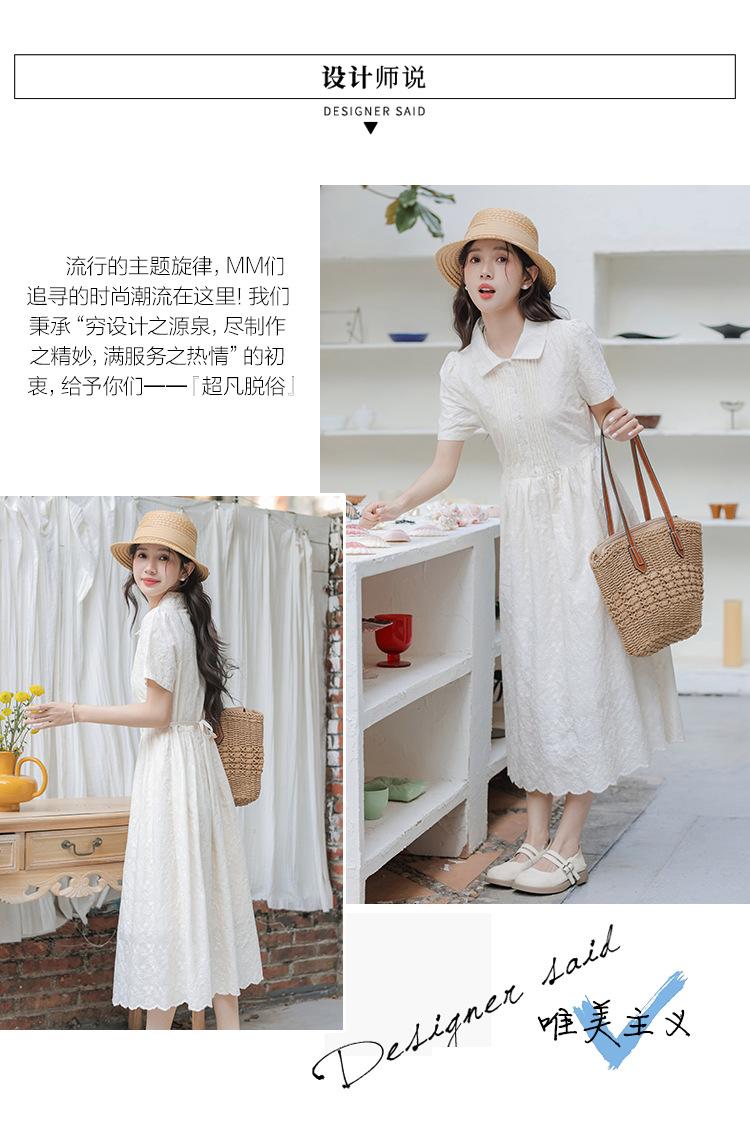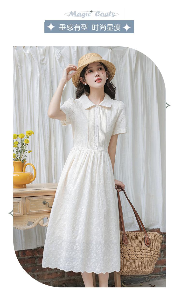 Vestido midi de cintura con temperamento de diosa artística y gentil para mujer verano 2025 cuello de muñeca francés jacquard manga corta
