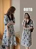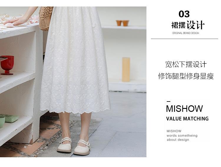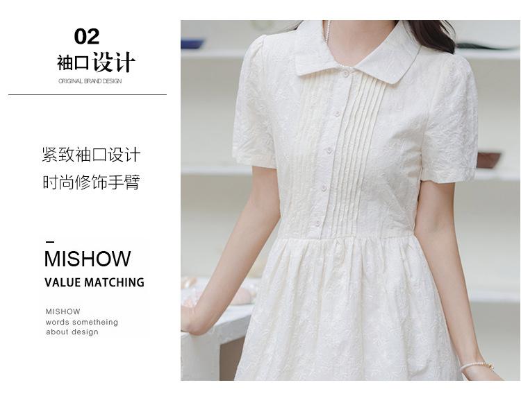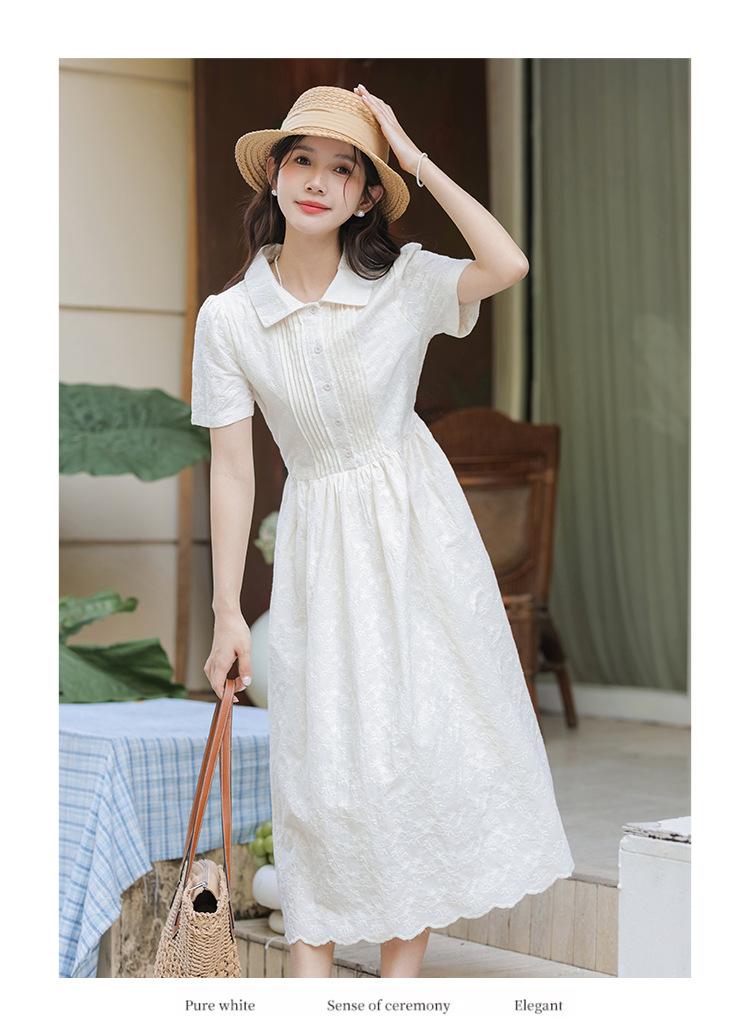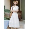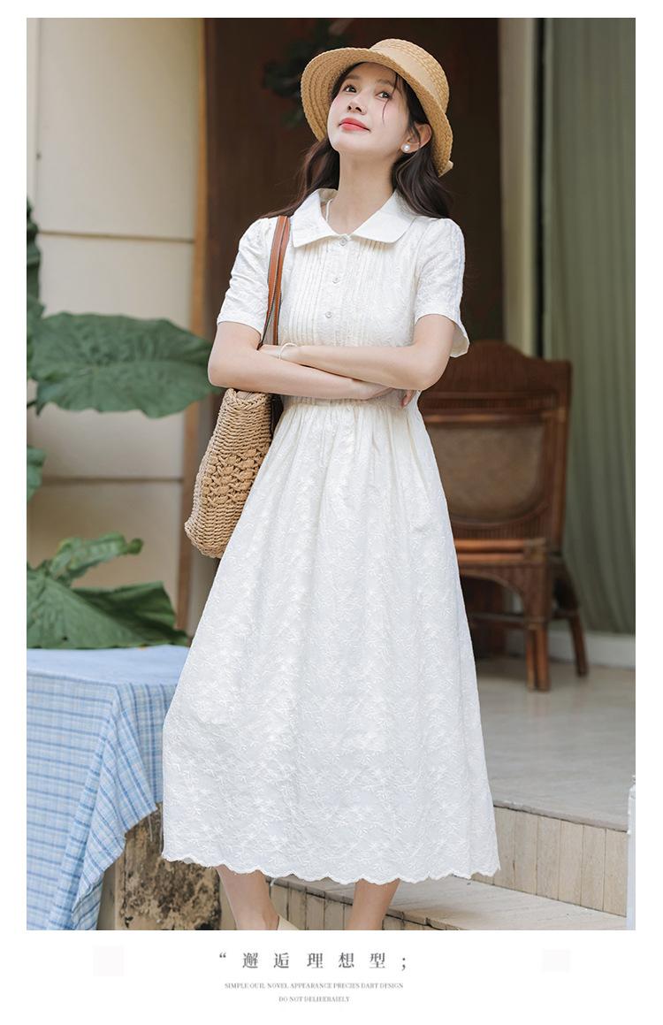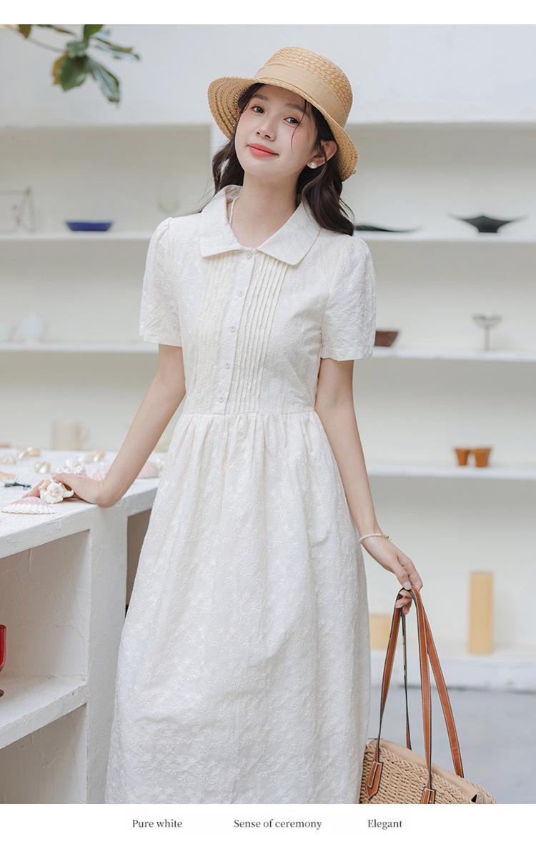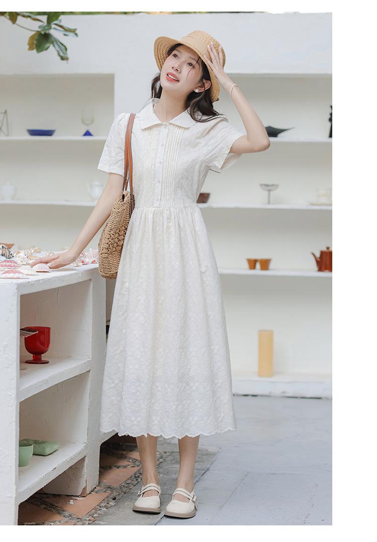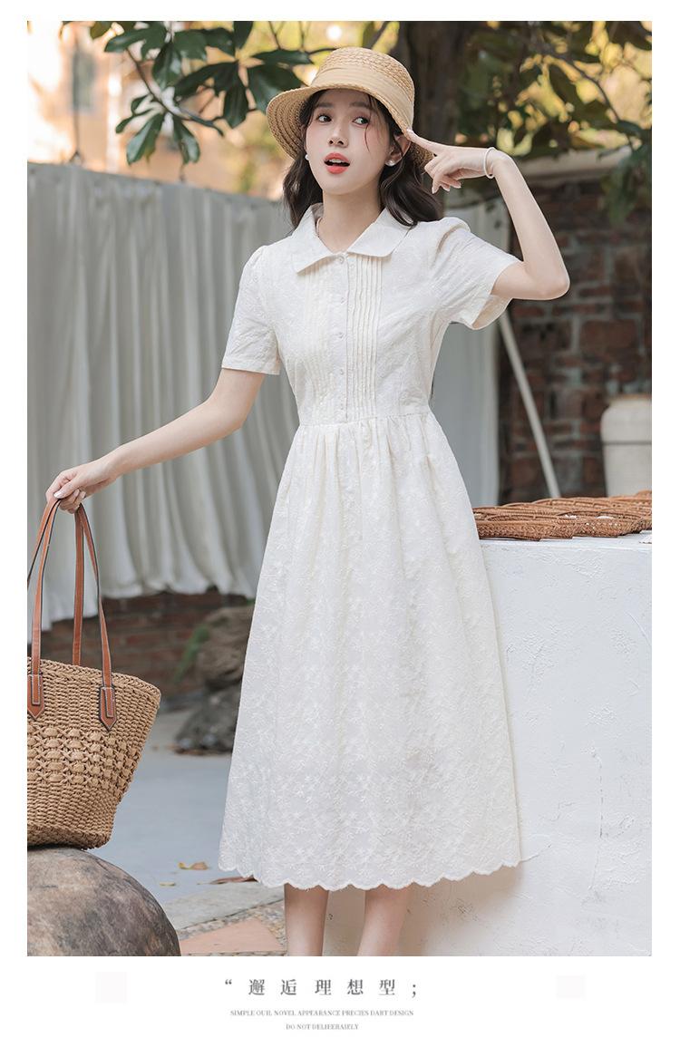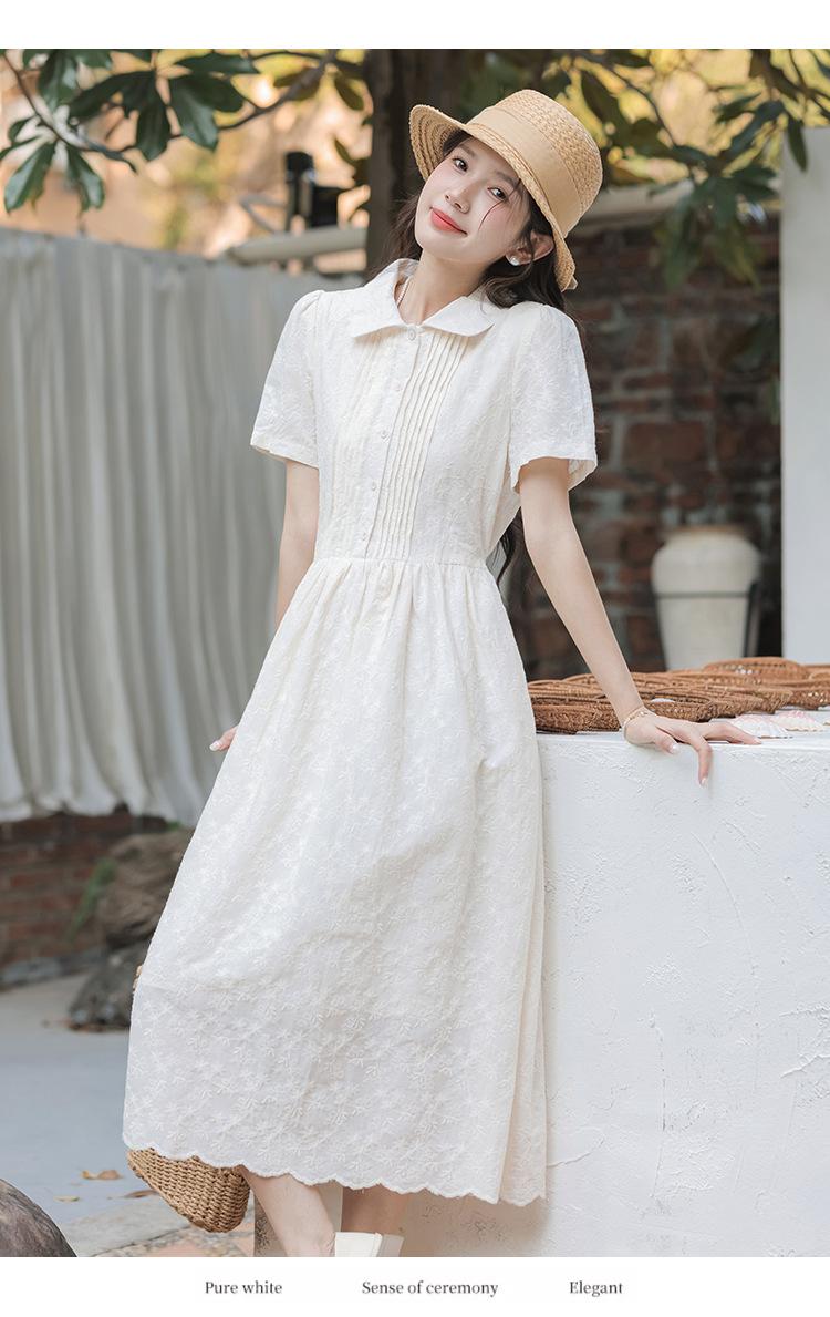 Vestido midi de cintura con temperamento de diosa artística y gentil para mujer verano 2025 cuello de muñeca francés jacquard manga corta