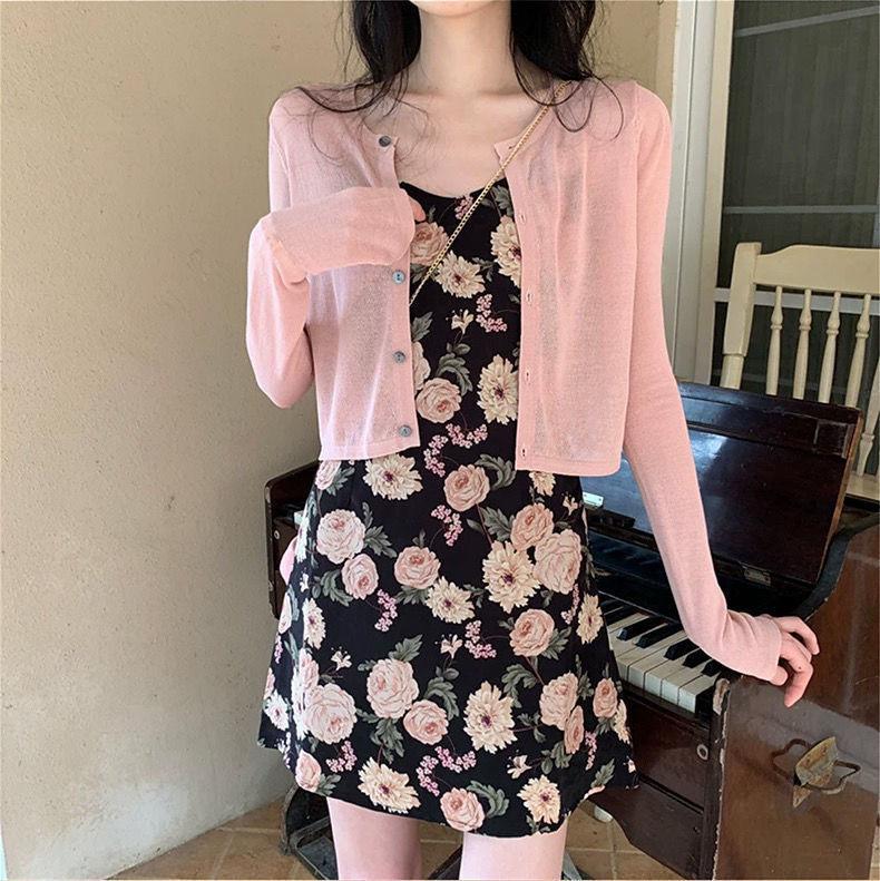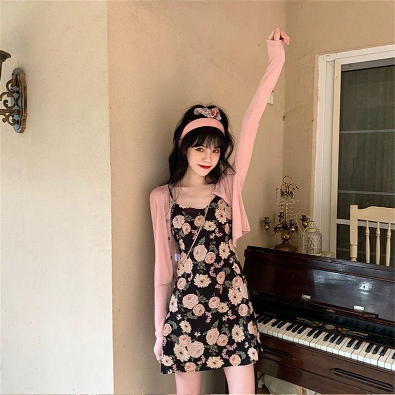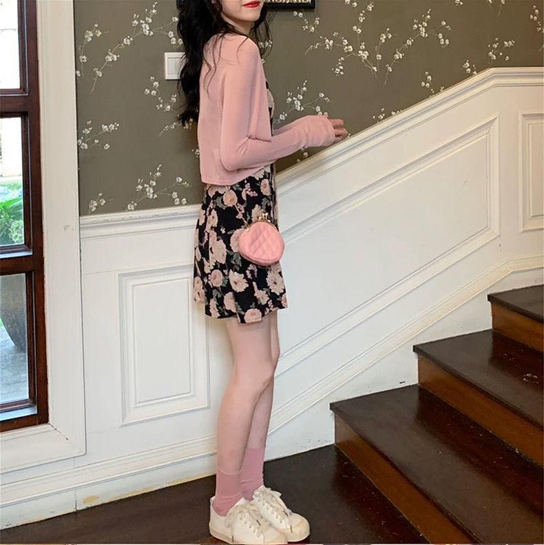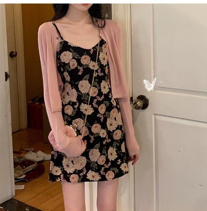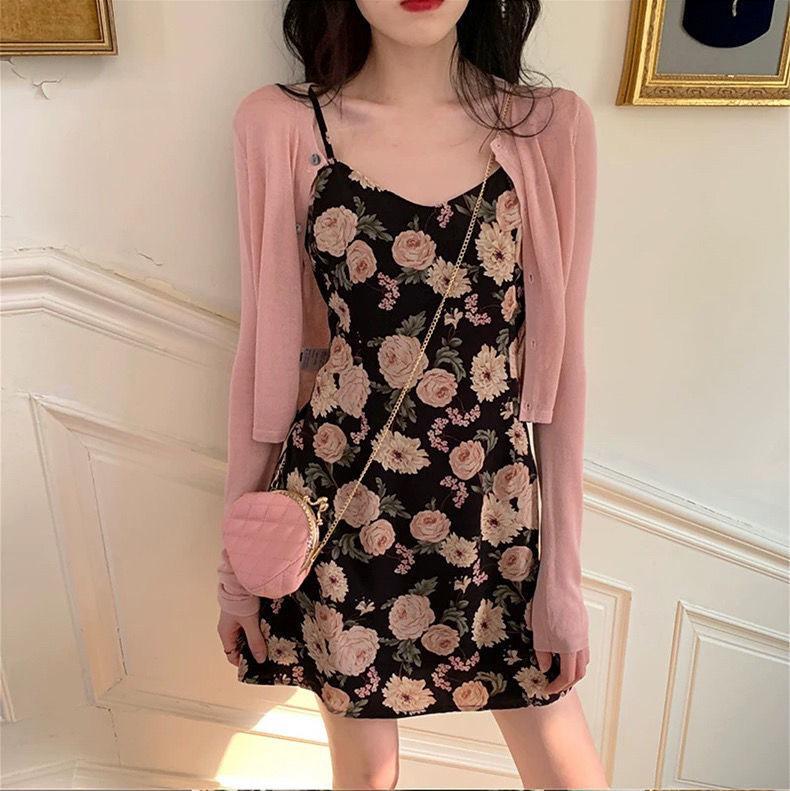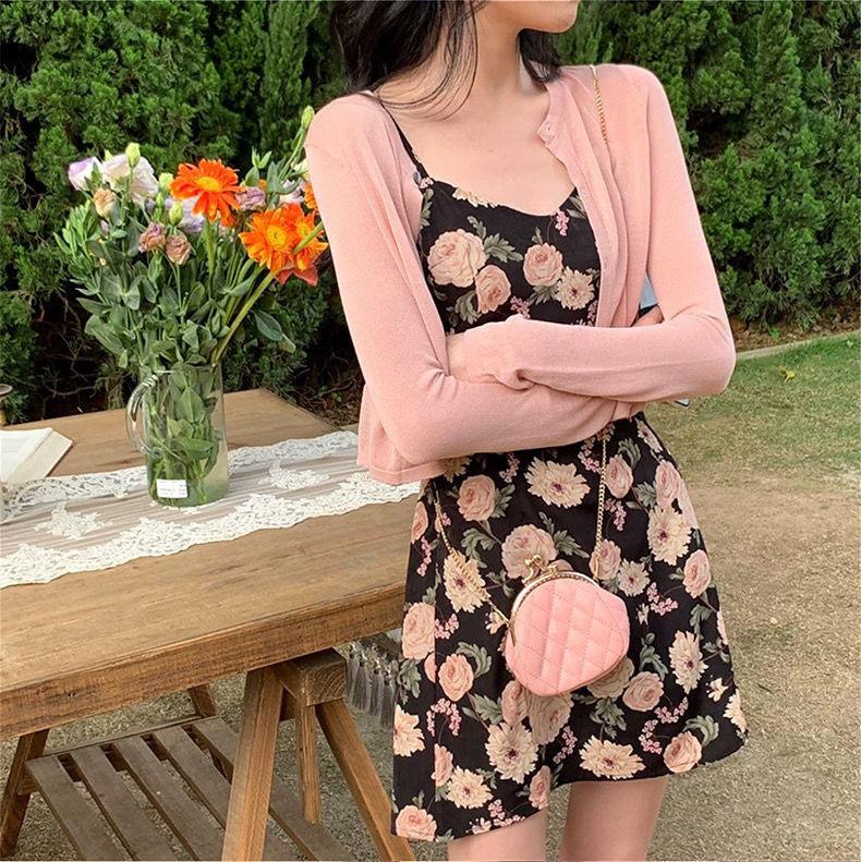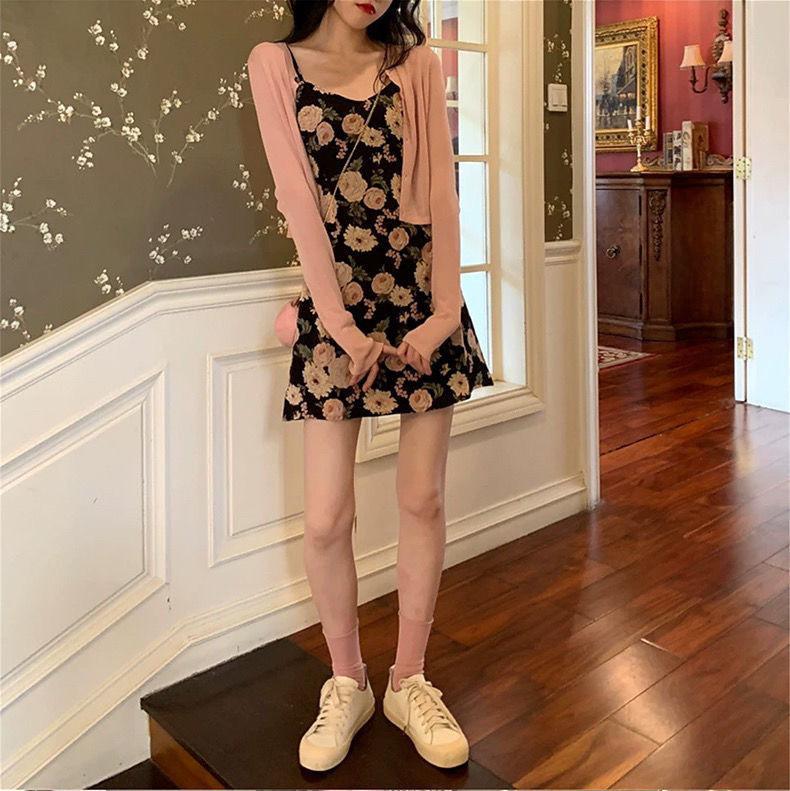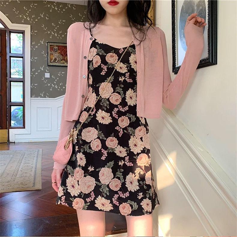 2025 Nuevo Verano Talla Grande Ropa de Mujer para mm Gorditas Vestido de Tirantes Floral Francés Cárdigan Traje de Dos Piezas Estilo Occidental