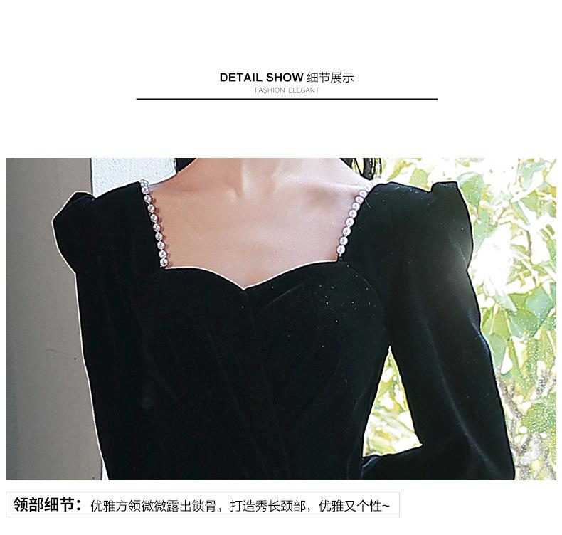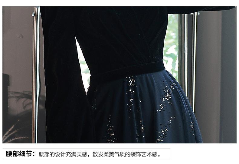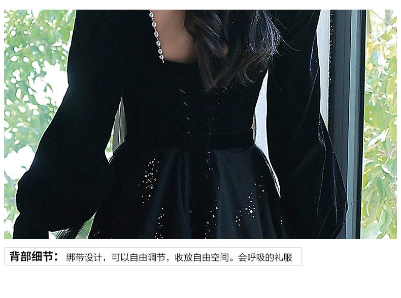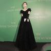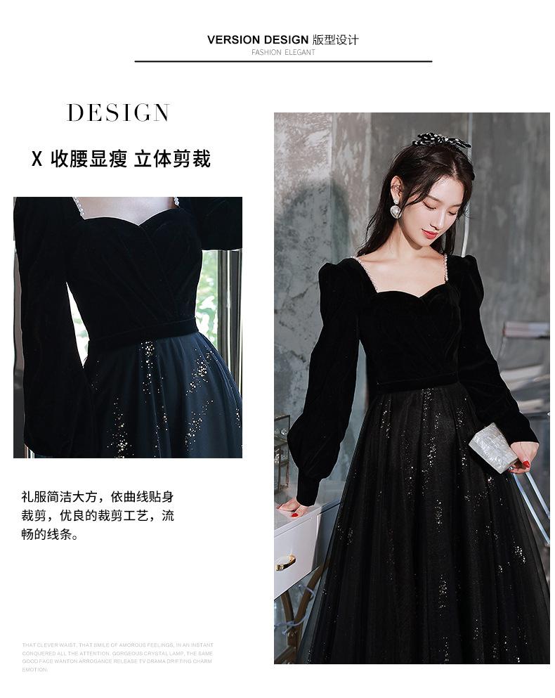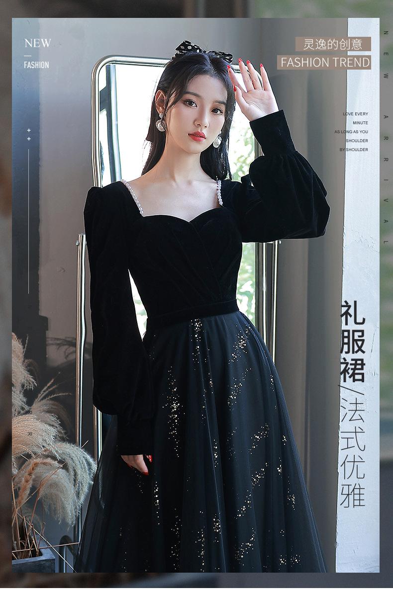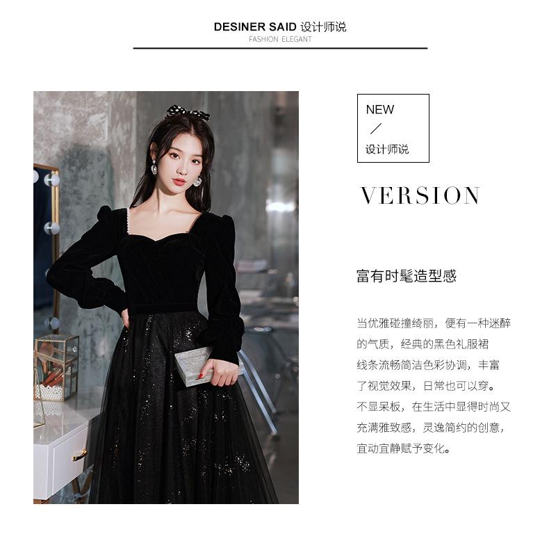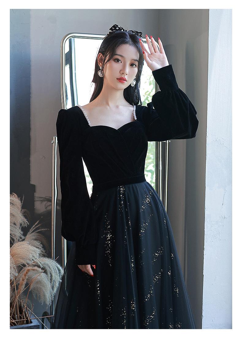 Vestido de Noche Negro para Mujer 2025 Nuevo Verano Banquete Elegante Celebridad Arte Vestido de Examen Manga Larga Vestido Fiesta Anual