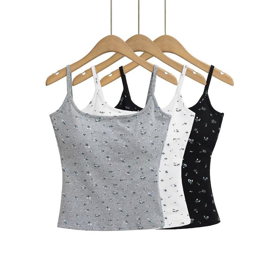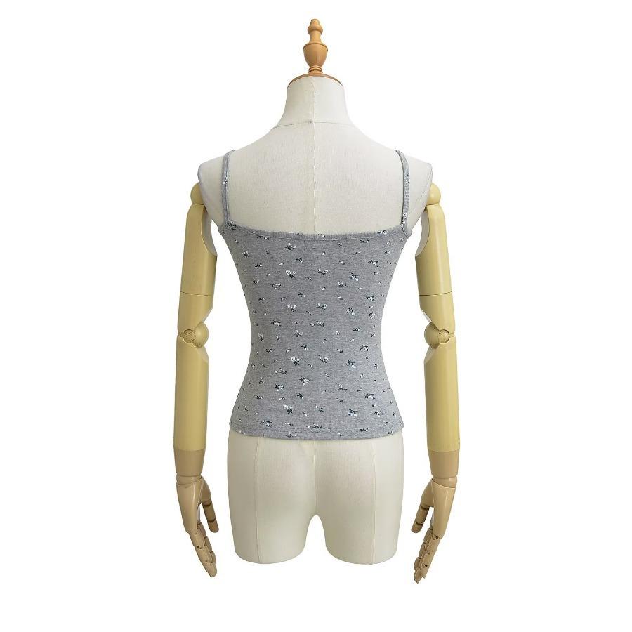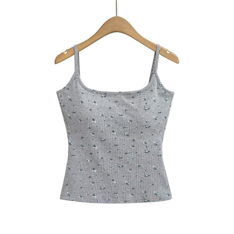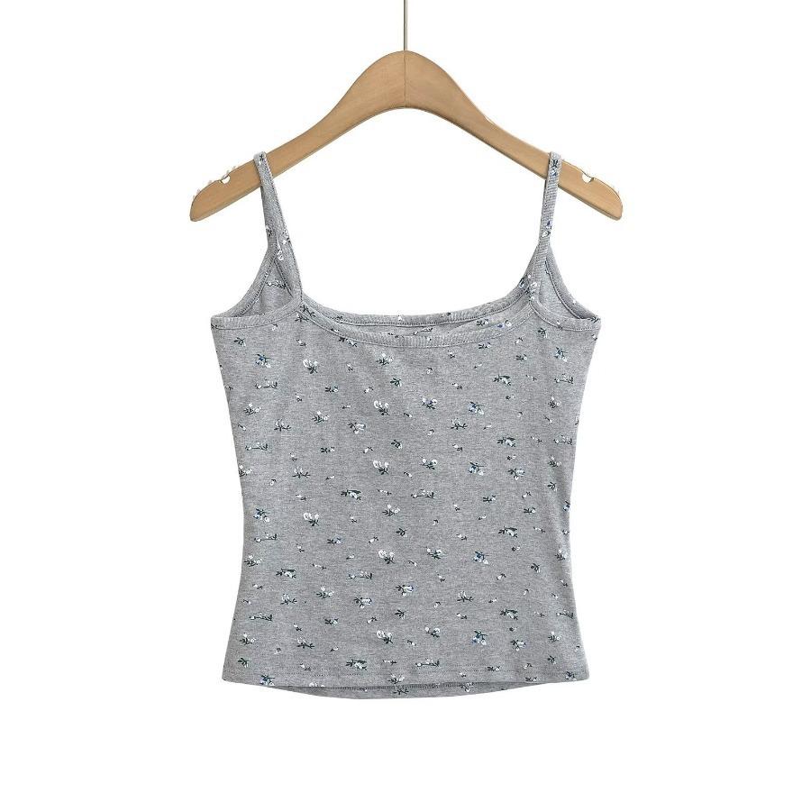 Estilo Deseo Puro Sexy Top Corto de Corte Plano con Almohadilla en el Pecho para Mujer Francés Ajustado Floral Ropa Exterior Camisola Interior