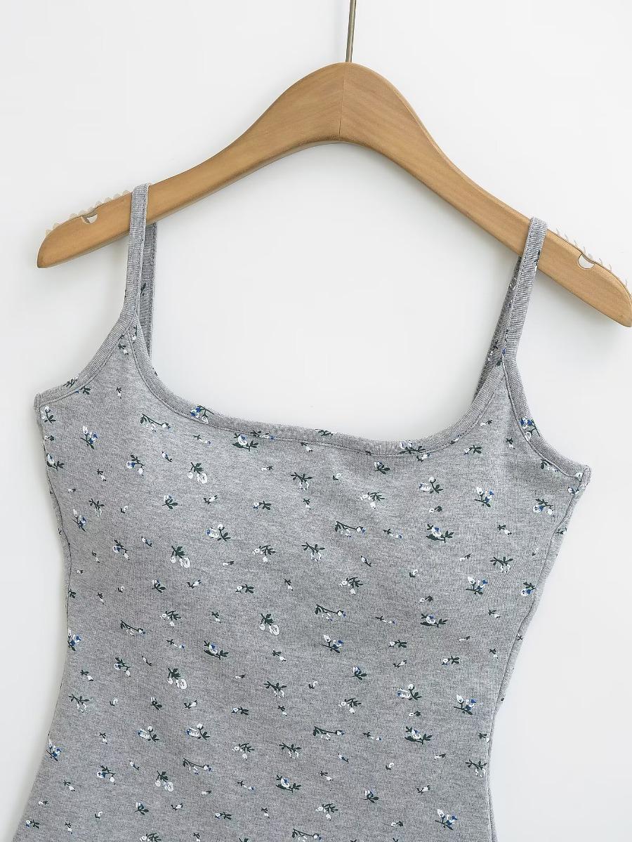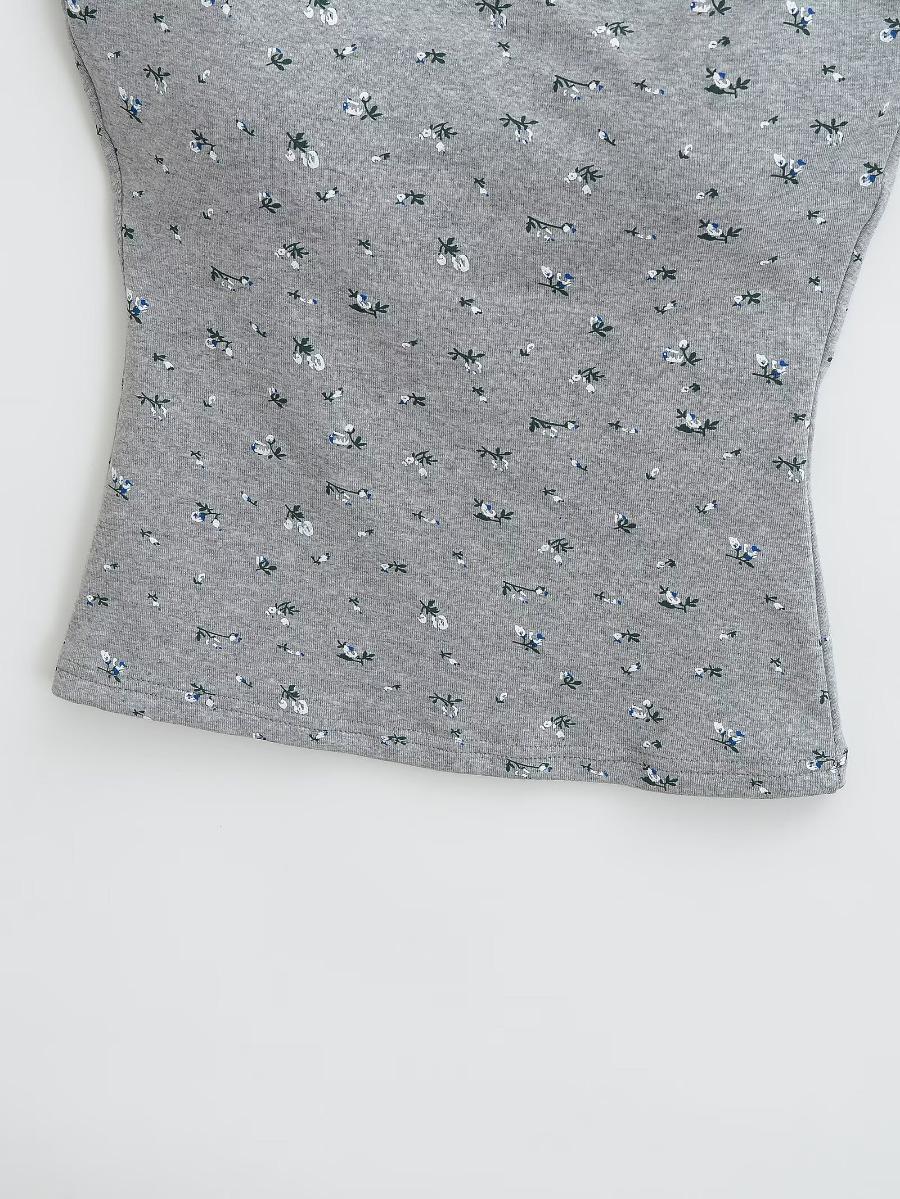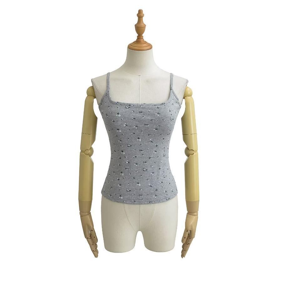Estilo Deseo Puro Sexy Top Corto de Corte Plano con Almohadilla en el Pecho para Mujer Francés Ajustado Floral Ropa Exterior Camisola Interior