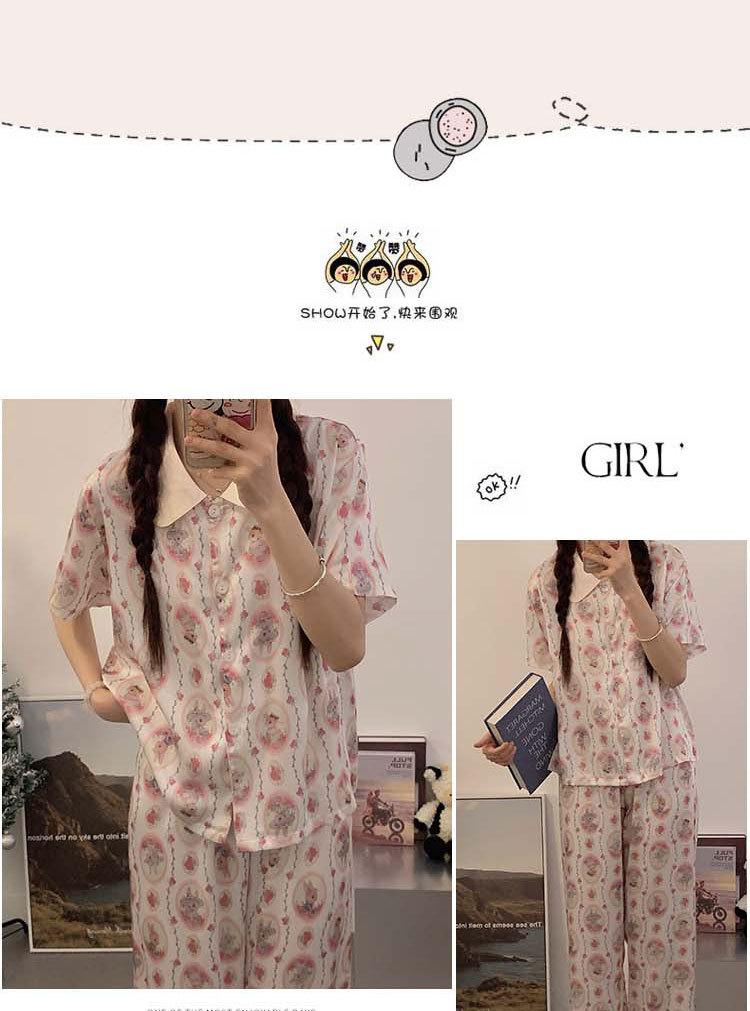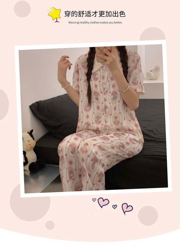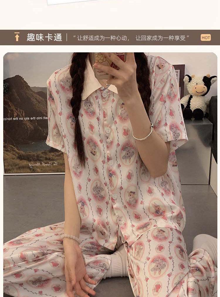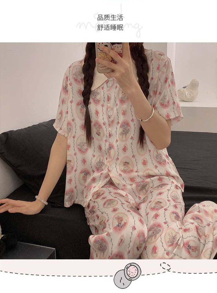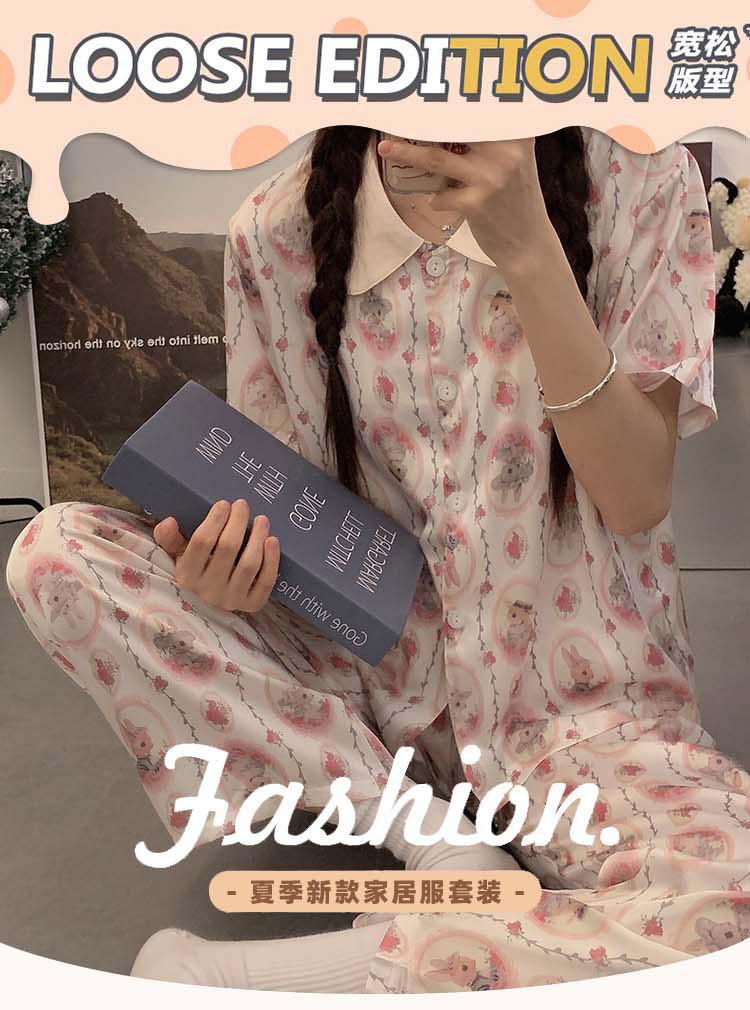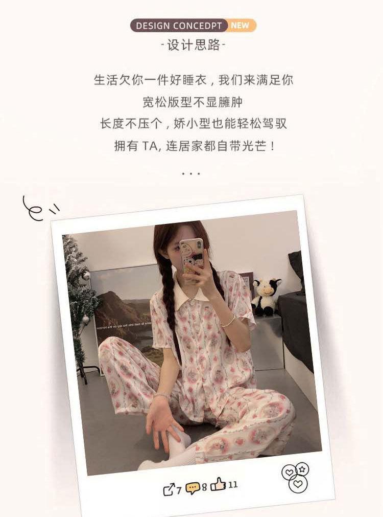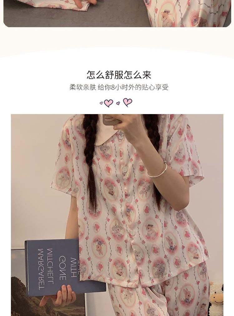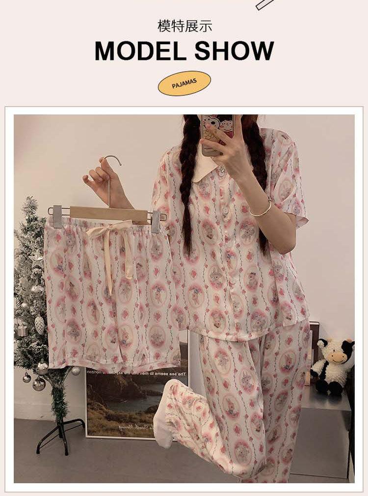 2024 Nuevo Pijama de Seda de Hielo para Mujer Verano Nuevo Princesa Manga Corta Shorts Pantalones Delgados Tres Piezas Ropa para el Hogar