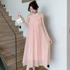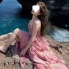 Vestido Dulce de Chifón con Cuello Halter para Mujer, Falda de Vacaciones de Verano en la Playa, Elegante Falda Larga sin Mangas con Hombros Descubiertos