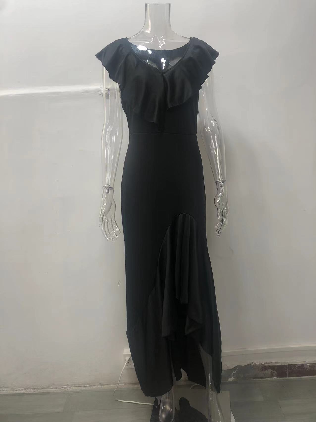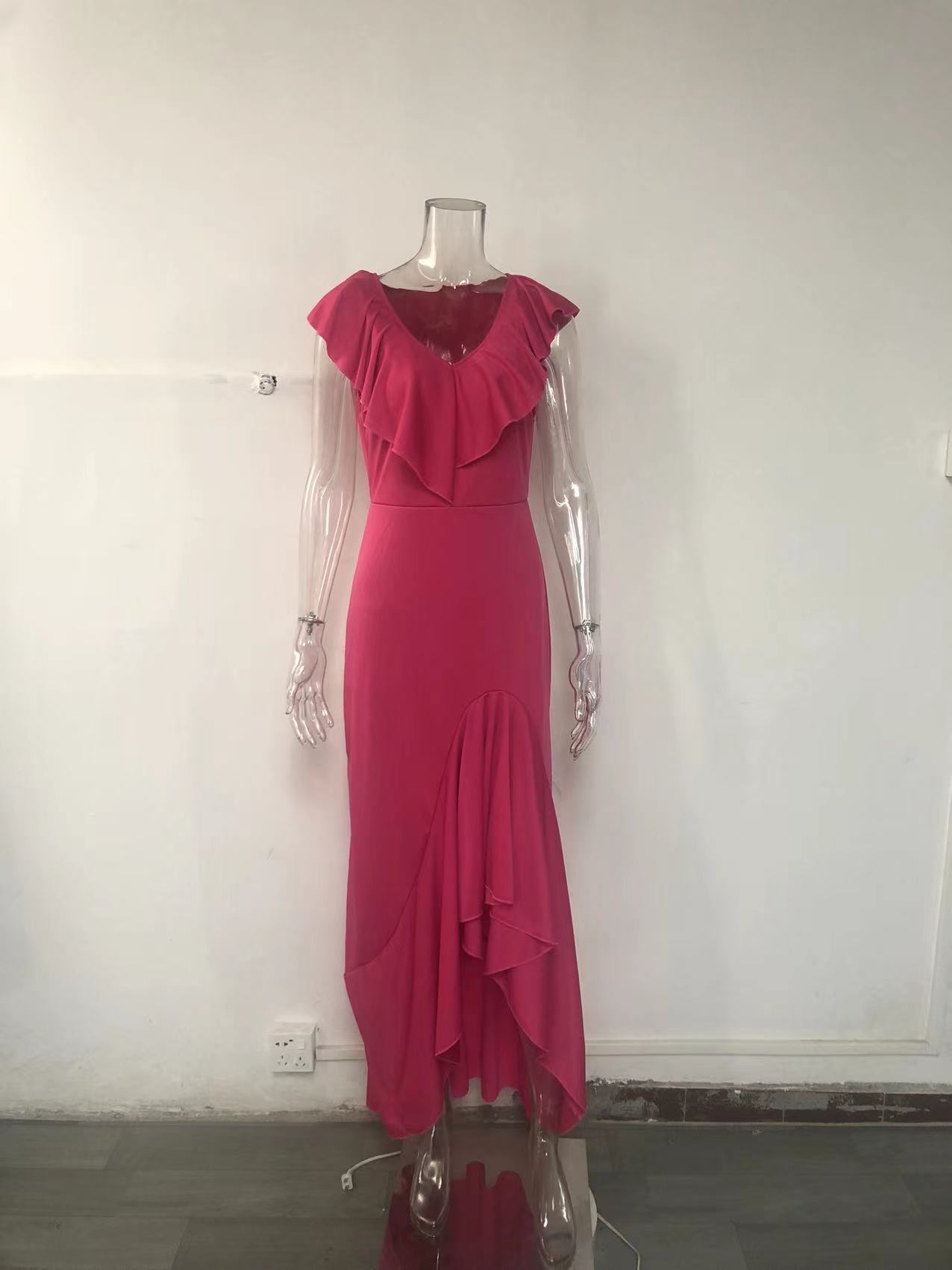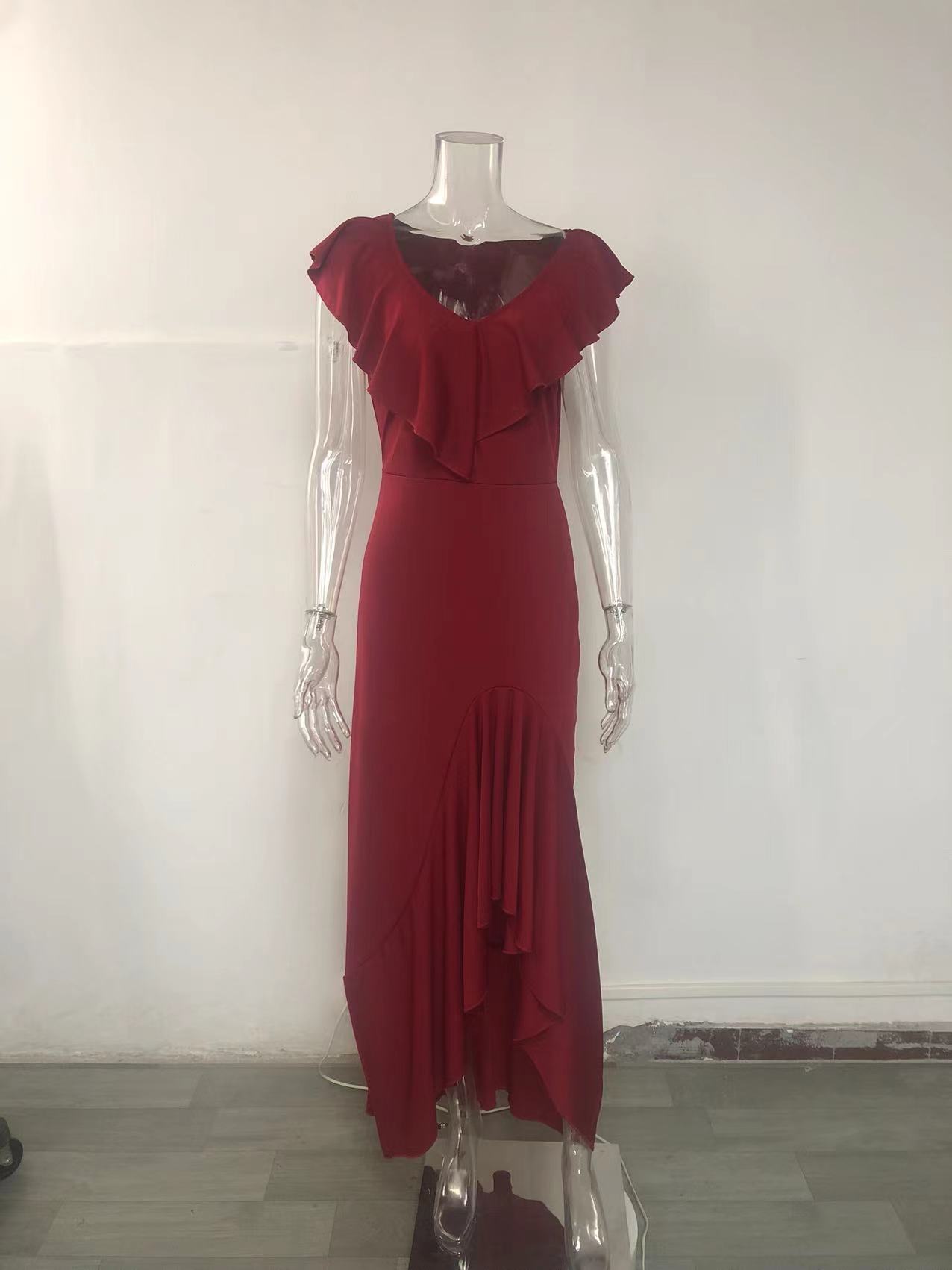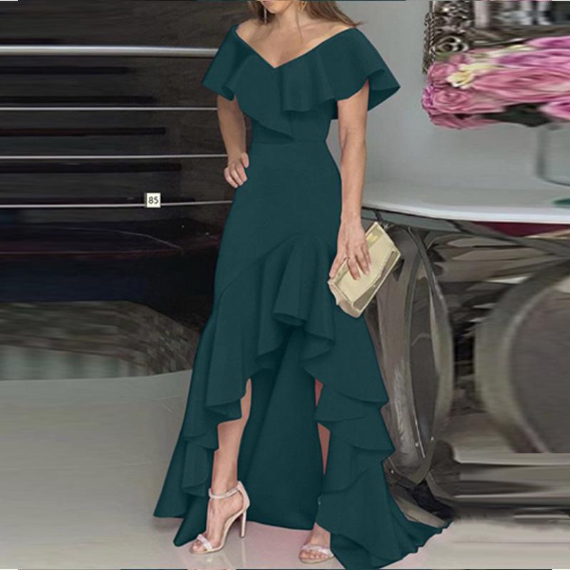 Vestido elegante con volantes irregulares y cuello en V para mujer europea y americana de AliExpress Amazon
