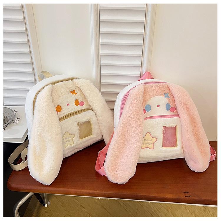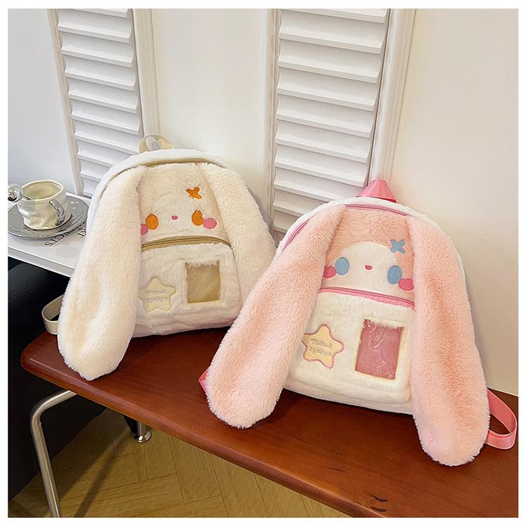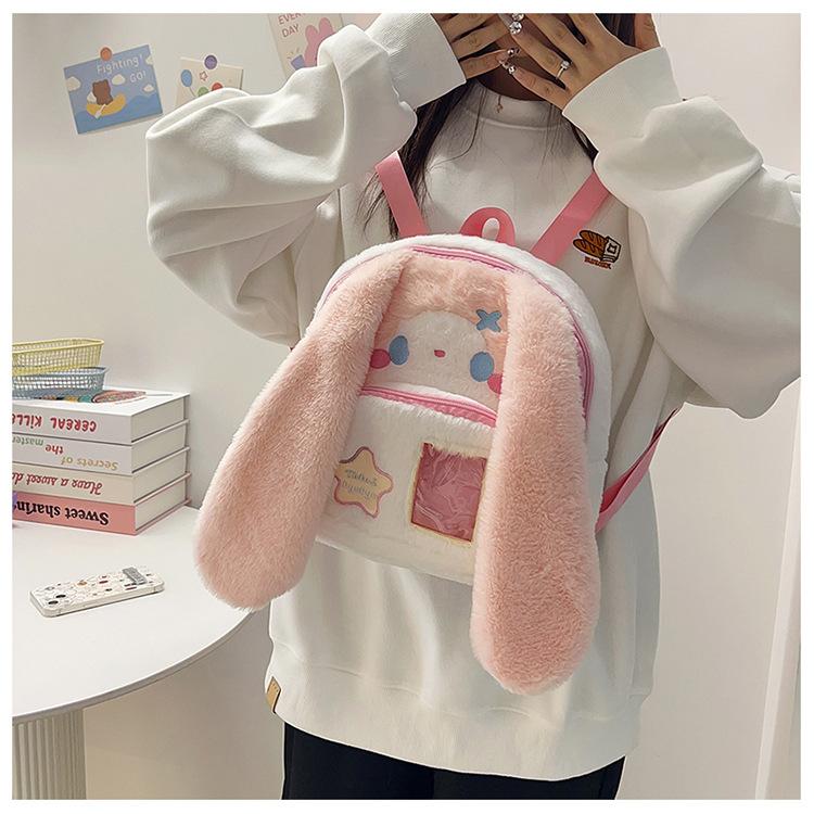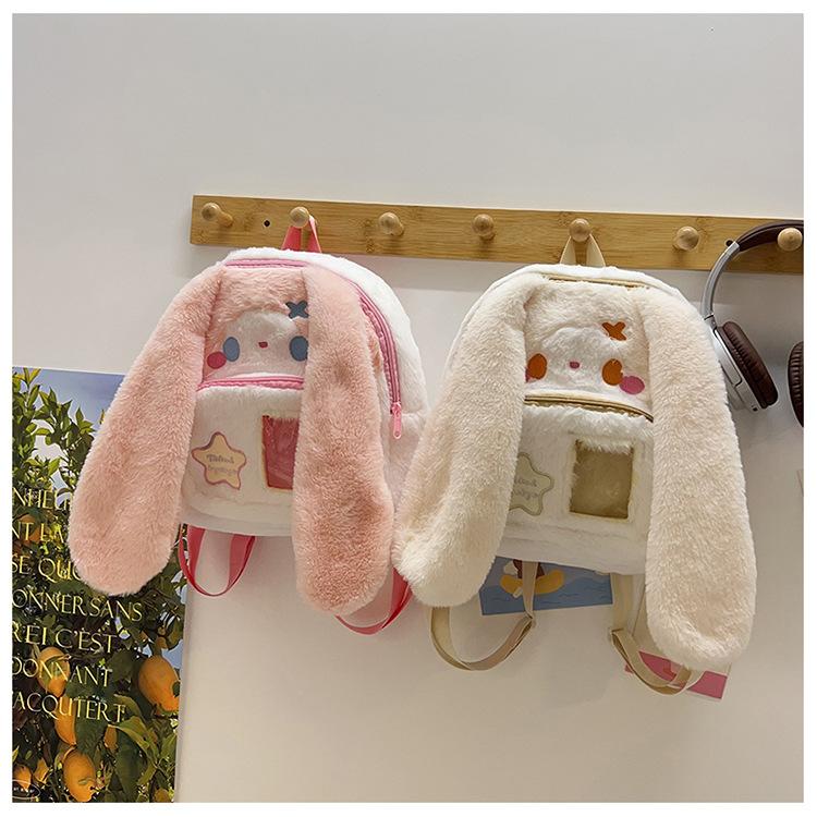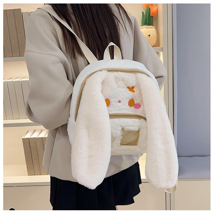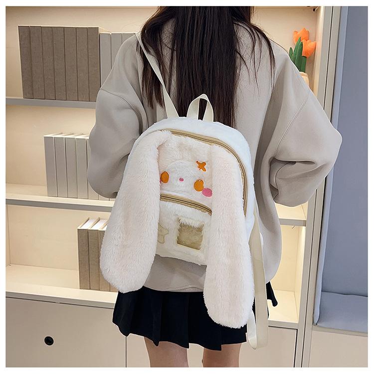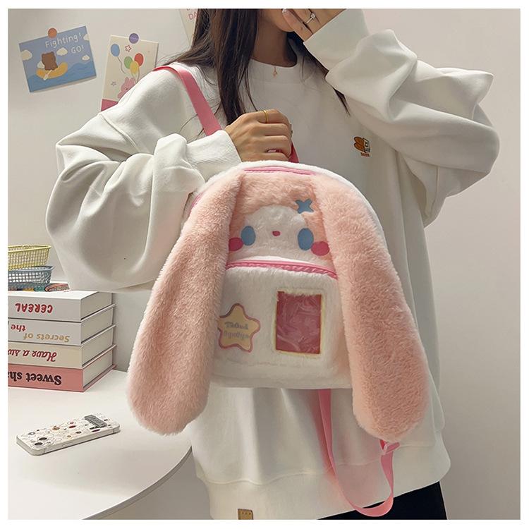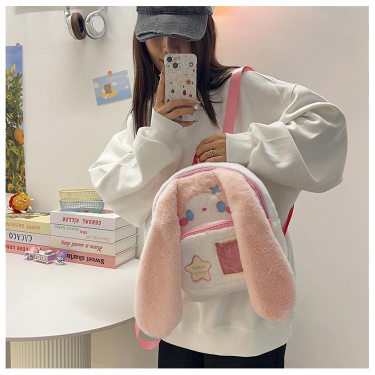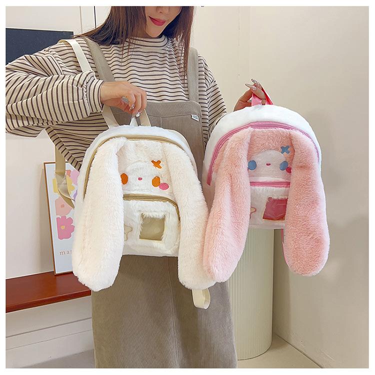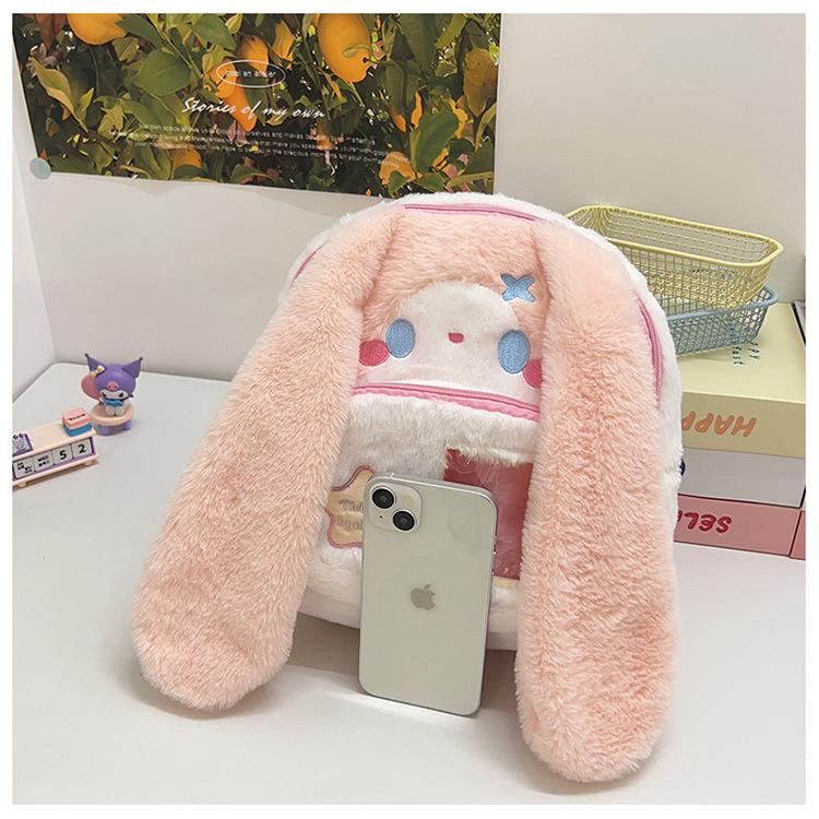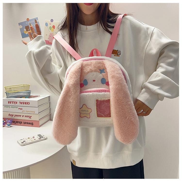 Mochila de Peluche de Conejo de Orejas Largas de Dibujos Animados 2024 de Gran Capacidad Linda Personalizada Corazón Femenino Regalo de Cumpleaños Mochila