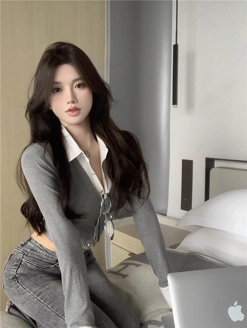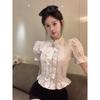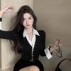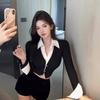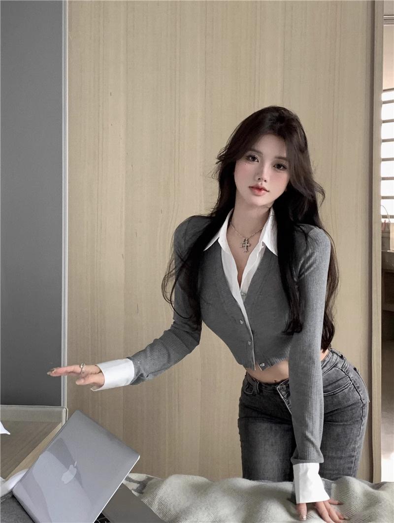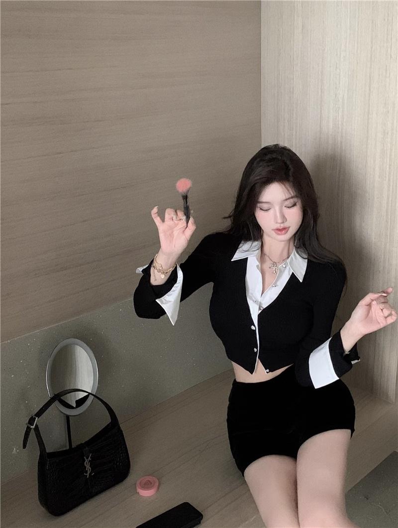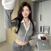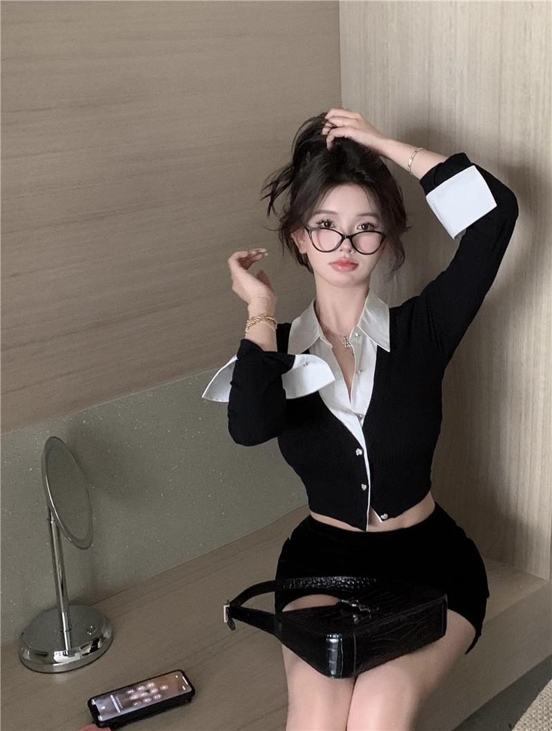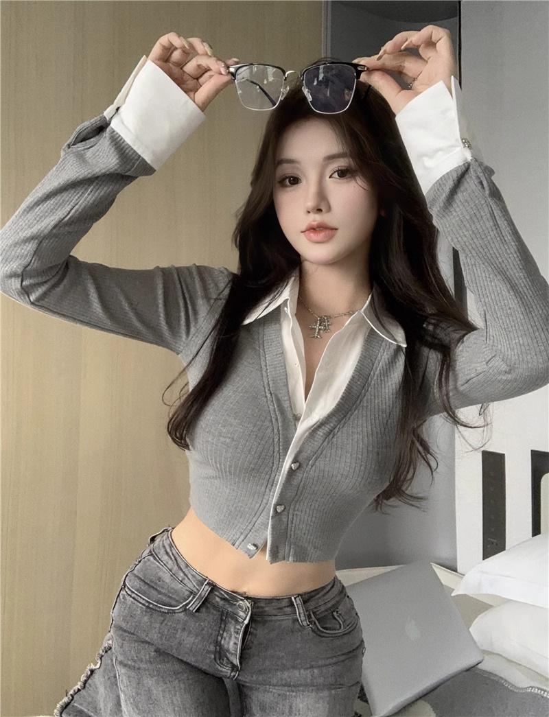 Camisa Falsa de Dos Piezas para Mujer Diseño Nicho Primavera y Otoño Dulce Puro Spice Girl Sexy Top Corto Camisa Chic Trendy