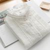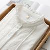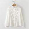 Camisa de manga larga de algodón de doble capa para mujer, estilo coreano, cuello holgado, encaje de hongo, color blanco suave, otoño 2024