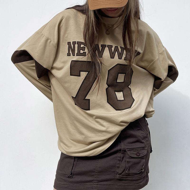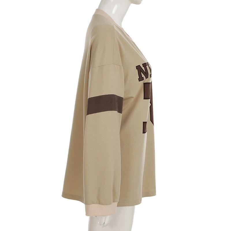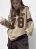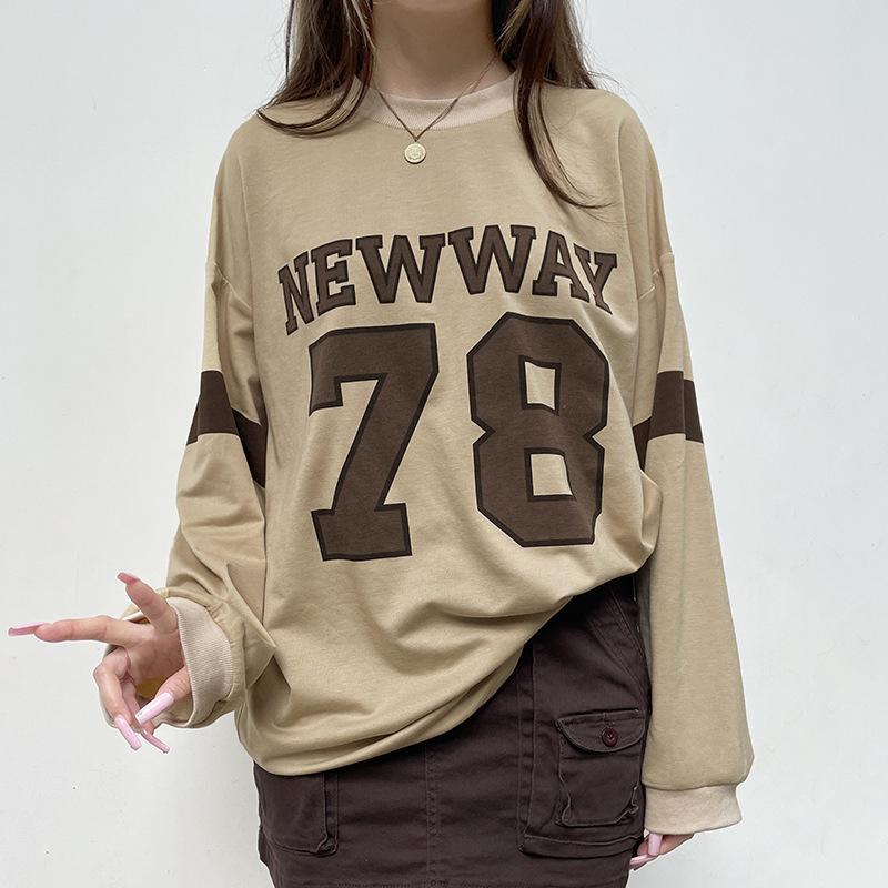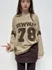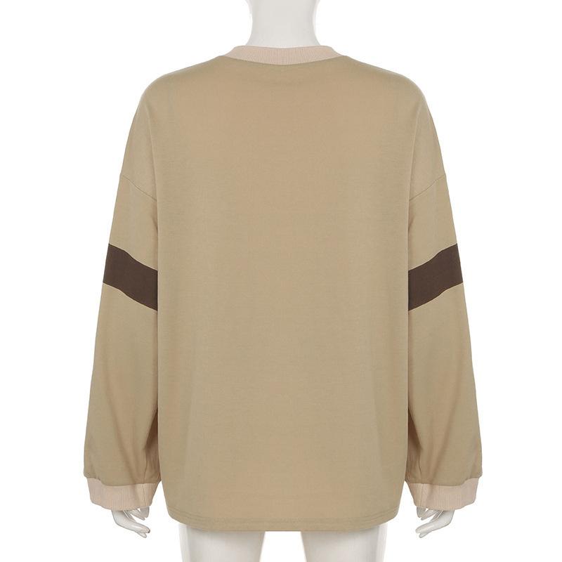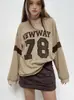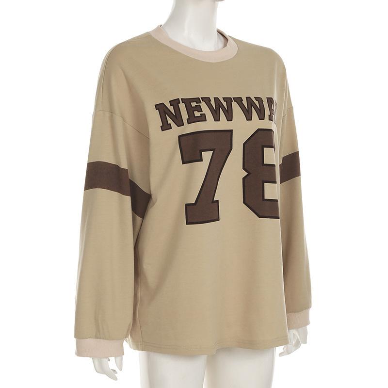 Ropa de Mujer Europea y Americana 2025 Americano Transfronterizo Personalidad Calle Vintage Estampado a Contraste Suelto Top Jersey Cuello Redondo Sweat