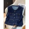 Chaleco de mezclilla para mujer con sentido de diseño europeo retro, nuevo de primavera y otoño, holgado, a la moda, estilo occidental, casual, corto, moderno