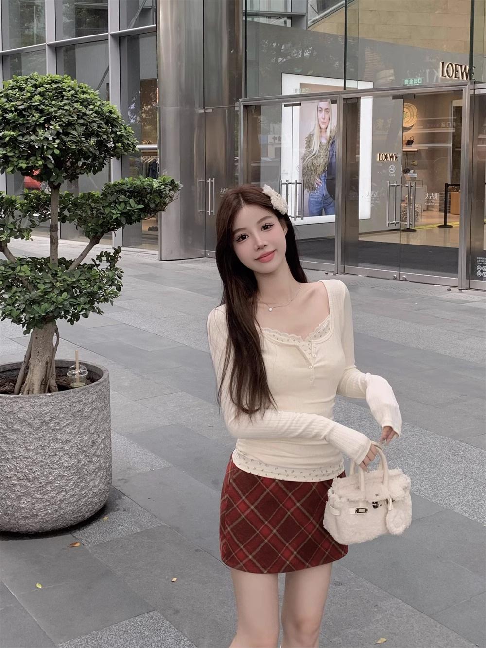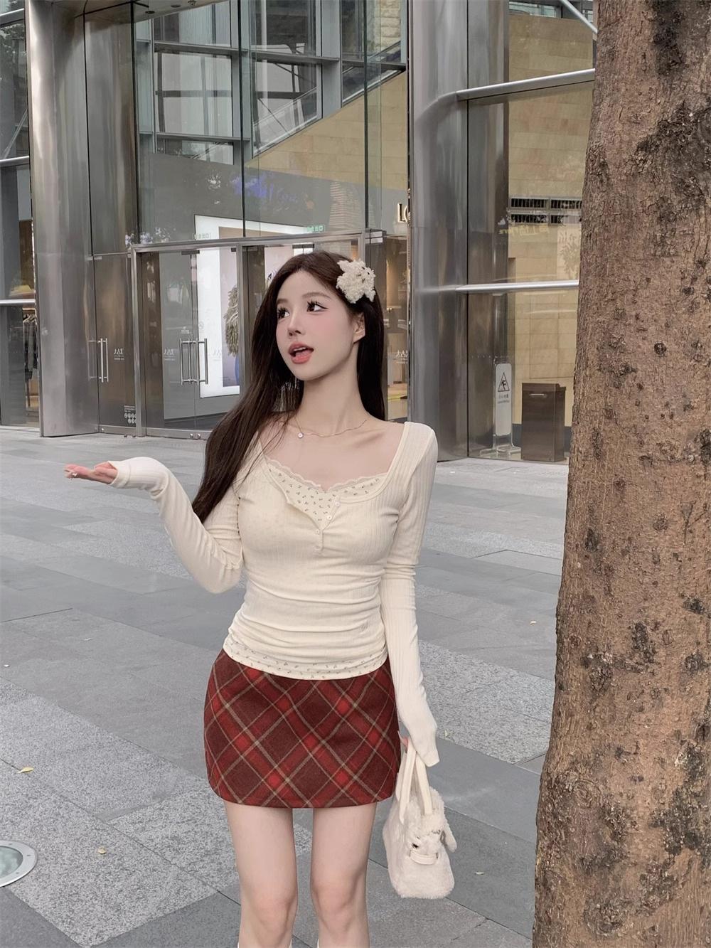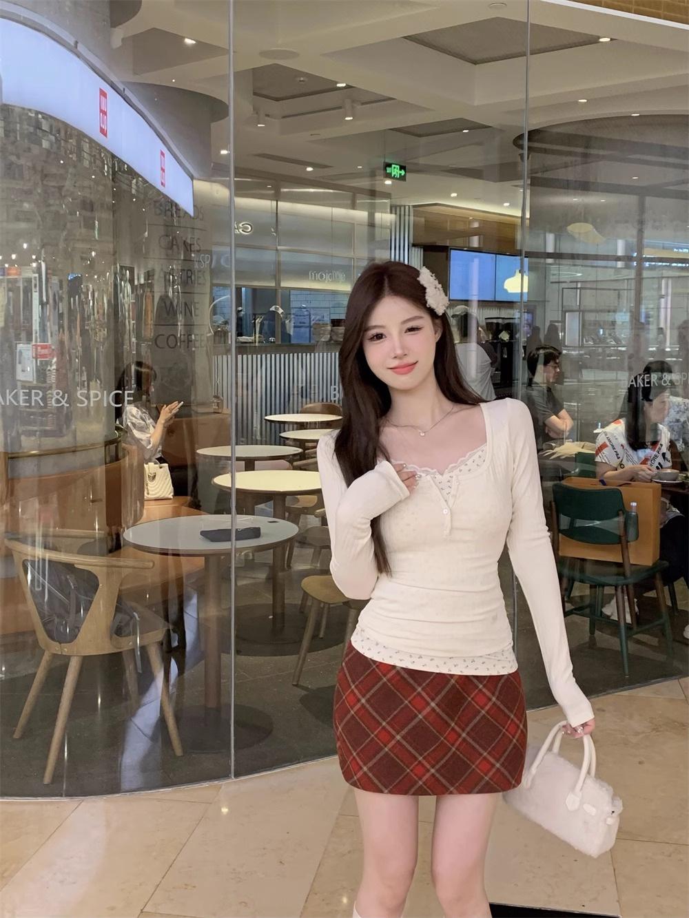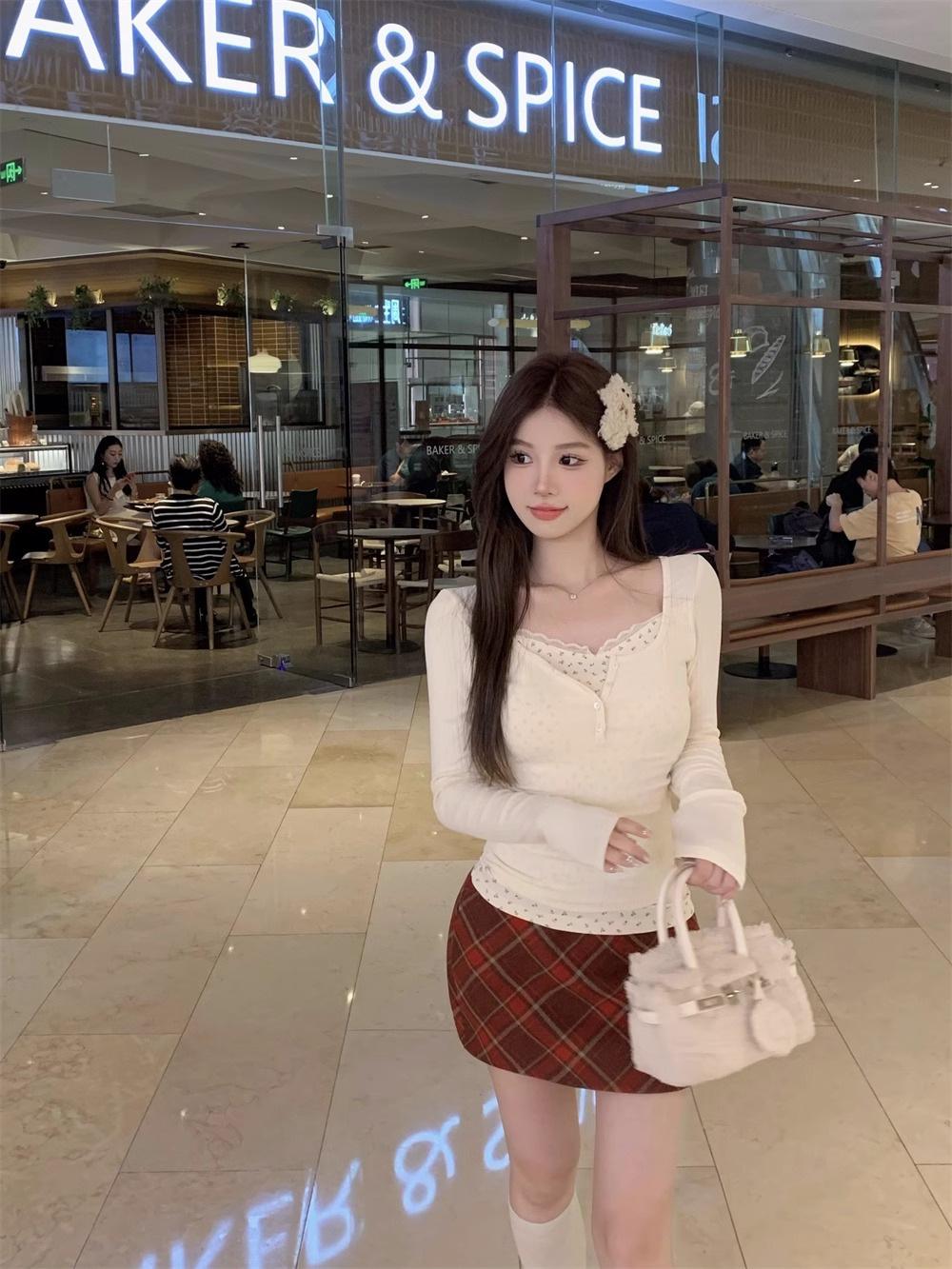 Camisa Base Floral de Encaje Dulce y Picante Estilo Francés Diseño Otoño e Invierno Estilo Puro Deseo Corte Ajustado Falso Top Base Interior de Dos Piezas