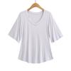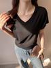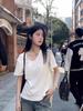Camiseta blanca de manga corta con escote en V y hombros descubiertos para mujer, verano 2025, nueva camiseta holgada de color liso, top Spice Girl