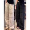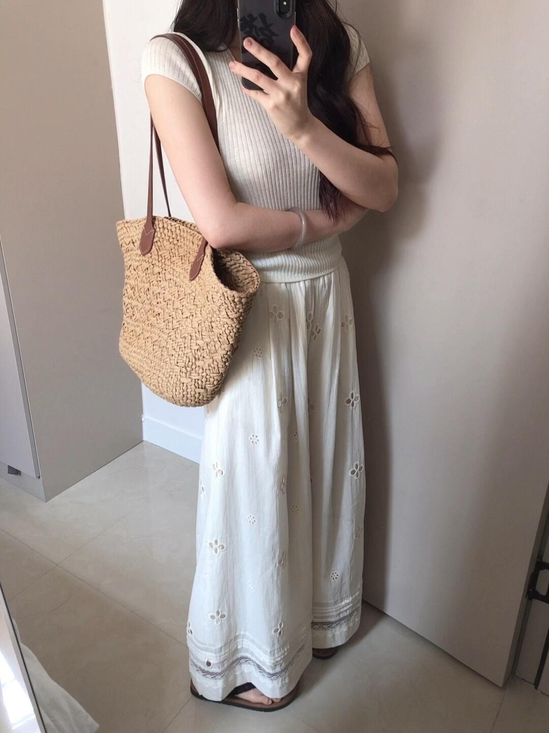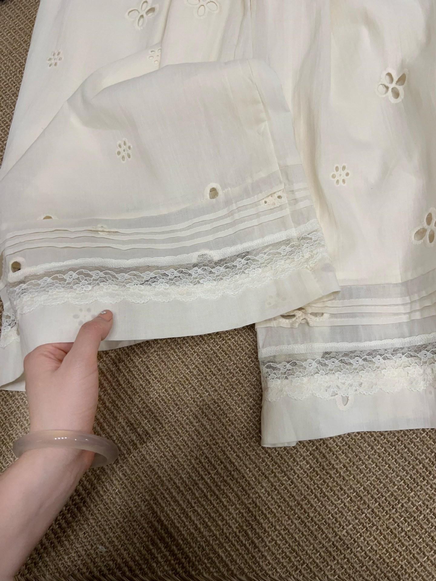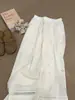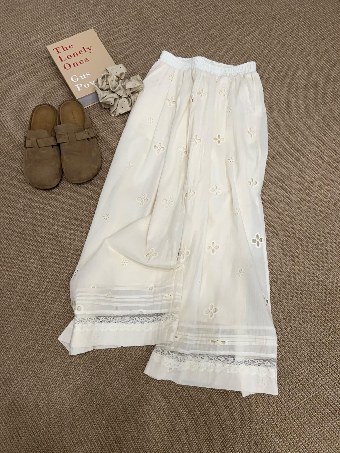 Pantalones casuales de pierna ancha con costuras de encaje calado de diseño veraniego, cintura alta, combinan con todo, holgados