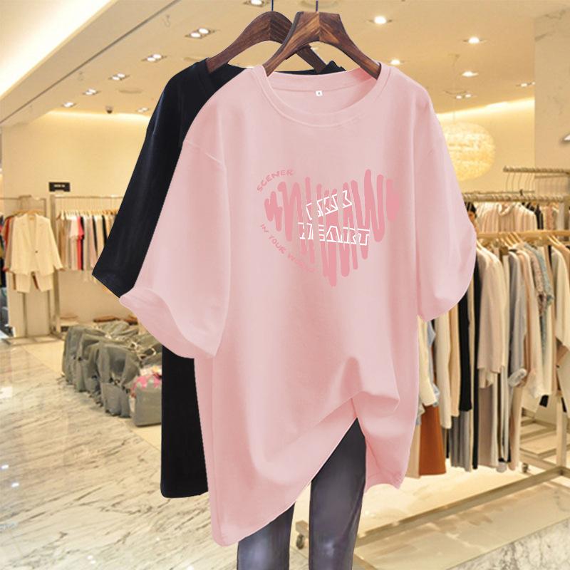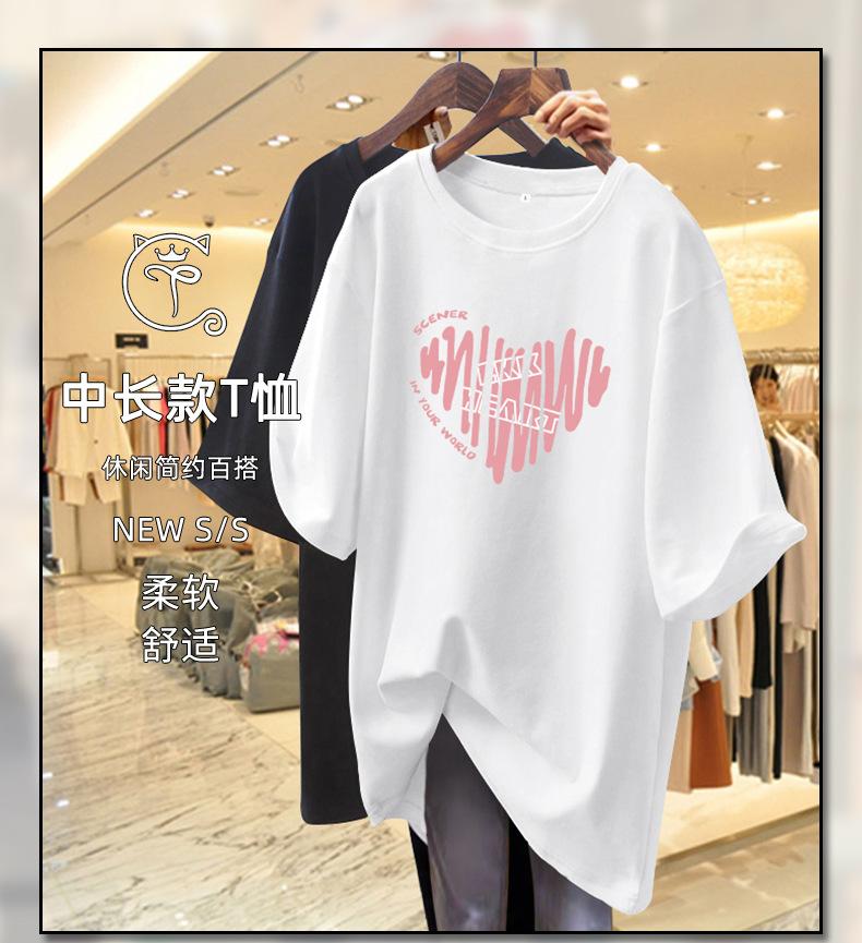 Playera de Manga Corta para Mujer Holgada Estilo Coreano Ins a la Moda Primavera y Verano Nuevo Largo Medio Manga Corta Ins Top de Moda para Mujer