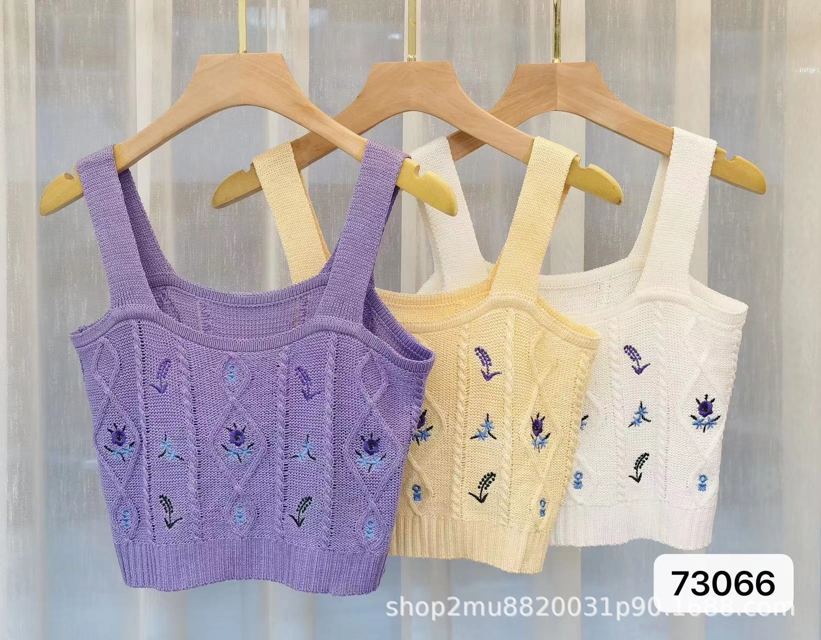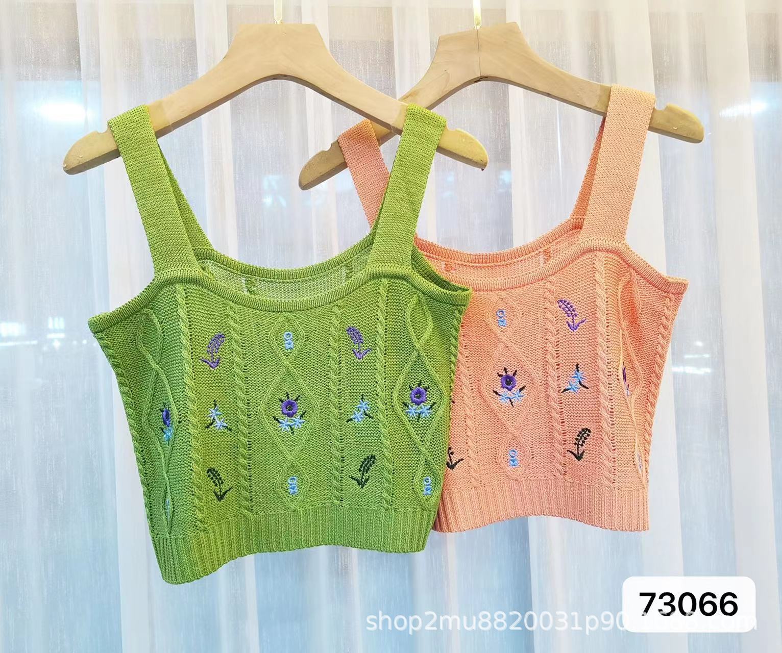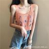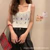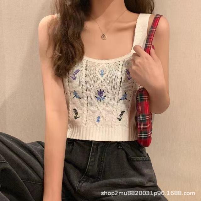 2023 Nuevo Estilo Coreano Celebridad de Internet Top Corto sin Mangas Ajustado Camisola de Punto Bordada para Mujer Verano Moderno Ropa Exterior