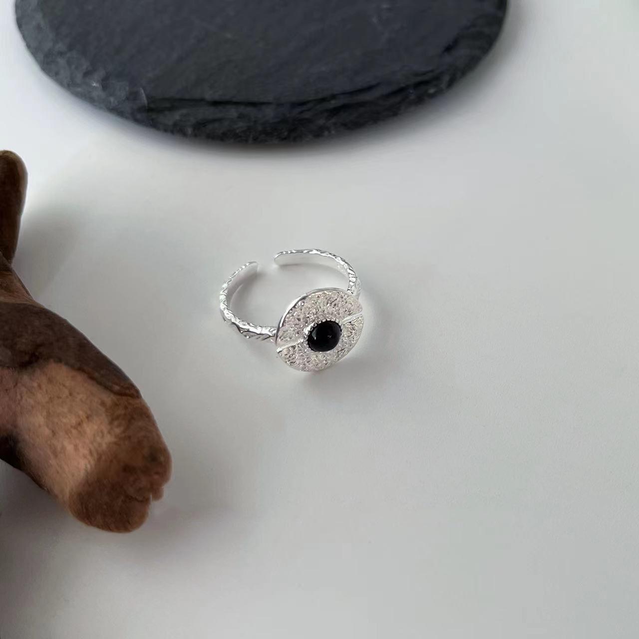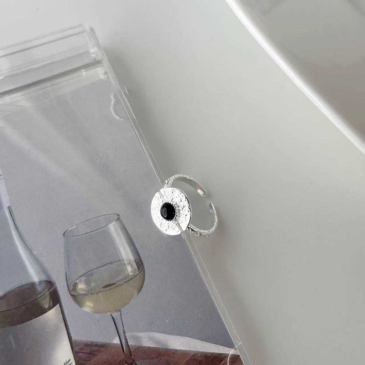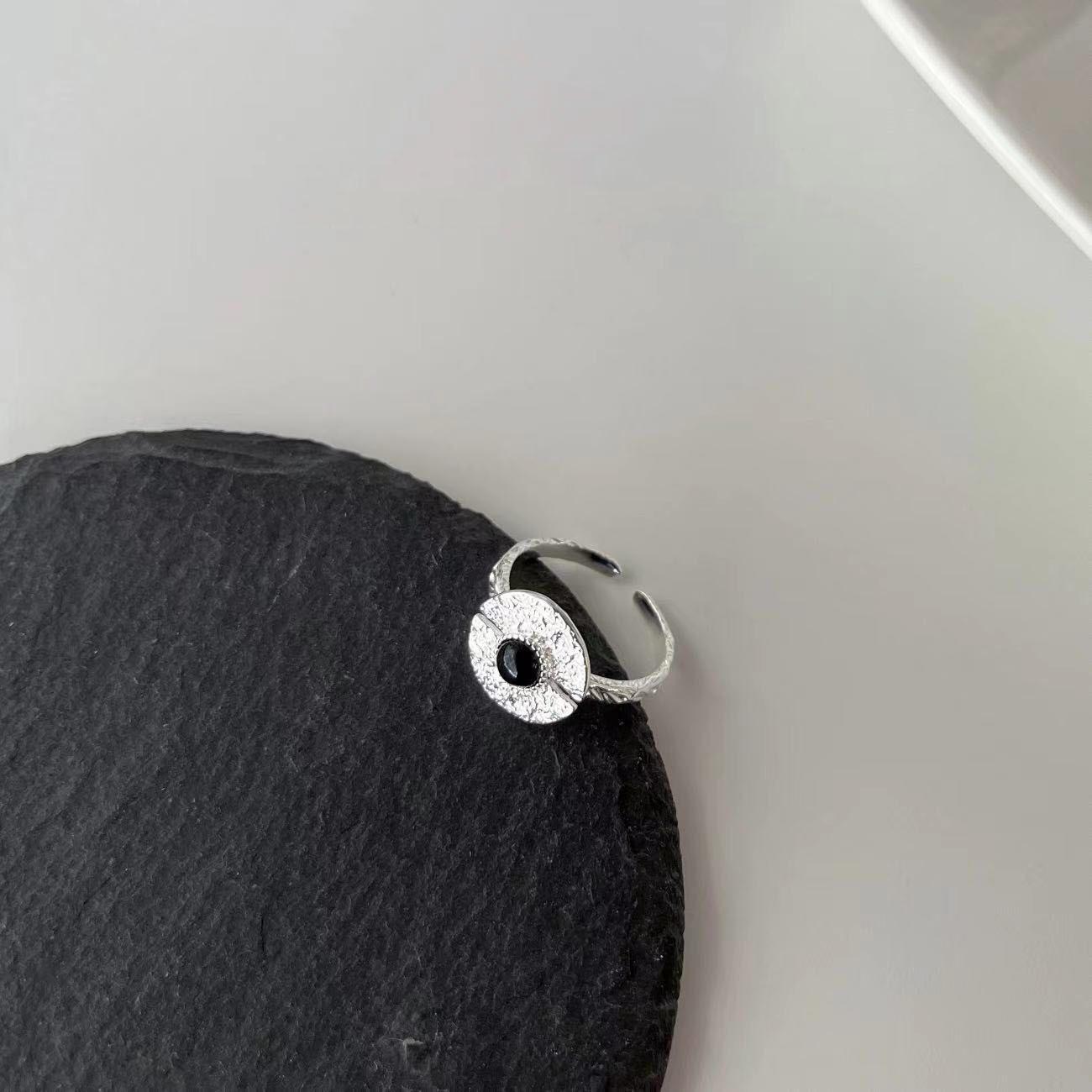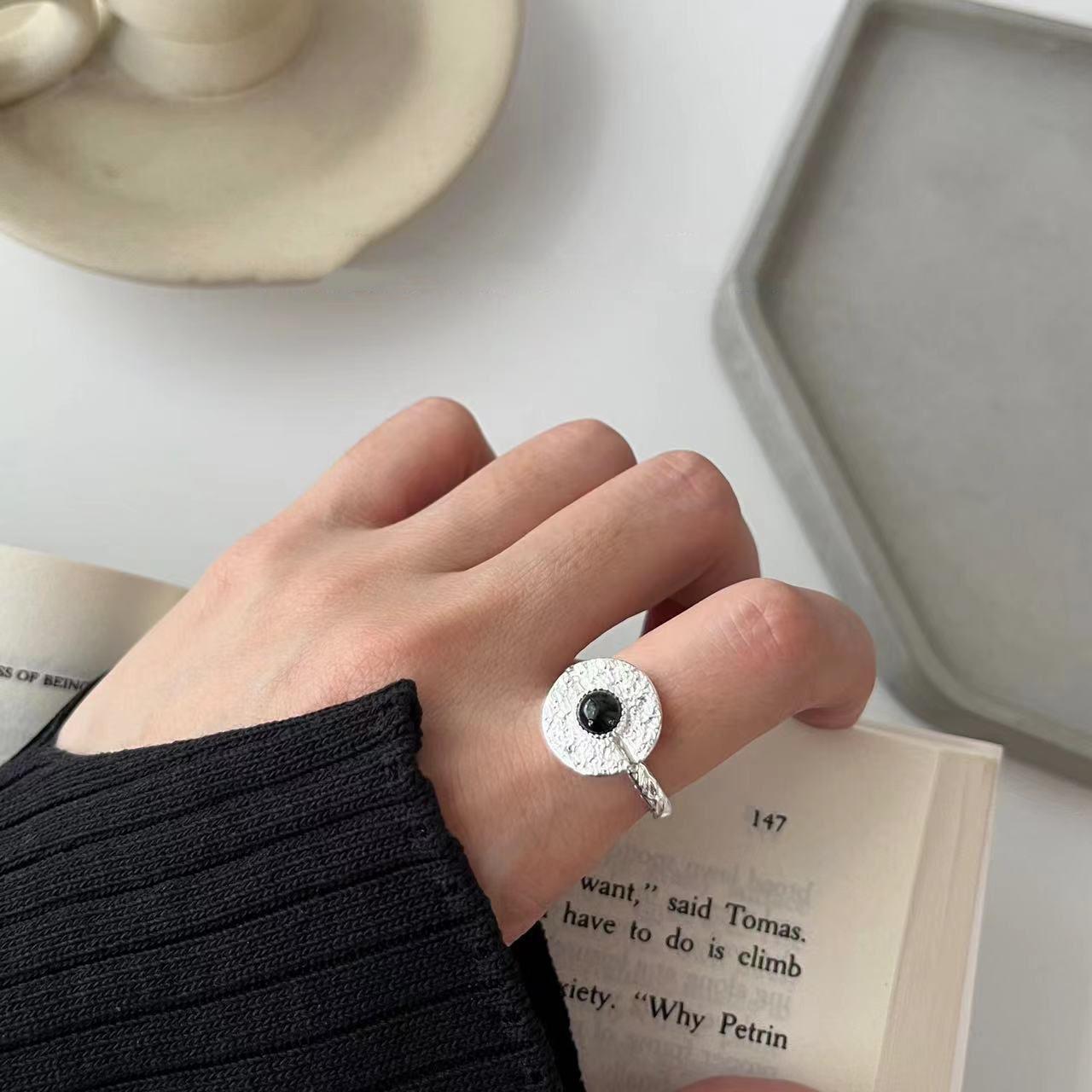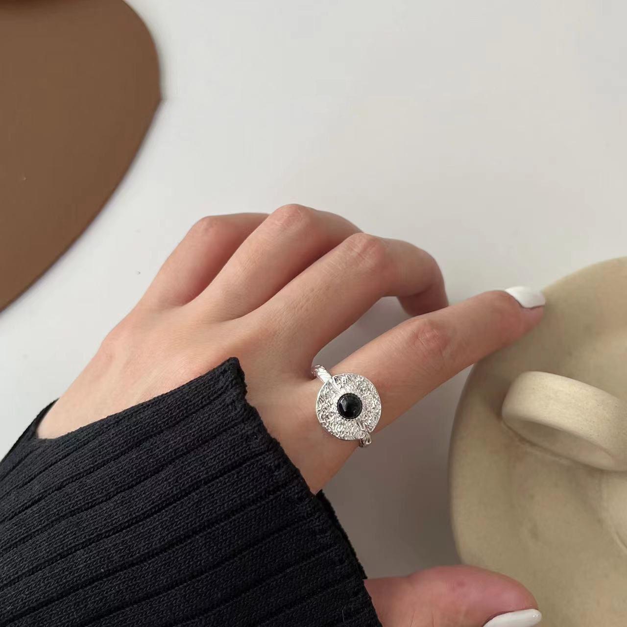 Anillo de Ágata Negra de Disco Simple para Mujer, Lujo Ligero Nicho Estilo Ins, Anillo Distintivo, Anillo de Dedo Retro de Alta Gama, Moderno