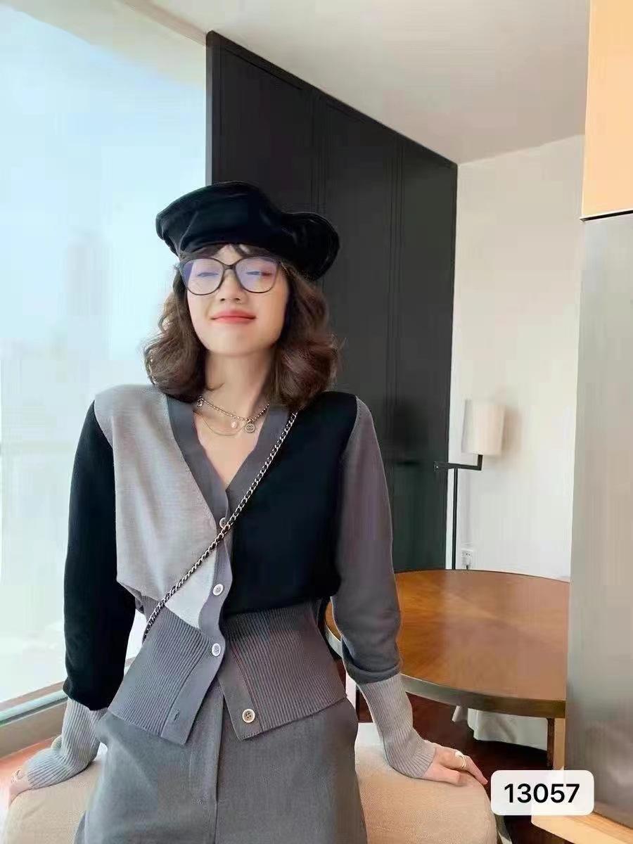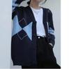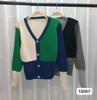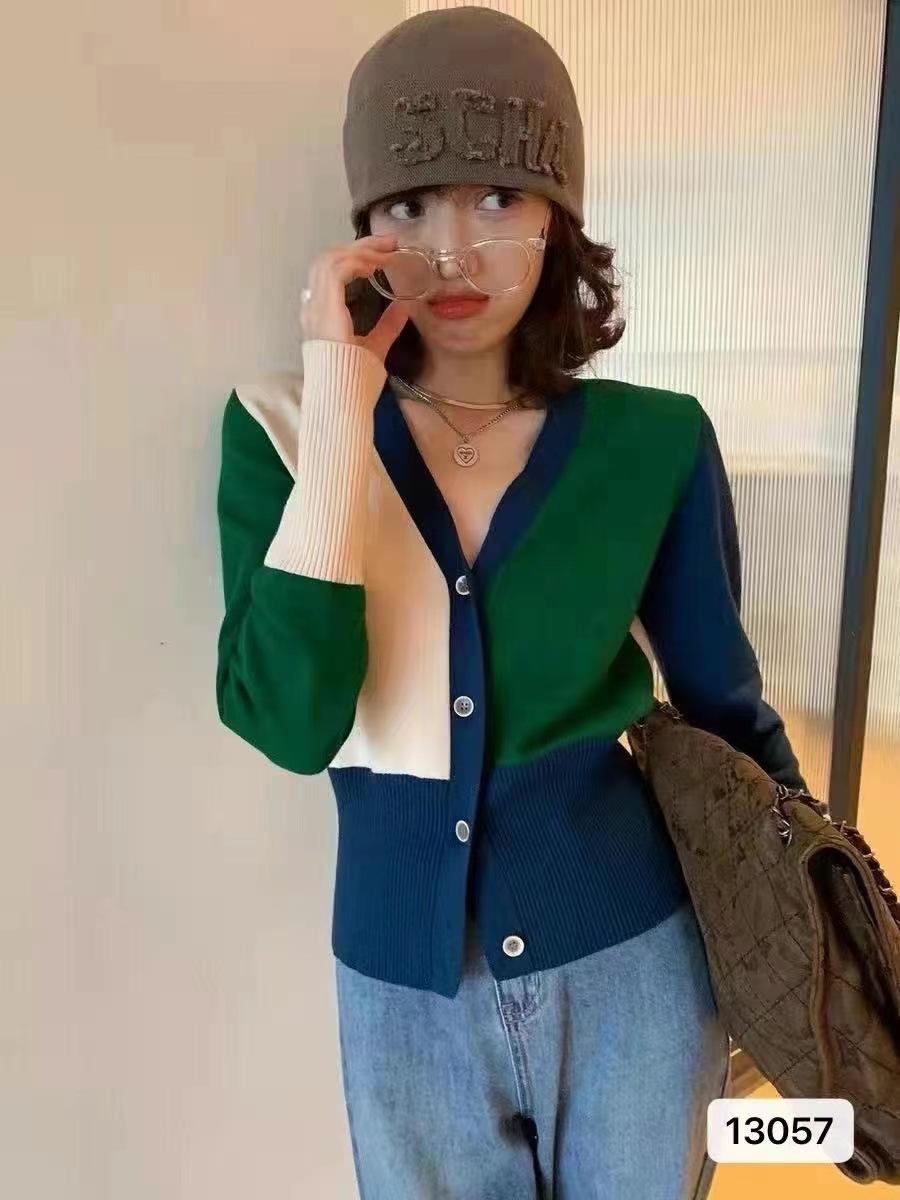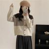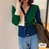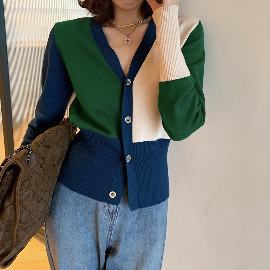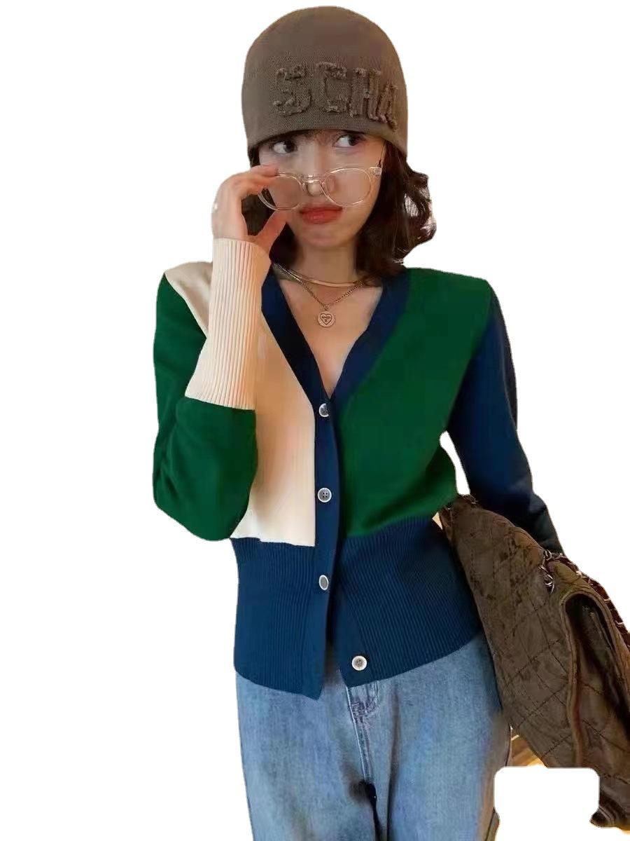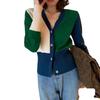 Suéter de estilo coreano con contraste de colores para mujer, estilo retro, suave y relajado, cárdigan de punto con cuello en V a juego para primavera y otoño.