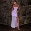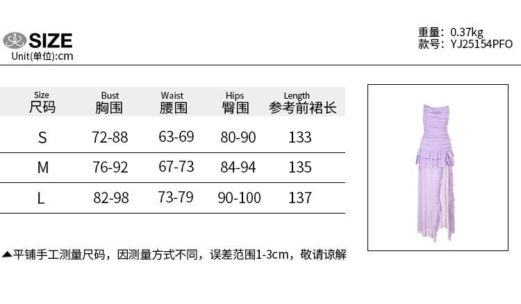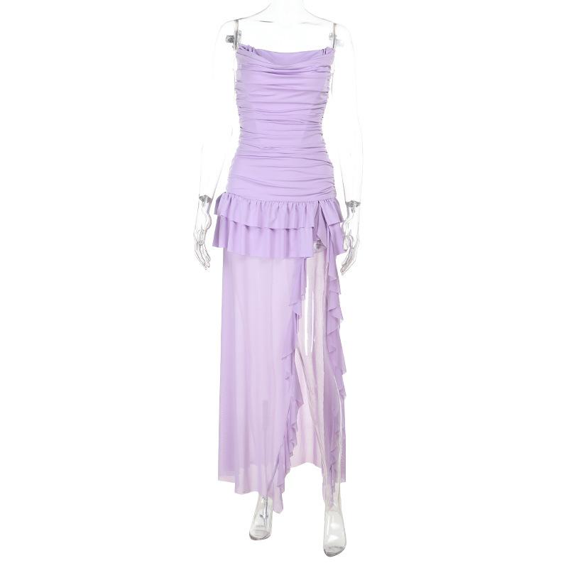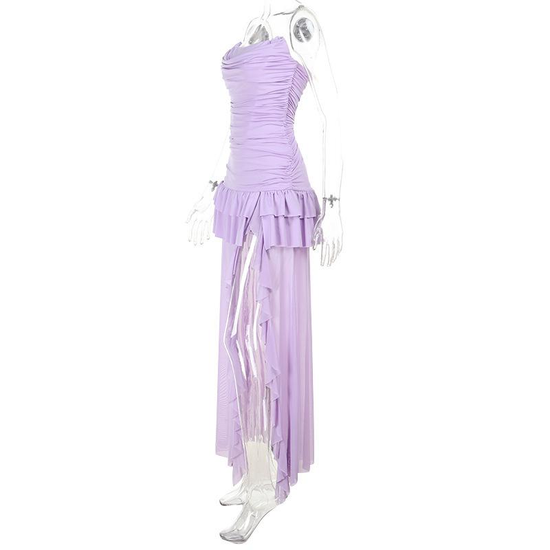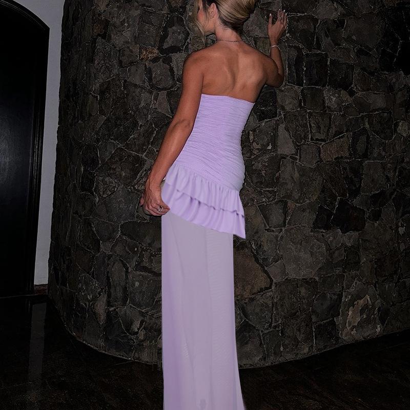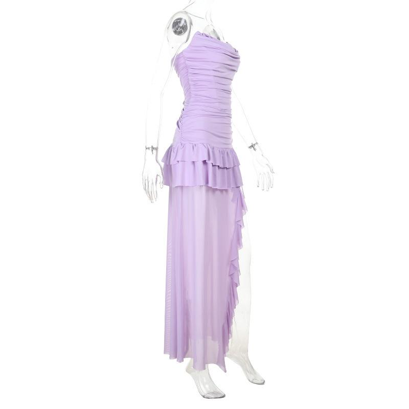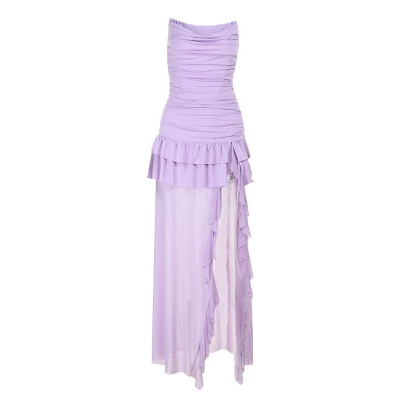 Amazon 2025 Nuevo Vestido sin Tirantes Europeo y Americano Sexy con Cuello Fruncido Dobladillos de Malla con Abertura