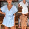 Traje de Moda Europea y Americana Transfronterizo 2024 Comercio Color Sólido Casual Manga Corta Ajustado con Cordones Pantalones