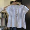 Camisa Rayada Diseño Nicho para Mujer Primavera y Otoño 2024 Estilo Coreano Retro Versátil Top de Manga Larga Camisa de Gasa Holgada