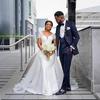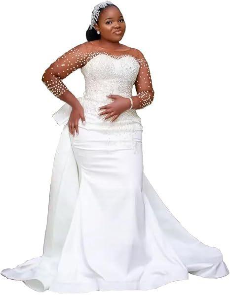 Vestido de novia de un solo escote, vestido de novia de satén sin tirantes, manga de siete puntas, vestido de perla, corte sirena con cola, ajustado