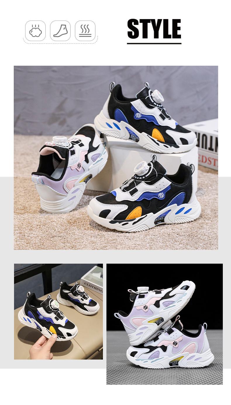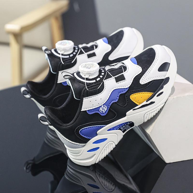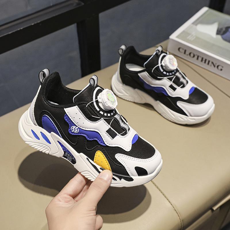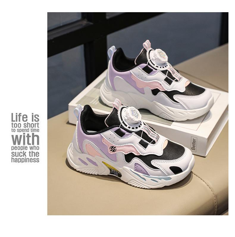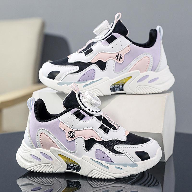 Zapatillas de deporte para niños, primavera 2025, nuevas, para niños grandes, con botones giratorios y suela blanda.