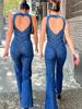 Europeo y Americano Verano Aliexpress Ropa de Mujer Espalda Descubierta Slim Moda Sin Mangas Mono de Mezclilla Micro Acampanado Venta al Por Mayor Moda Transfronteriza
