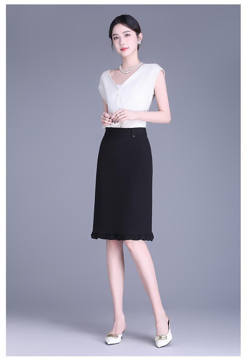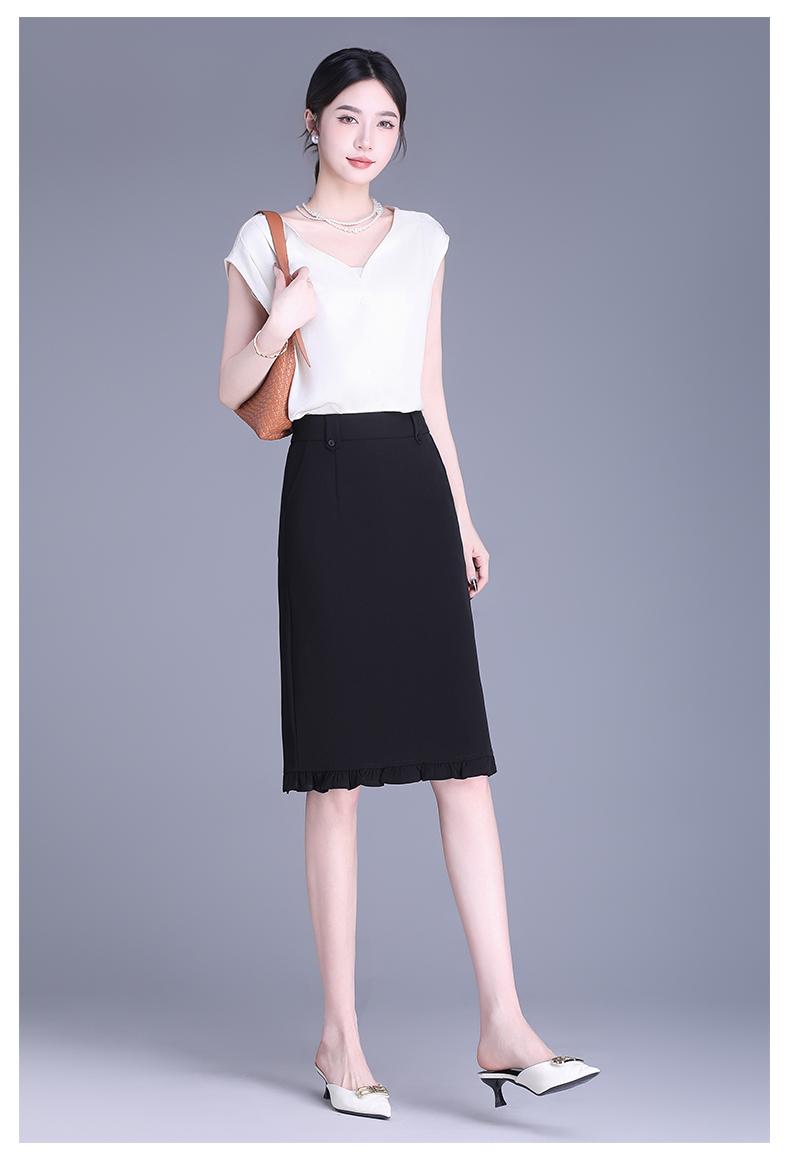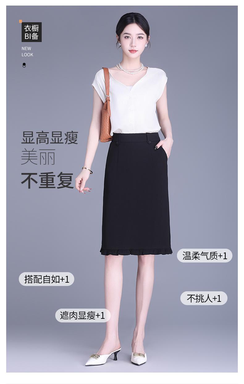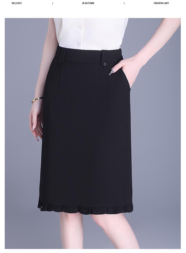 Falda para Mujer de Largo Medio Falda de Cadera Pequeña Cintura Alta Adelgazante Negro Oreja 2025 Primavera y Verano Nuevo