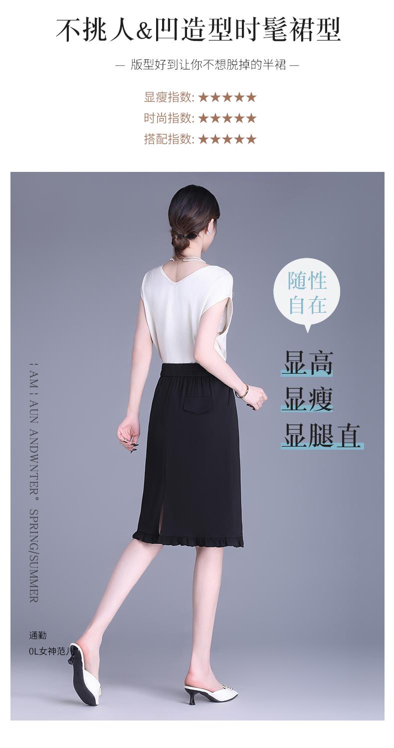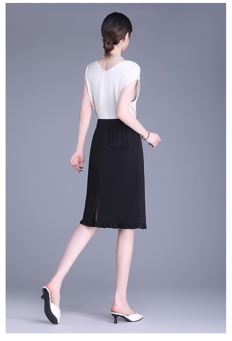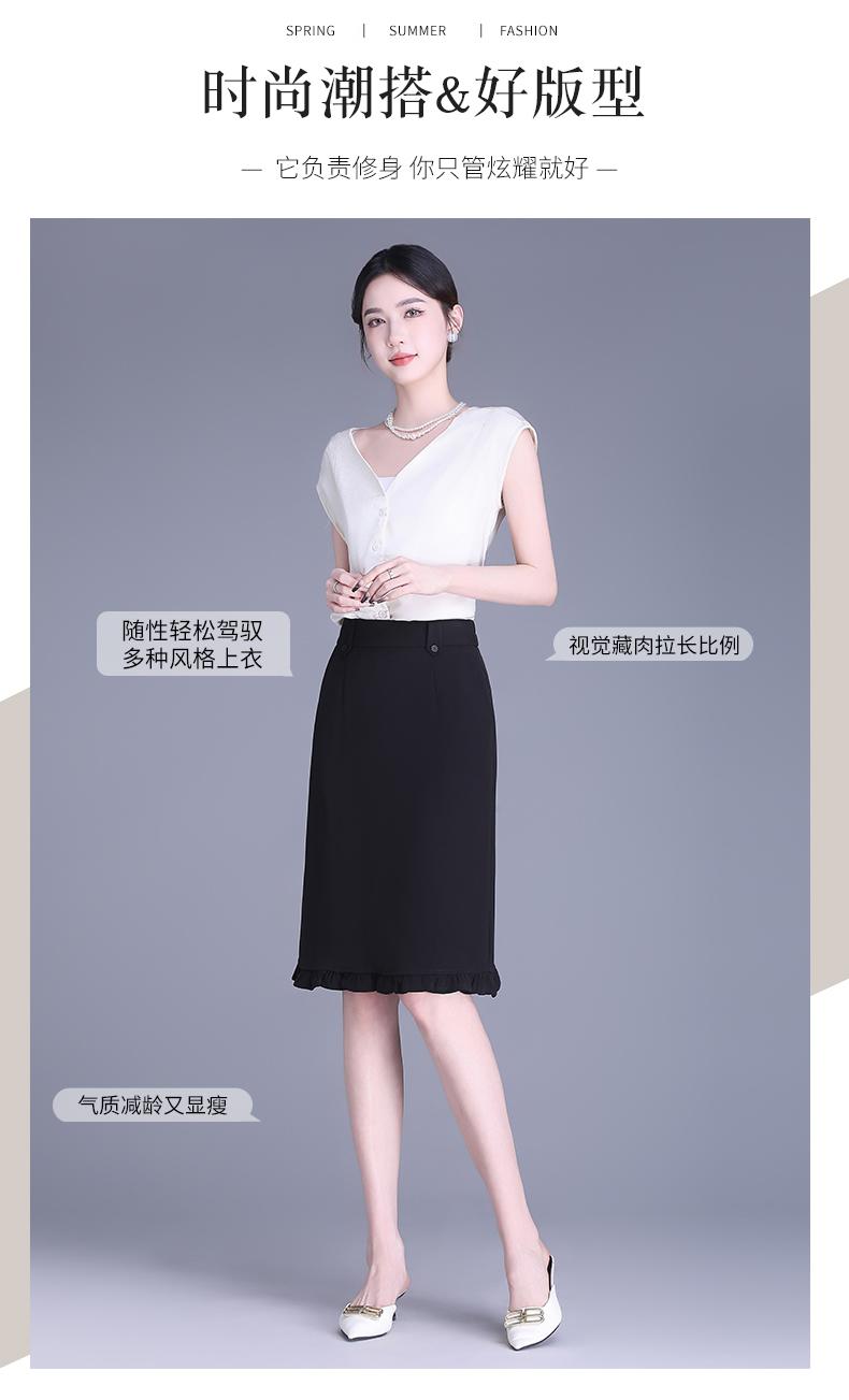 Falda para Mujer de Largo Medio Falda de Cadera Pequeña Cintura Alta Adelgazante Negro Oreja 2025 Primavera y Verano Nuevo