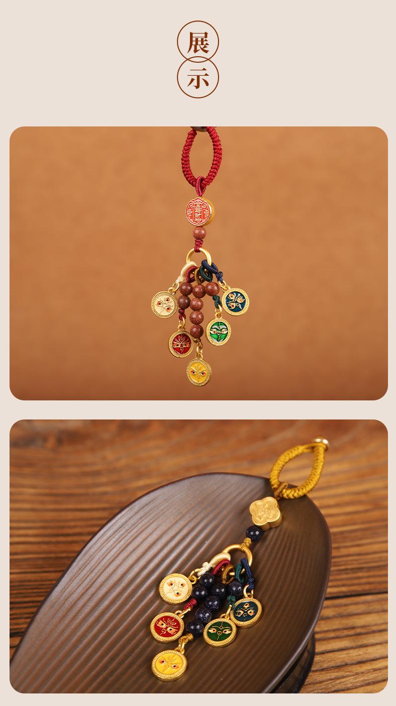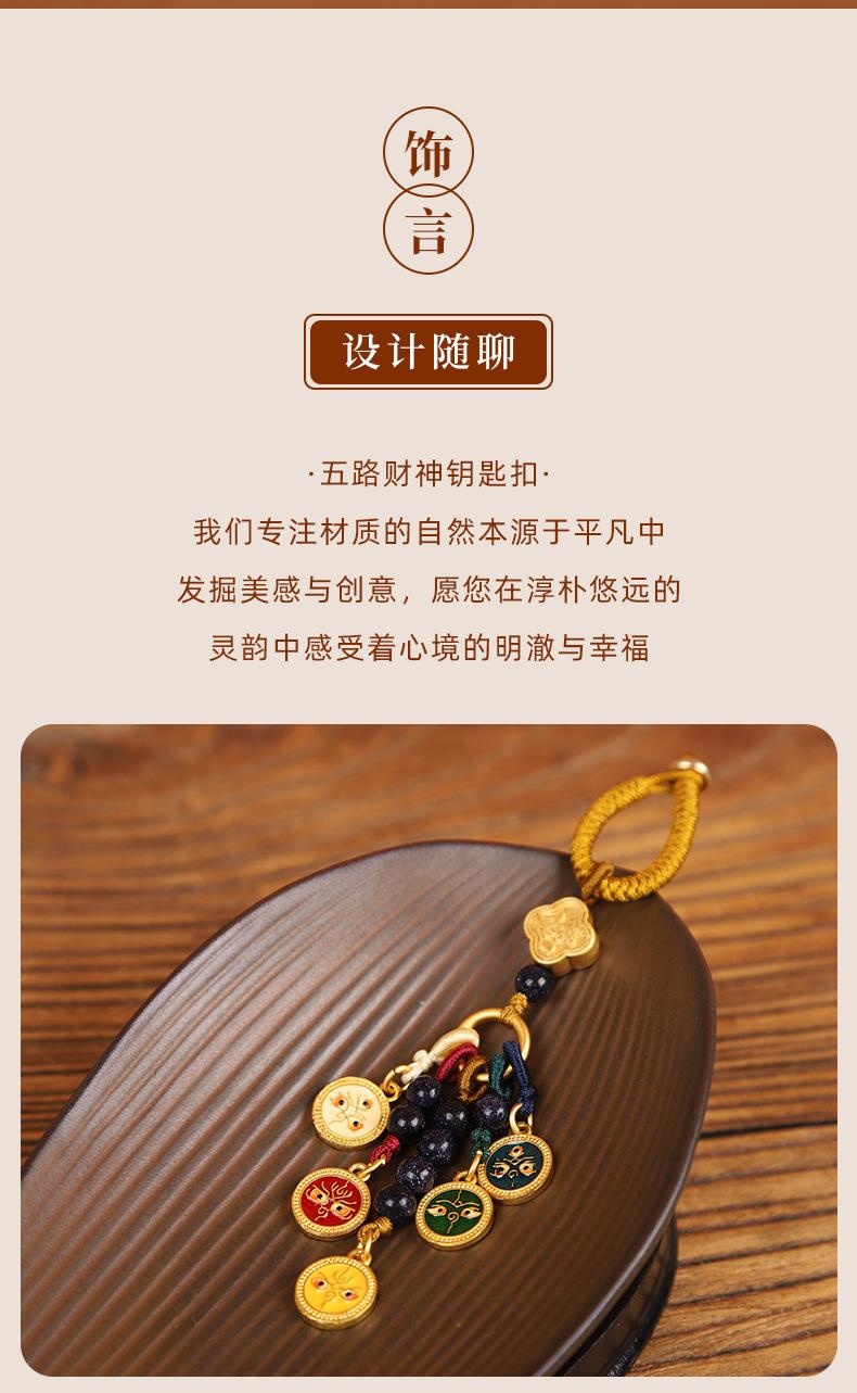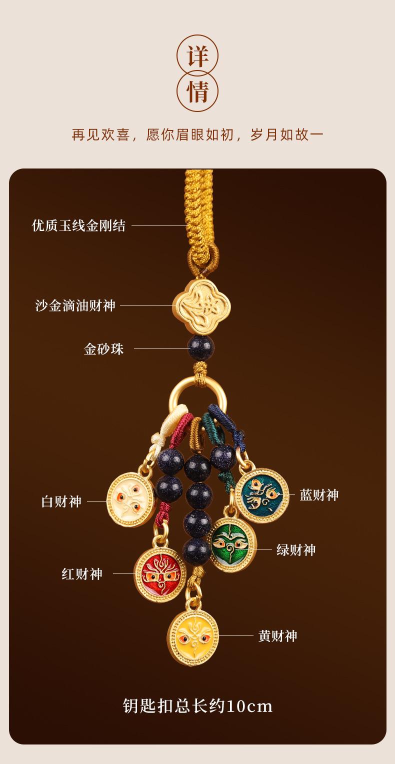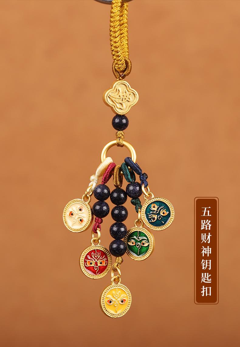 Llavero colgante estilo Thangka de cinco vías del dios de la riqueza de estilo nacional de la marea, colgante para teléfono móvil, bolso, para hombres y mujeres.