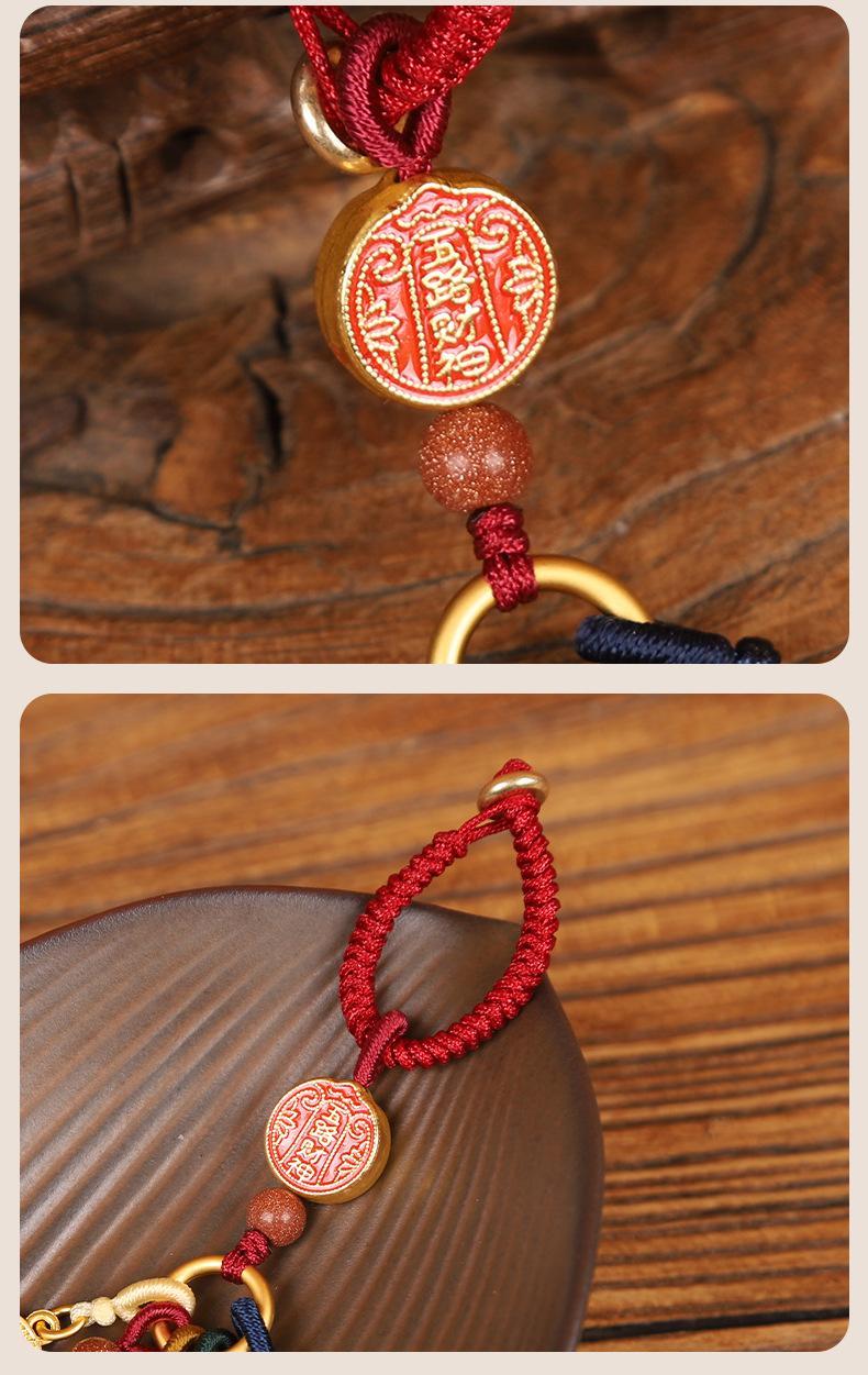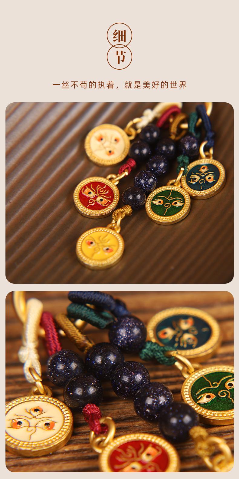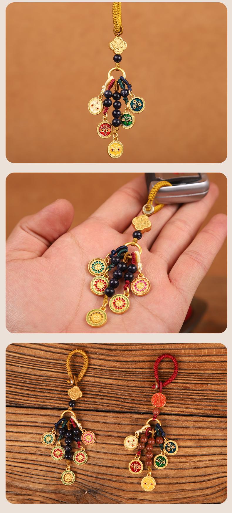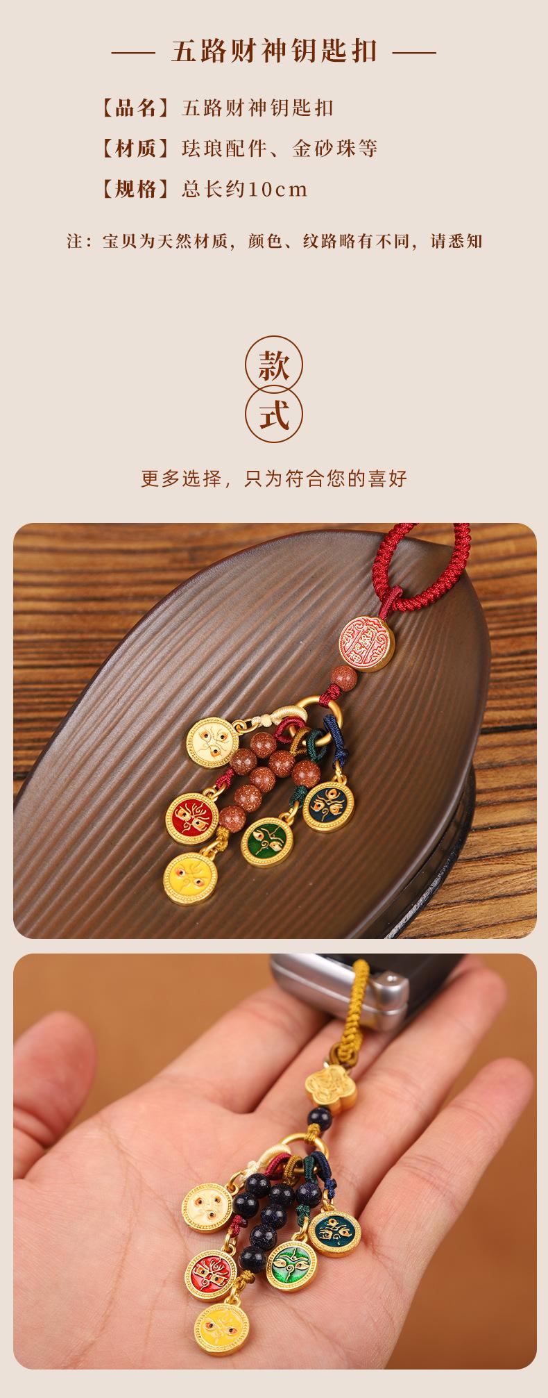Llavero colgante estilo Thangka de cinco vías del dios de la riqueza de estilo nacional de la marea, colgante para teléfono móvil, bolso, para hombres y mujeres.