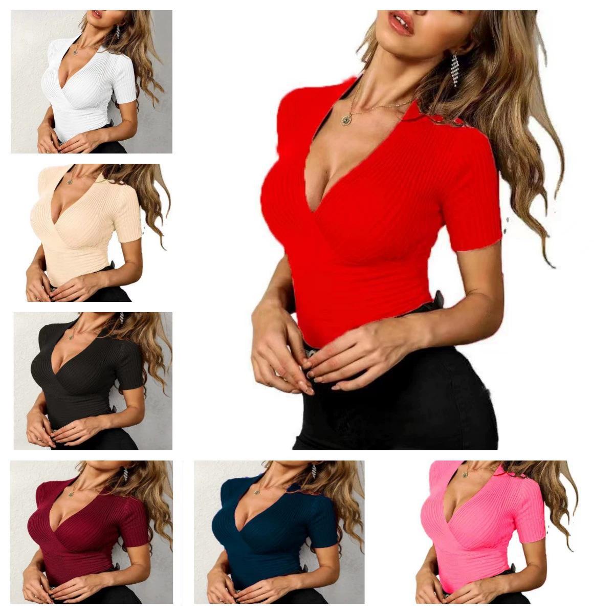 Suéter de punto de temperamento de estilo intelectual nuevo de comercio exterior transfronterizo Amazon Europa y Estados Unidos cuello en V ajustado manga larga camiseta mujer