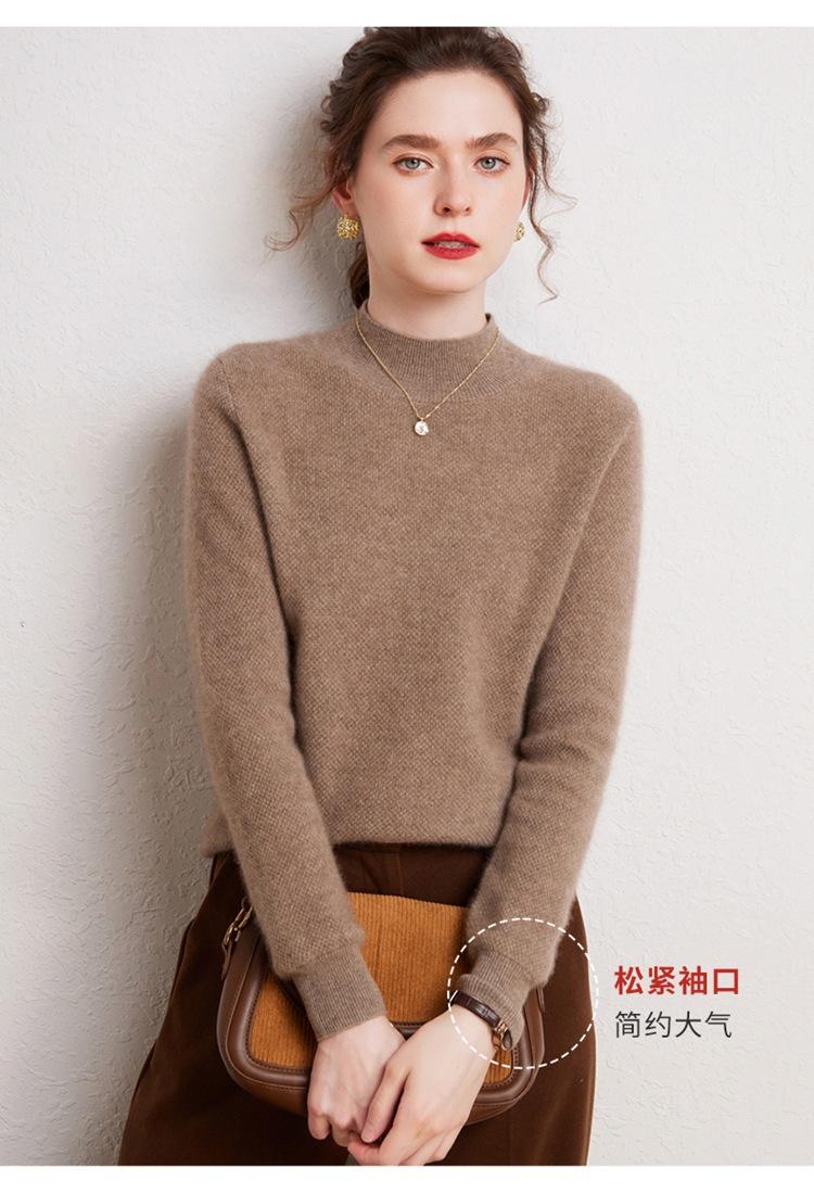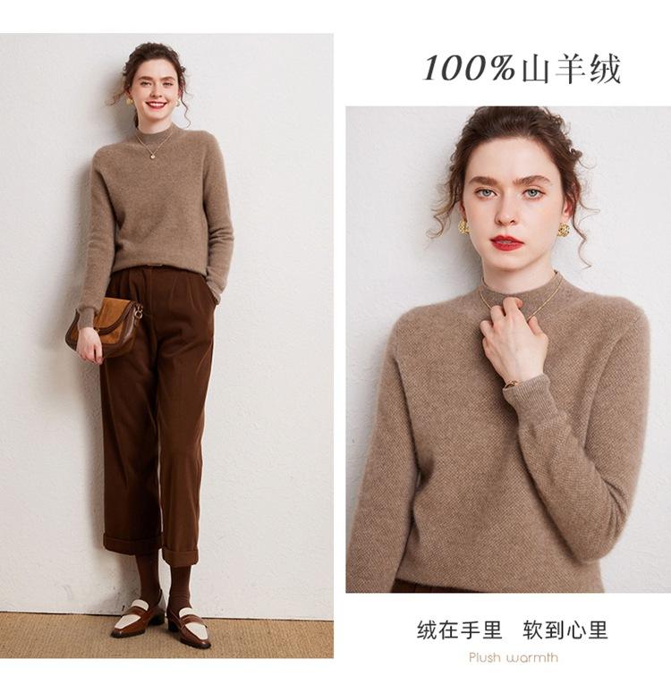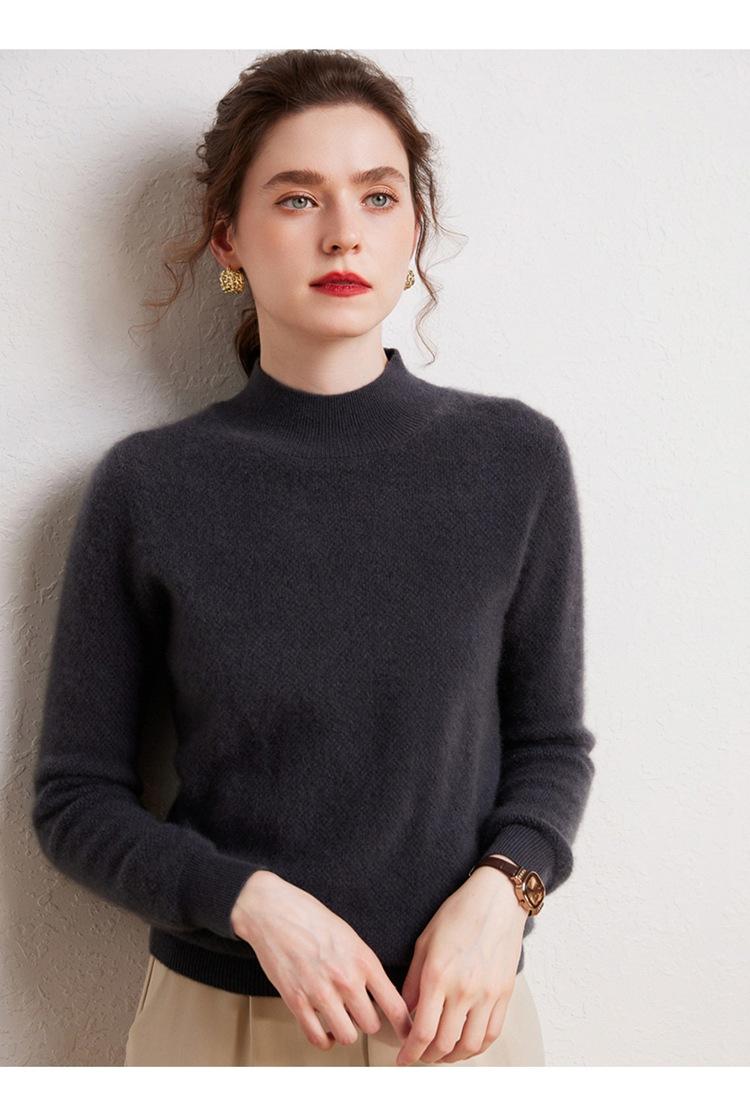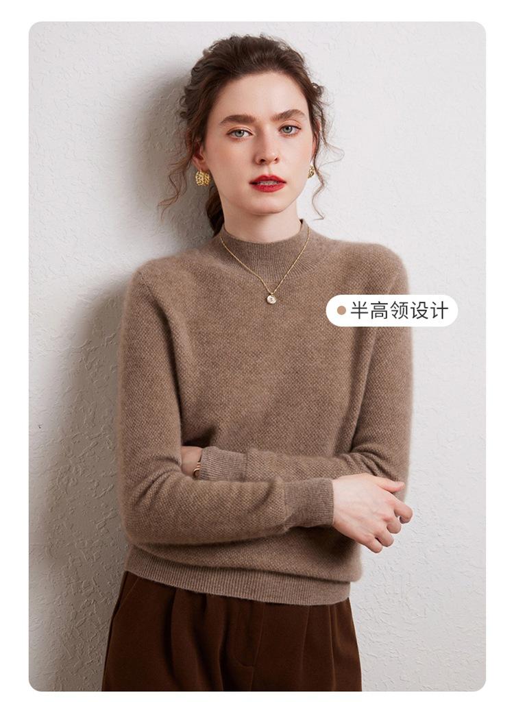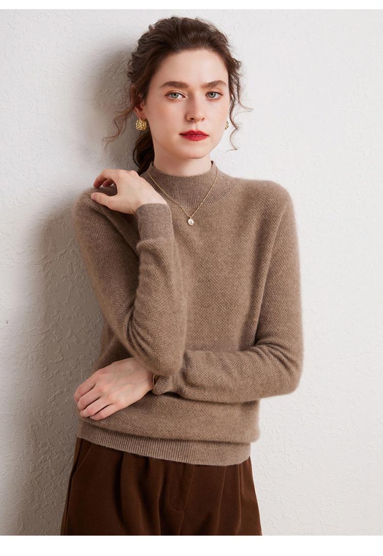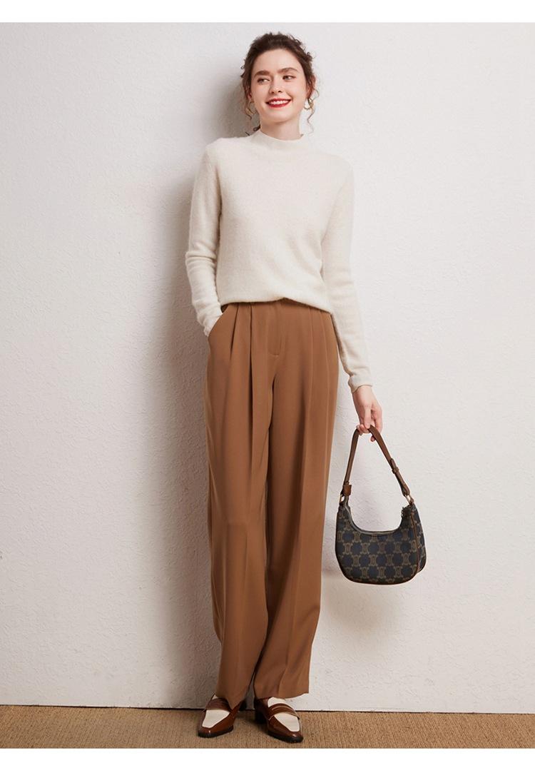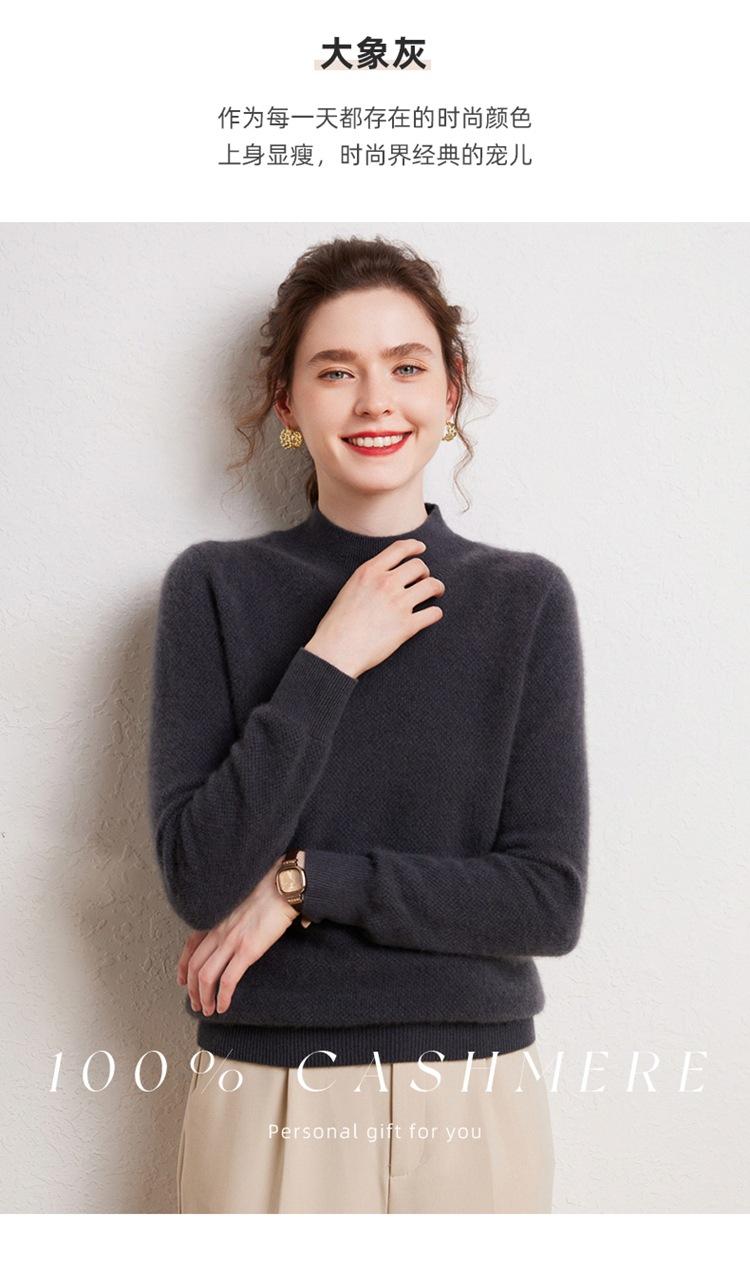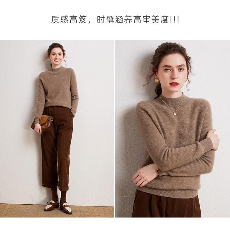 Suéter de cachemira completa para mujer, moderno de cuello alto medio, sencillo de color sólido, de punto osmanthus, holgado, adelgazante para ir al trabajo