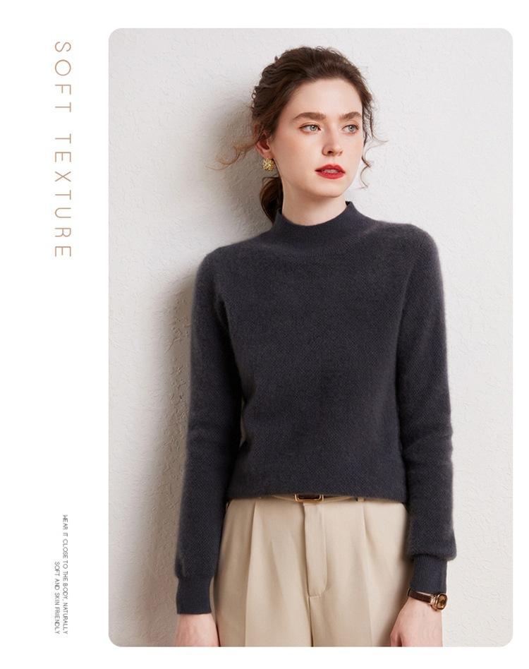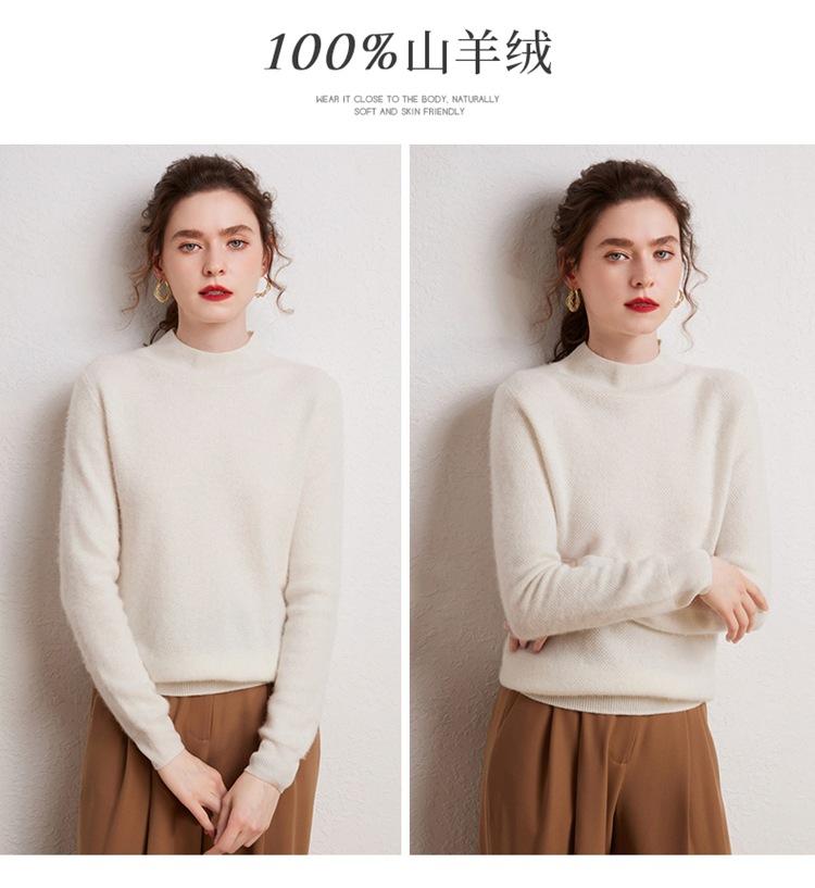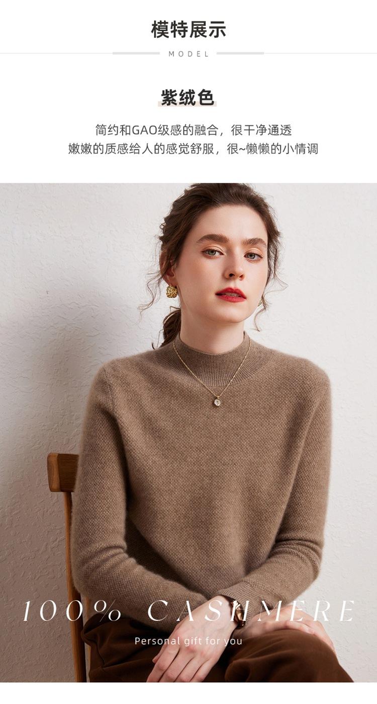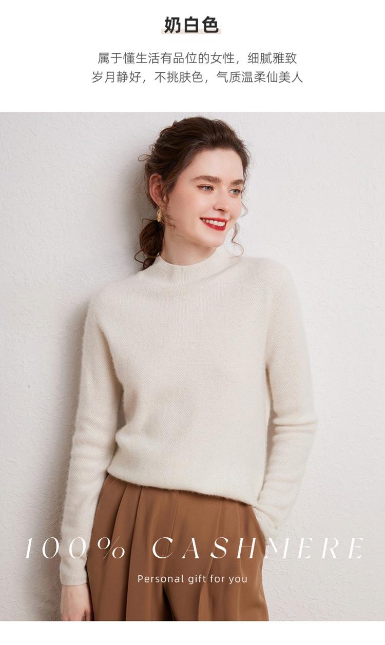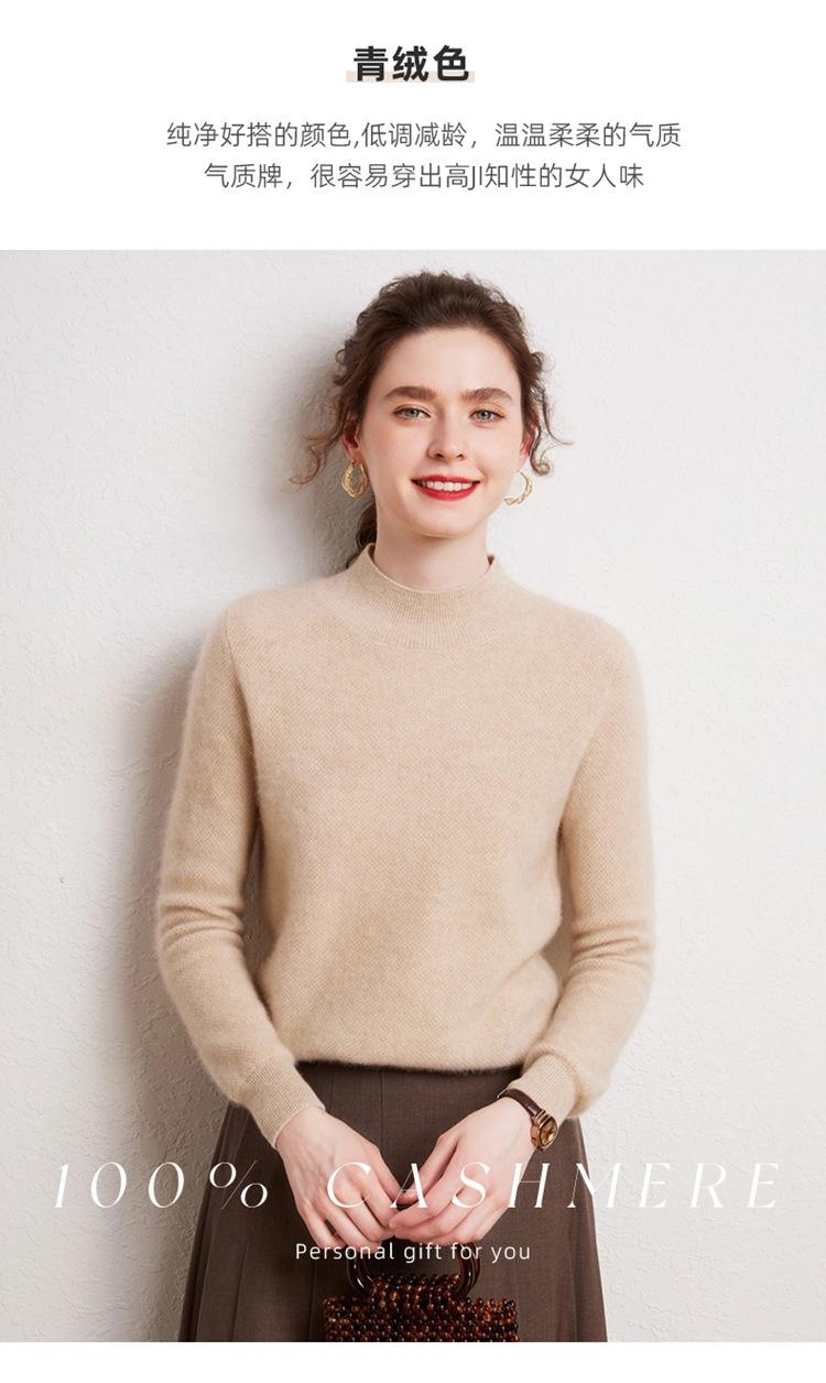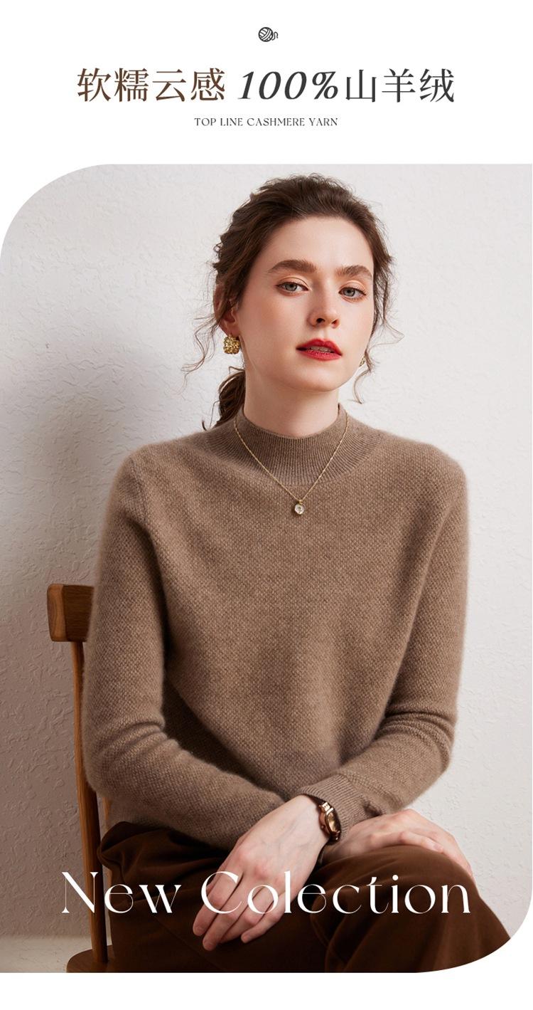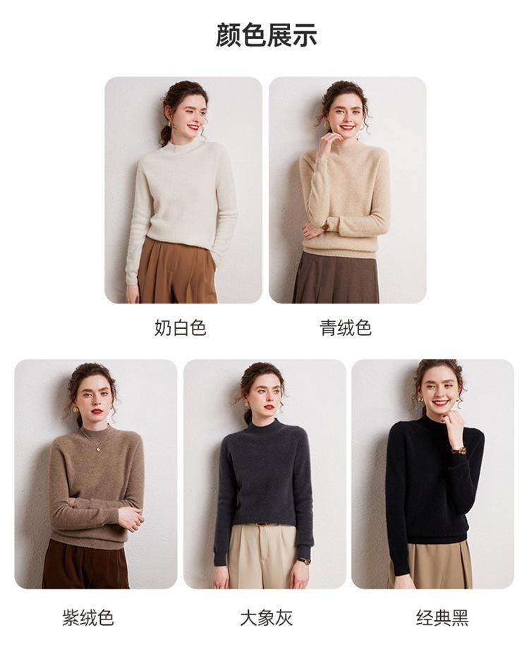 Suéter de cachemira completa para mujer, moderno de cuello alto medio, sencillo de color sólido, de punto osmanthus, holgado, adelgazante para ir al trabajo