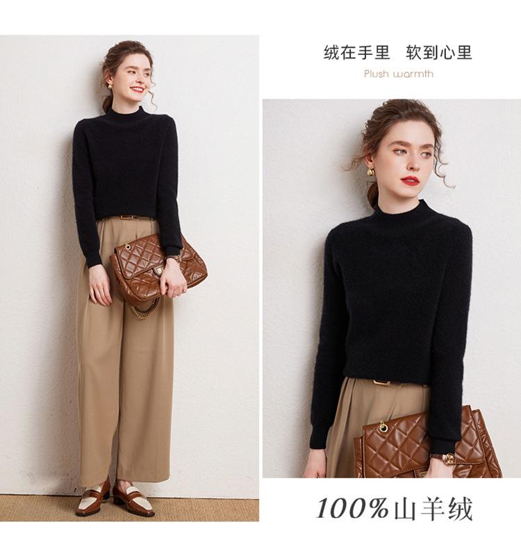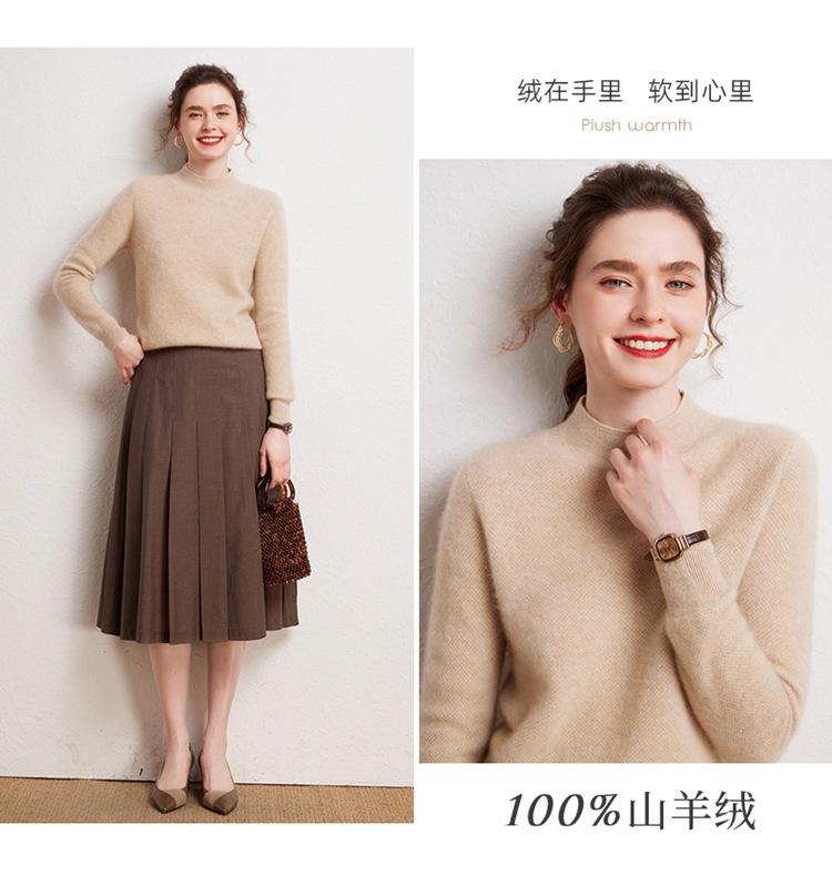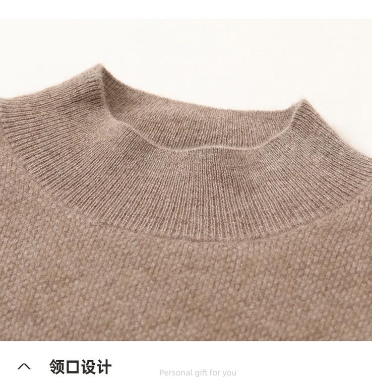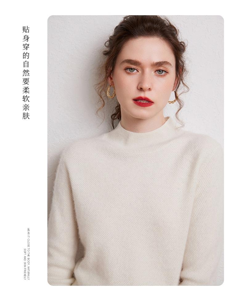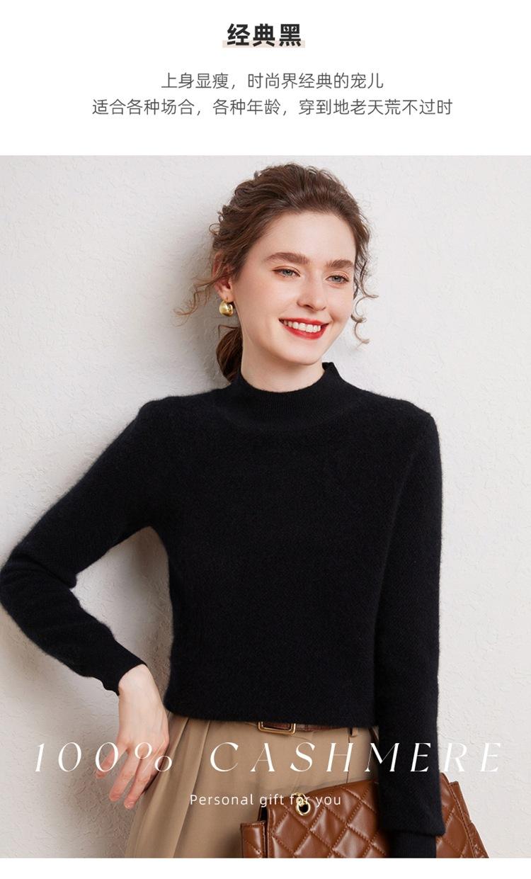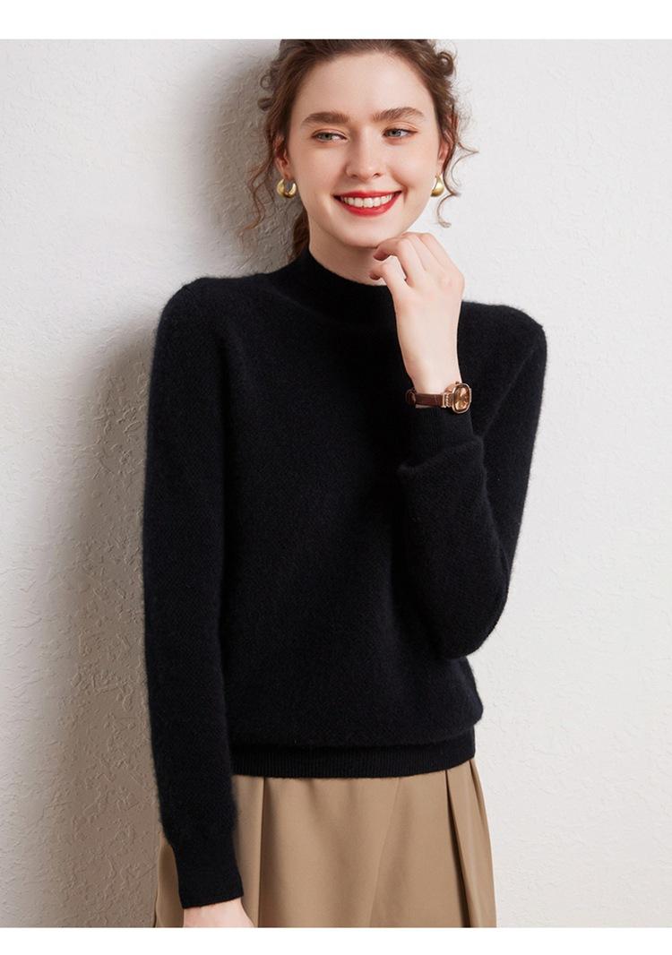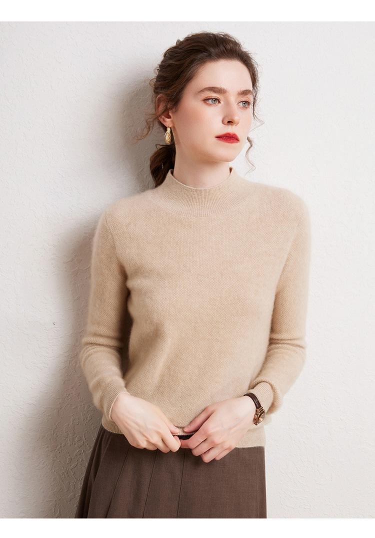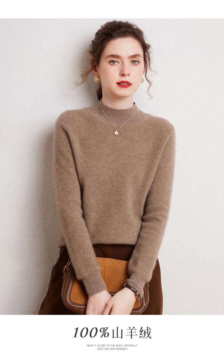 Suéter de cachemira completa para mujer, moderno de cuello alto medio, sencillo de color sólido, de punto osmanthus, holgado, adelgazante para ir al trabajo