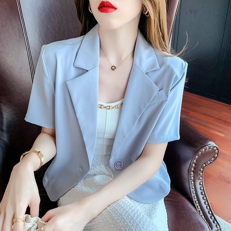 Chaqueta de Traje Corta de Manga Corta para Mujer Verano 2025 Nuevo Diseño Sentido Delgada Moda Casual Traje Top Corto Popular en Internet