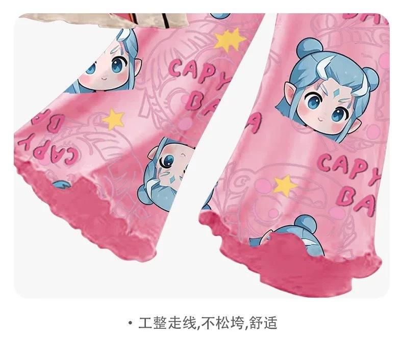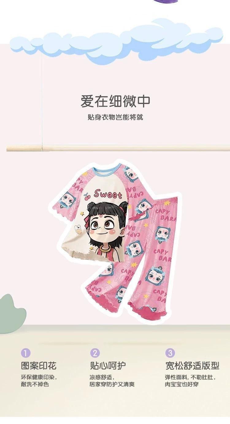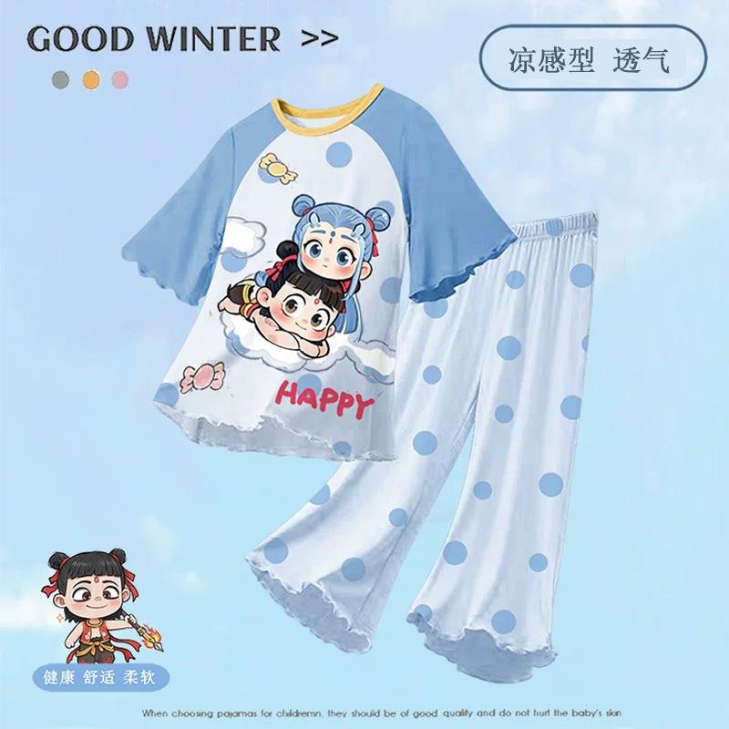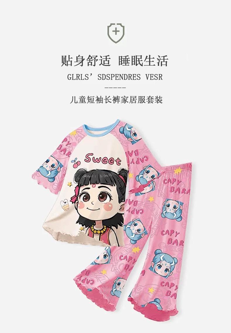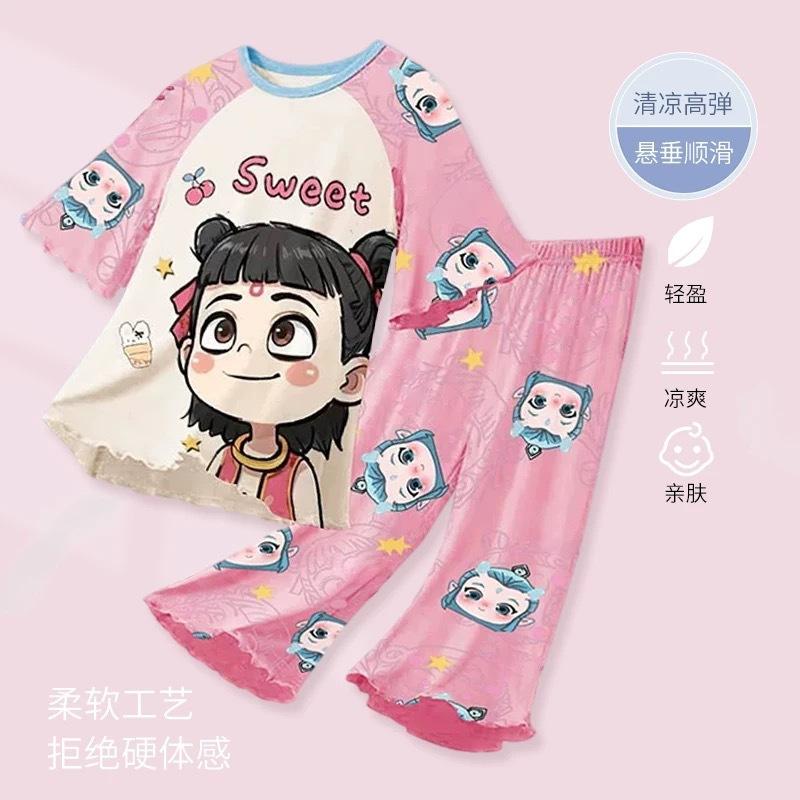 Pijamas de verano para niñas, pantalones finos de manga corta, grandes, para bebés, con dibujos animados, bonitos, para primavera y otoño.