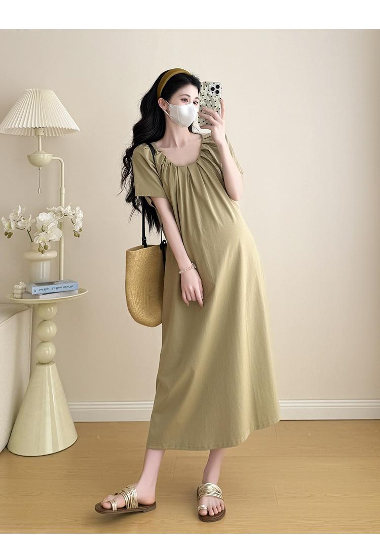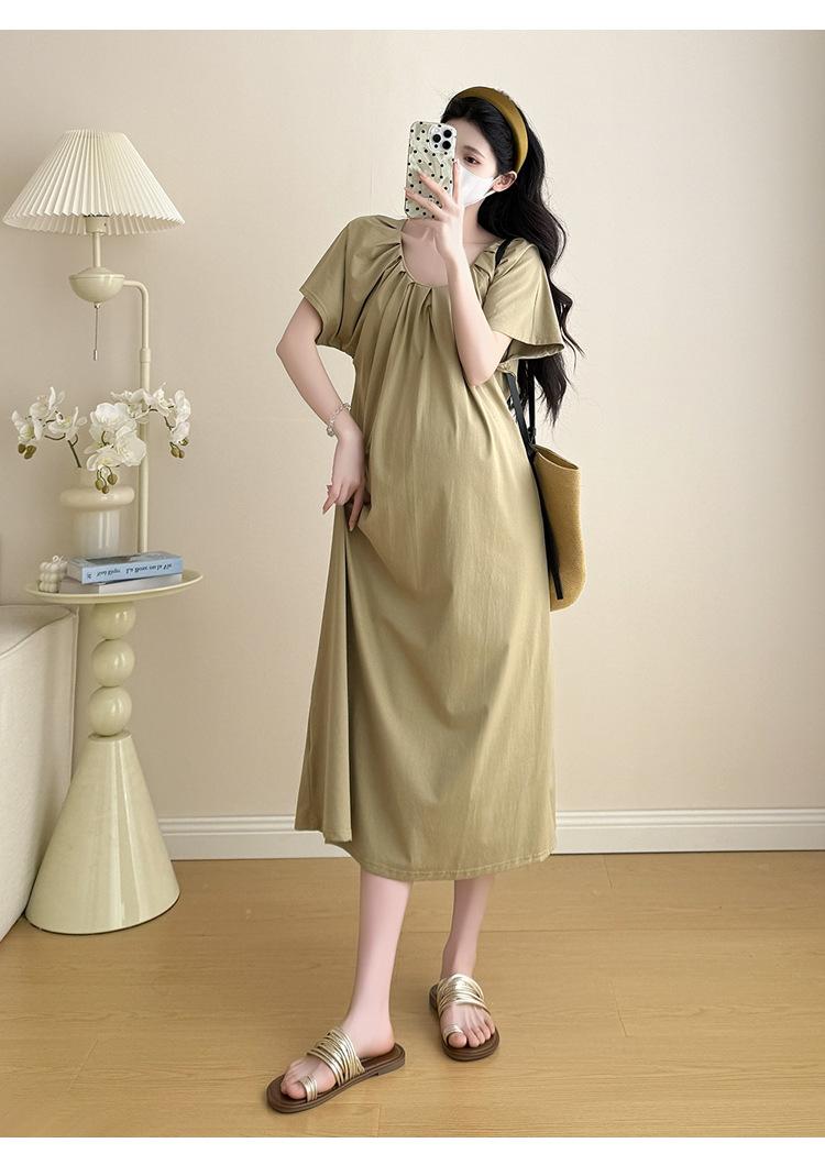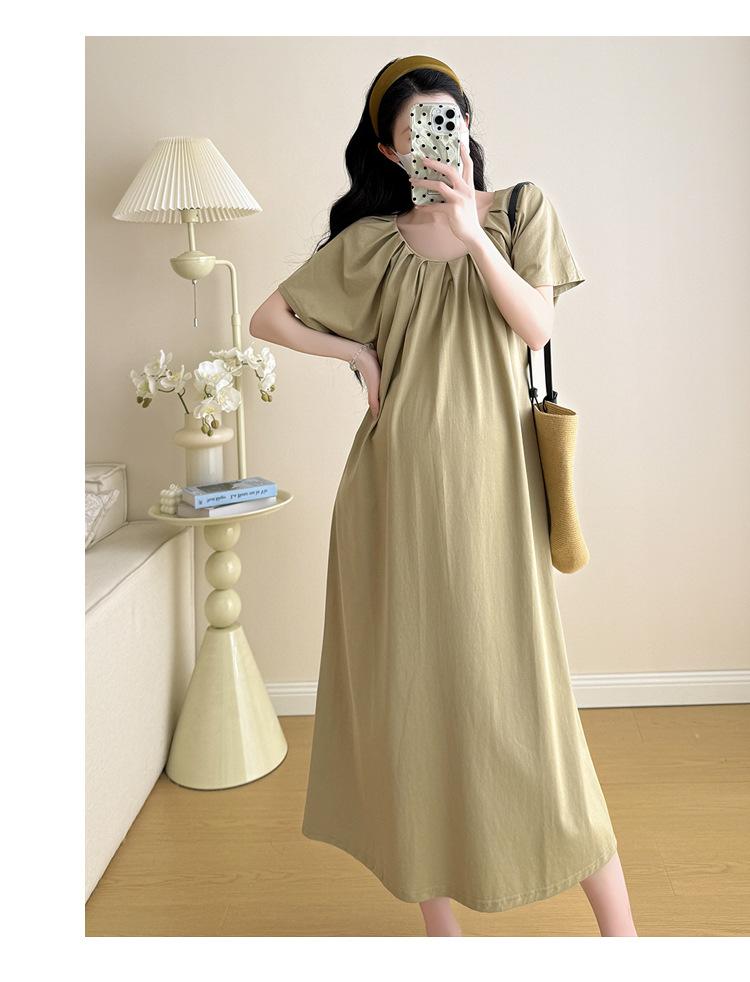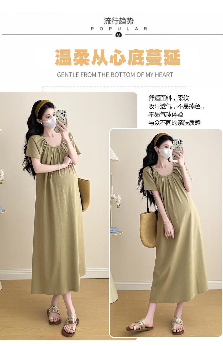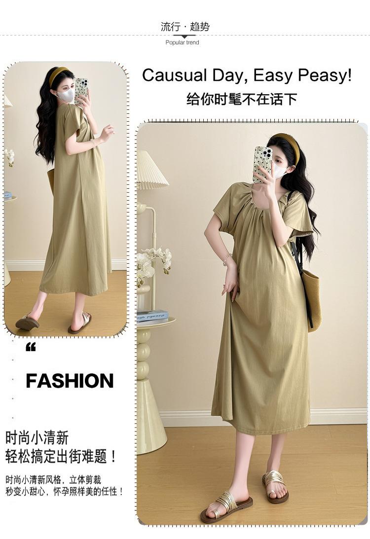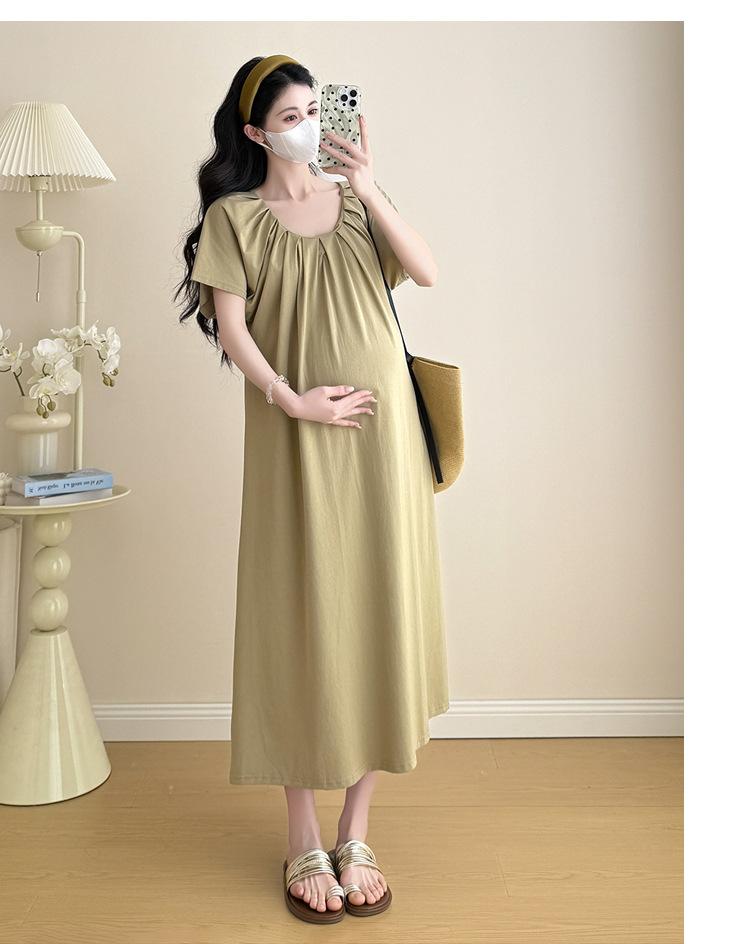Vestido de verano para embarazadas, holgado, adelgazante, de manga corta, largo y holgado.