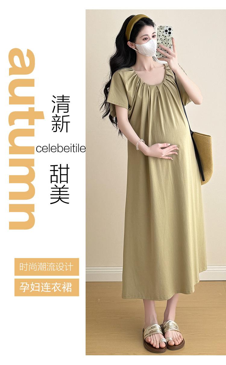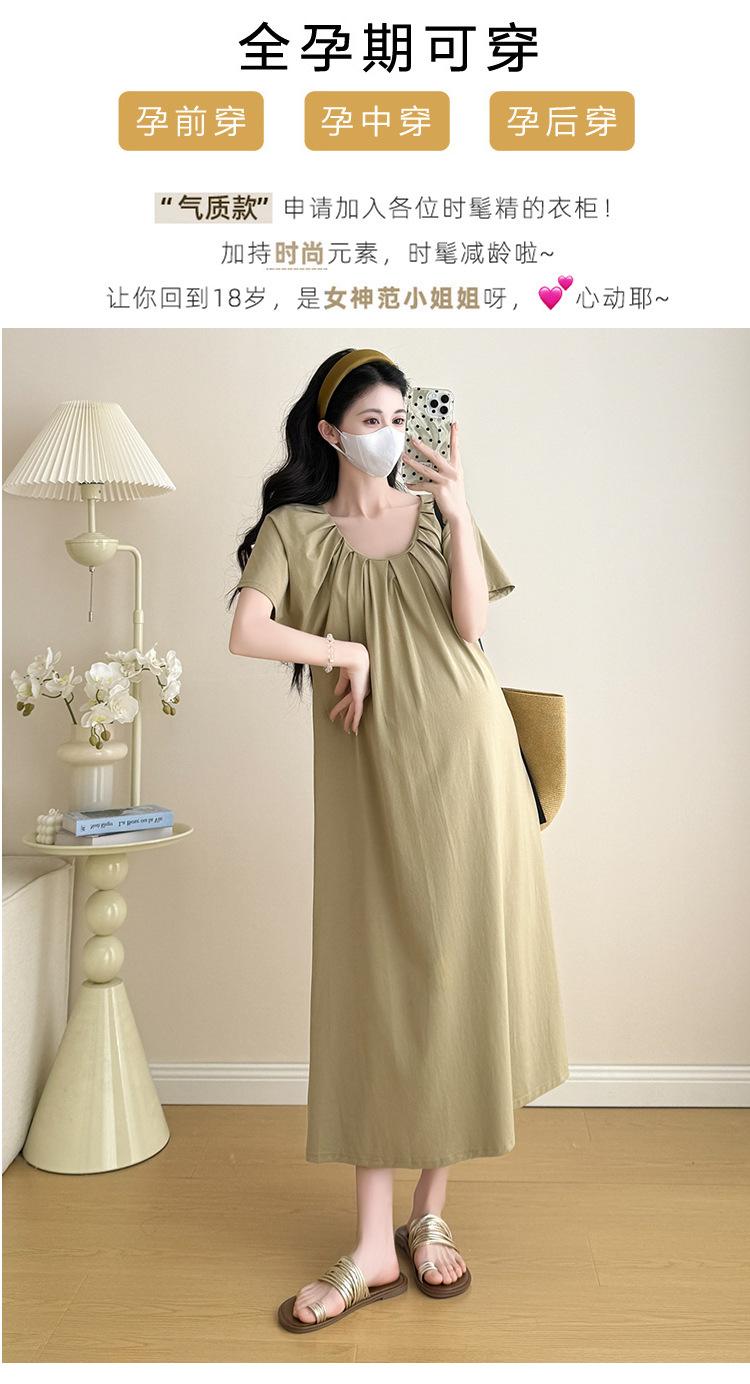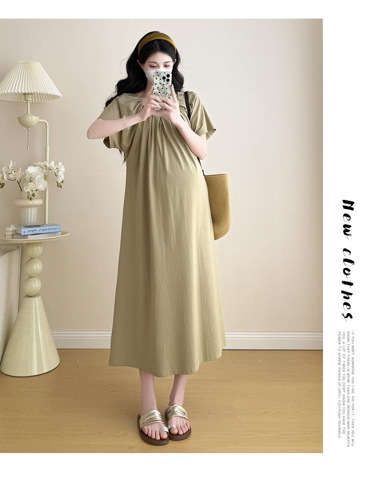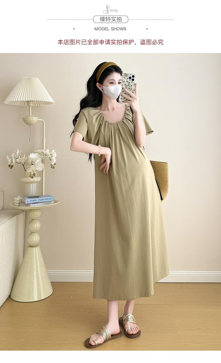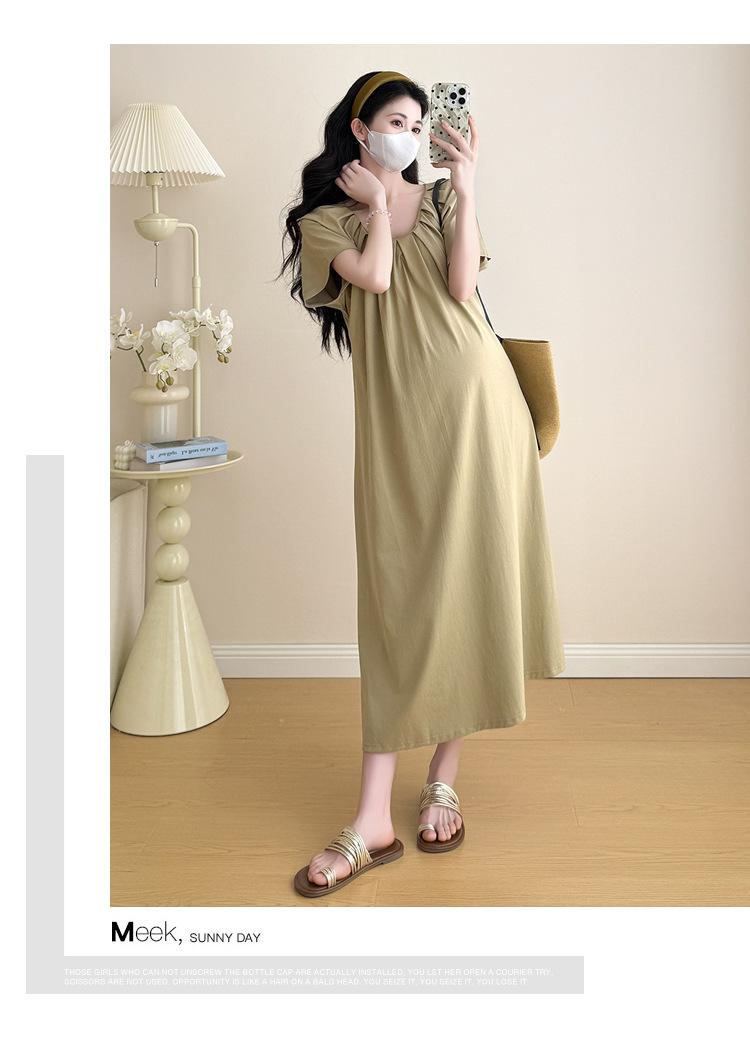 Vestido de verano para embarazadas, holgado, adelgazante, de manga corta, largo y holgado.