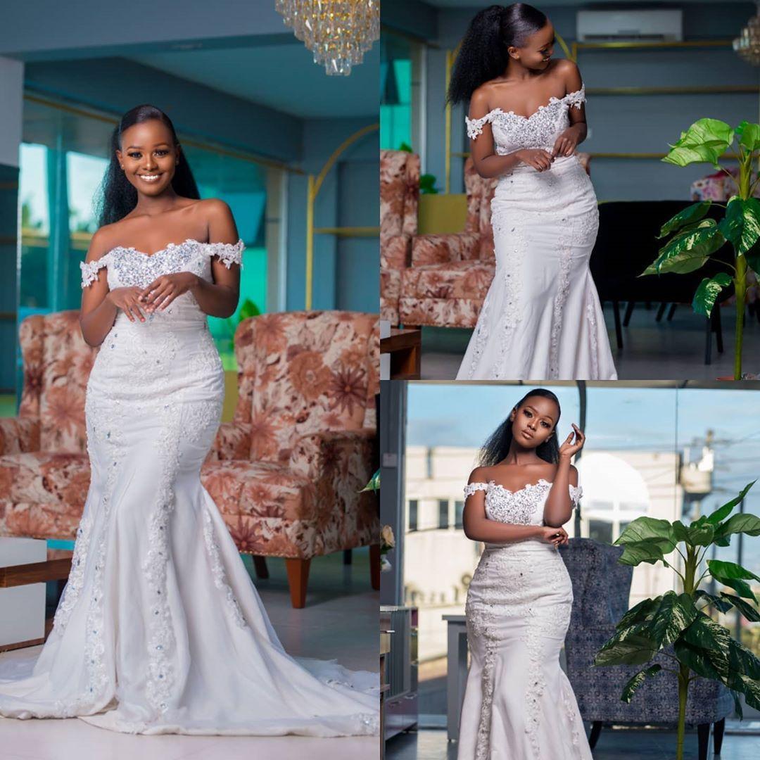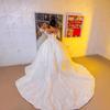 Vestido de Novia Transfronterizo 2025 Nuevo Cintura Media Manga Larga Encaje Blanco Francés Alta Costura Un Hombro Cola Grande Vestido de Novia Verano