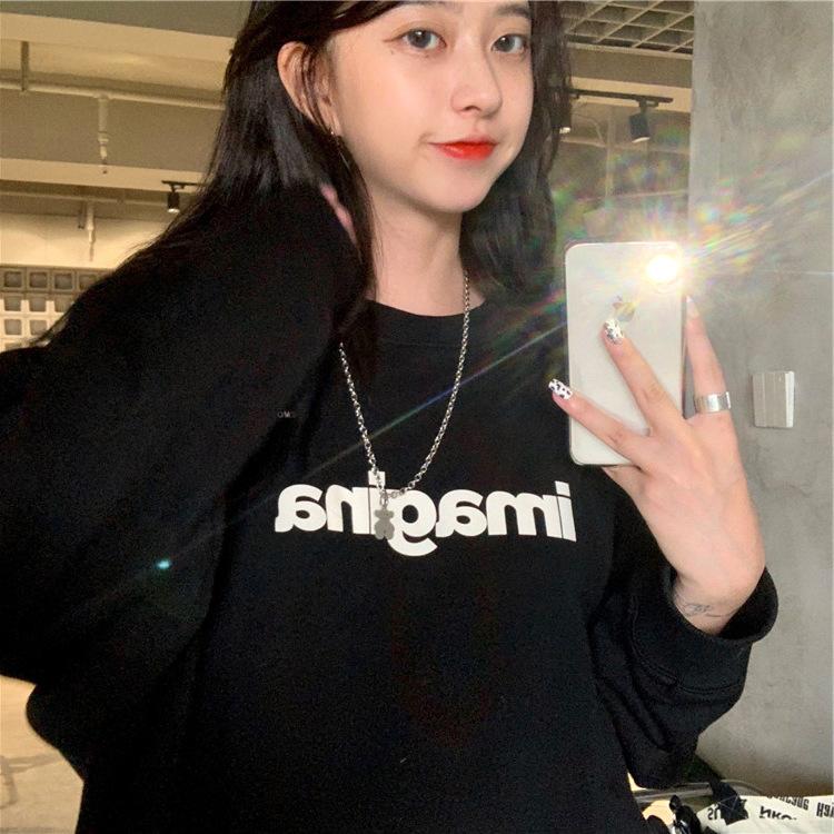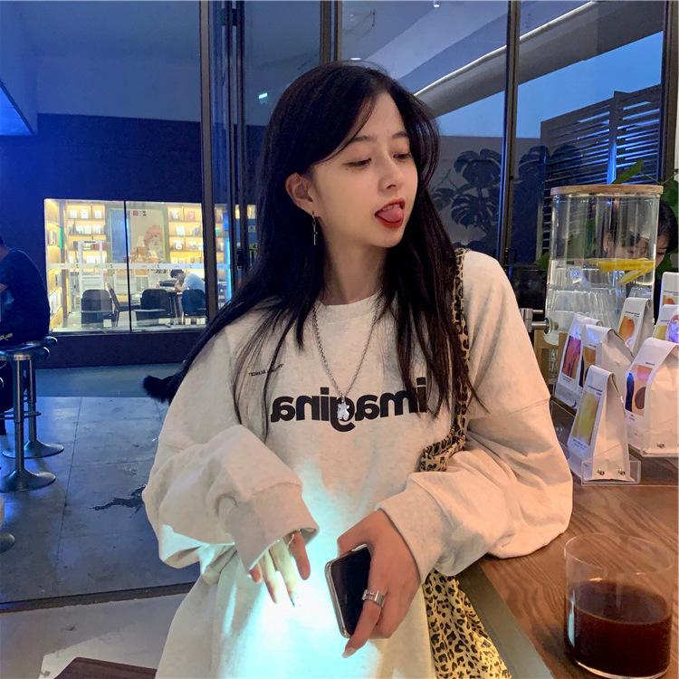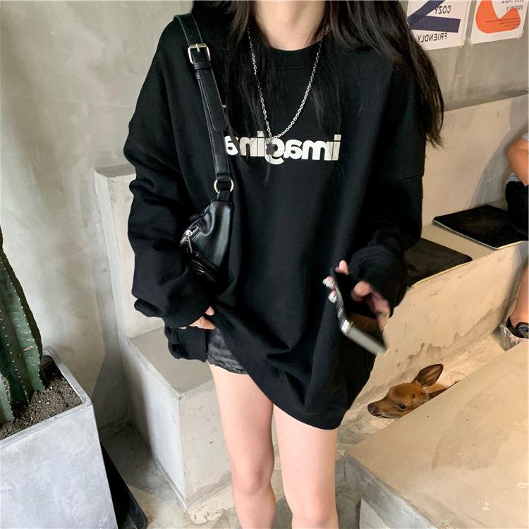 Sudadera con capucha de estilo K holgada y perezosa para otoño e invierno de 2025 para mujer, de manga larga, casual para estudiantes, con letras