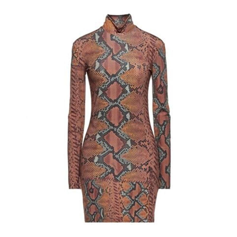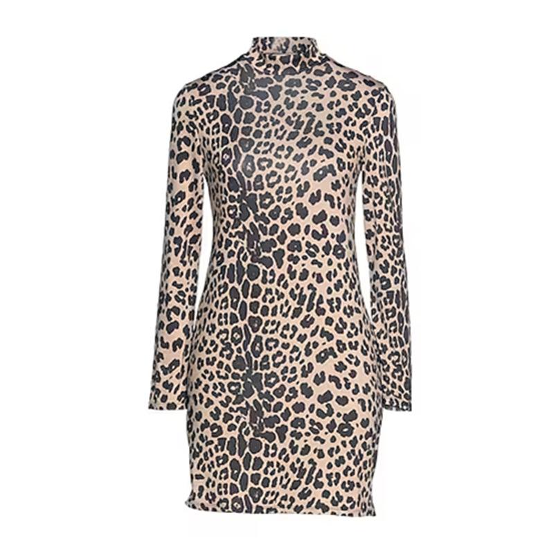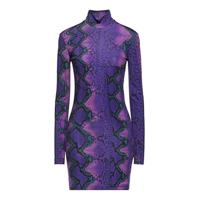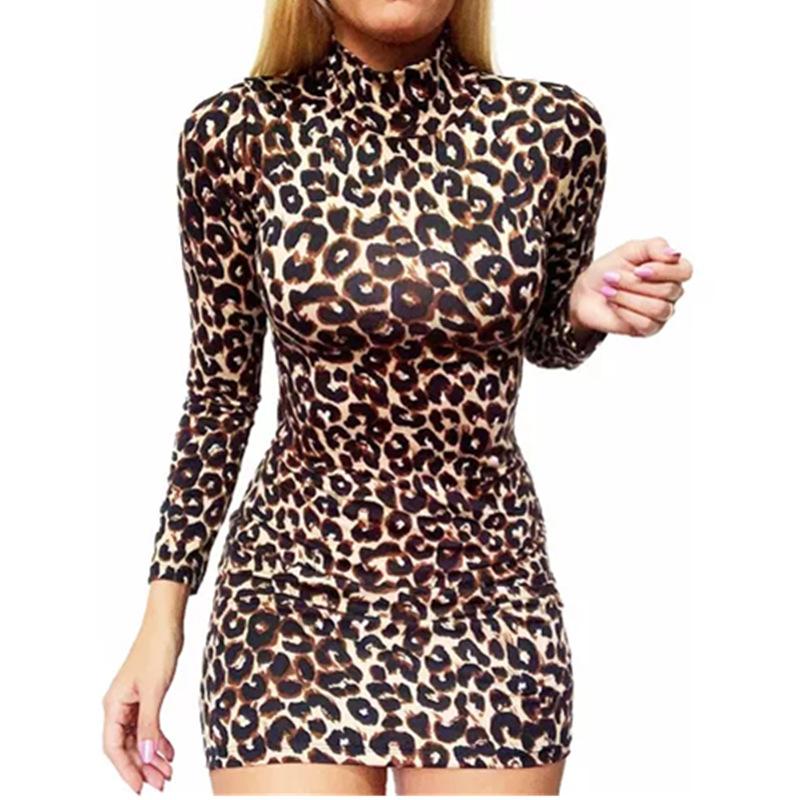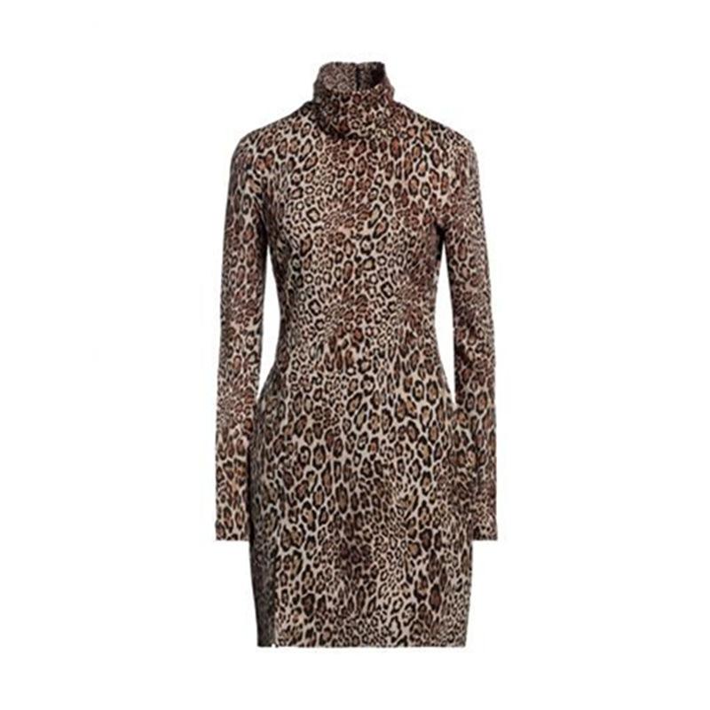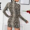 Explosivo Europeo y Americano AliExpress 2024 Verano Nuevo Jersey de Cuello Alto Leopardo Serpiente Manga Larga Vestido Ajustado Sexy