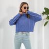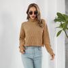 Suéter Corto de Cuello Alto con Trenzas Nuevo para Mujer Suelto Otoño e Invierno Manga Larga Tejido Suéter Moda Europea y Americana Suéter Transfronterizo Nuevo