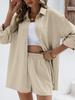 Comercio Exterior Transfronterizo Set de Camisa de Solapa de Manga Larga de Color Sólido para Primavera para Mujer Europea y Americana y Shorts Elásticos de Cintura Alta, Cómodo y Casual
