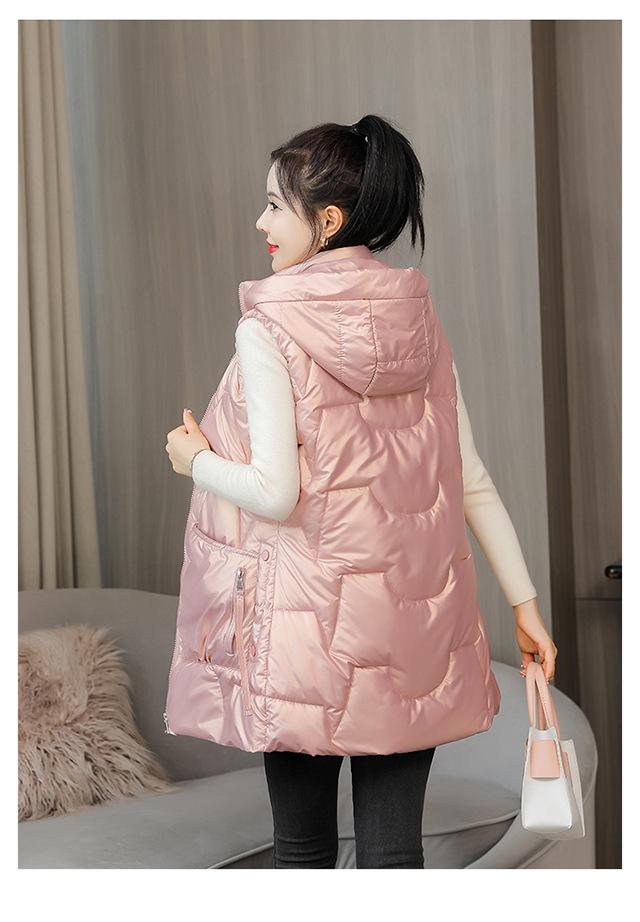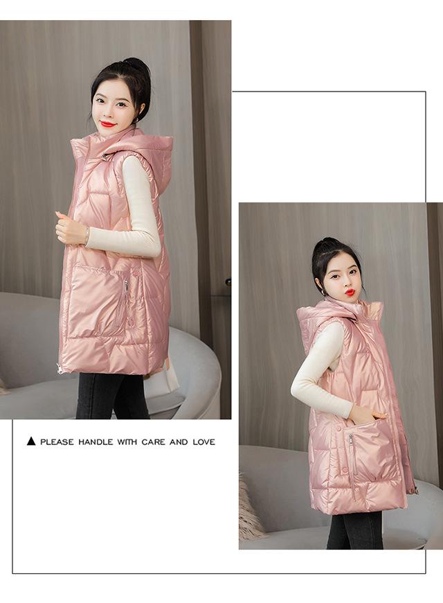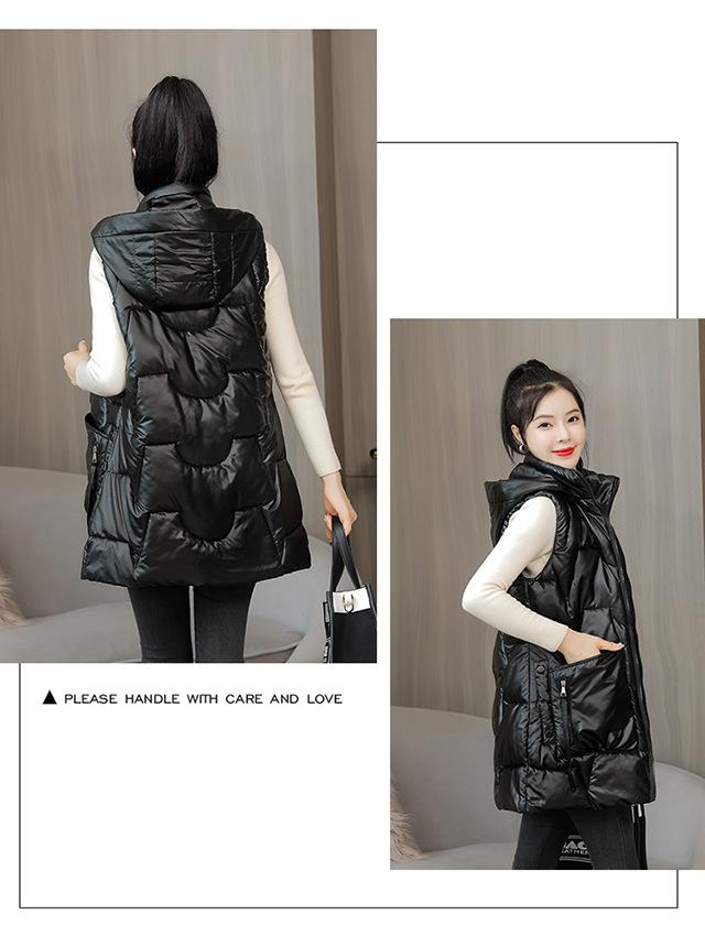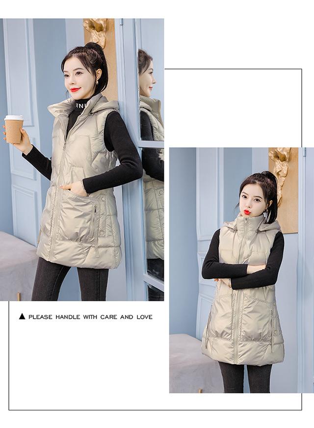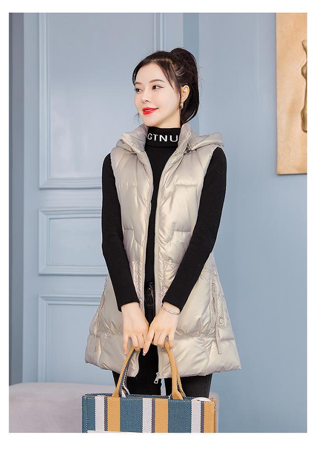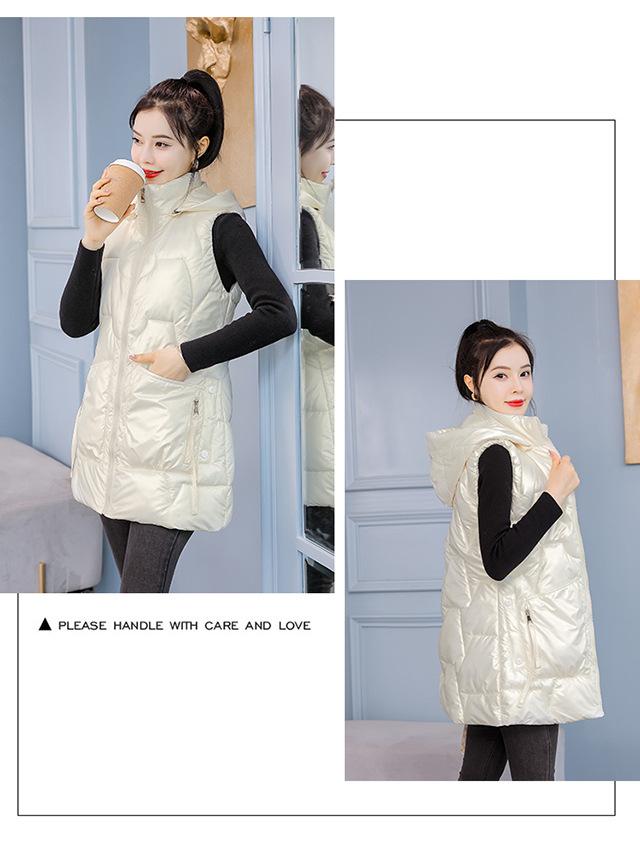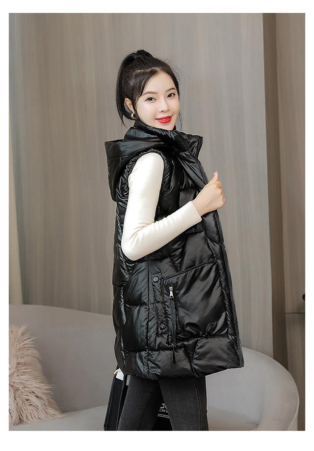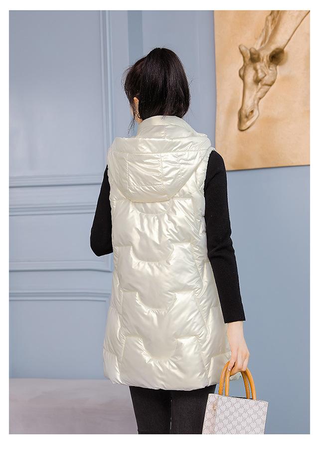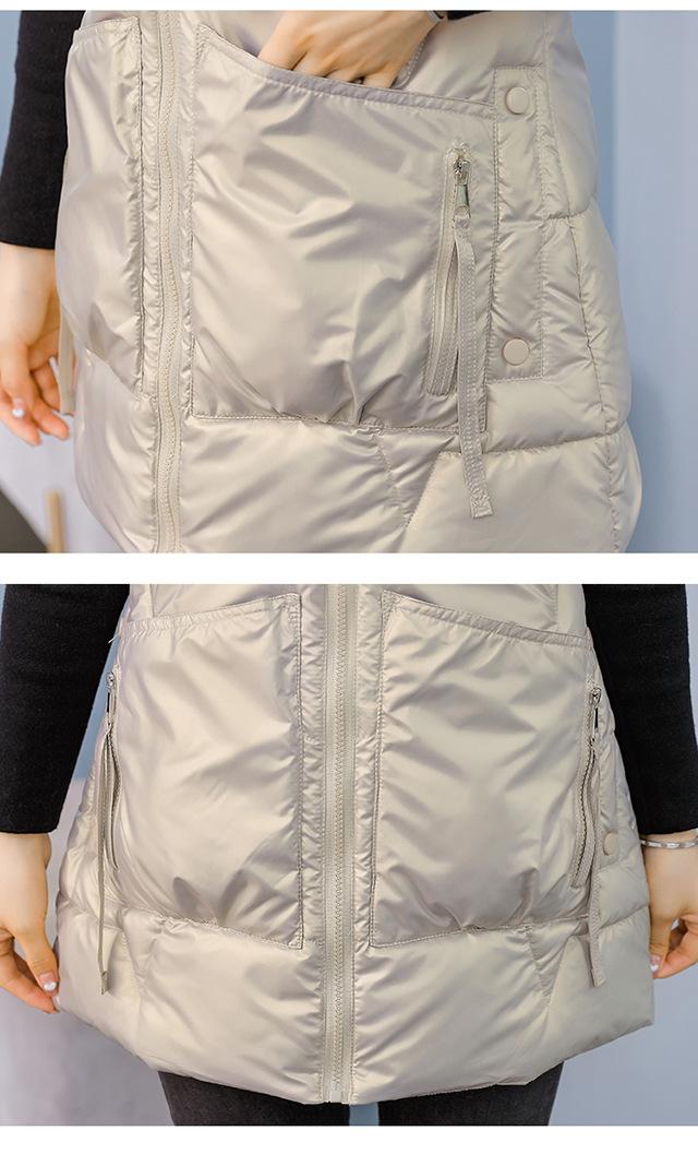 Chaleco Brillante sin Lavado para Mujer Largo Medio Nuevo Otoño e Invierno Chaleco Acolchado de Algodón Plumón Chaqueta Exterior de Moda