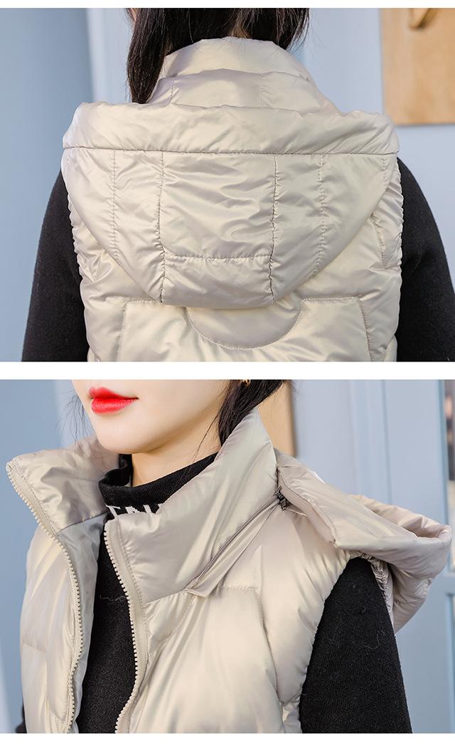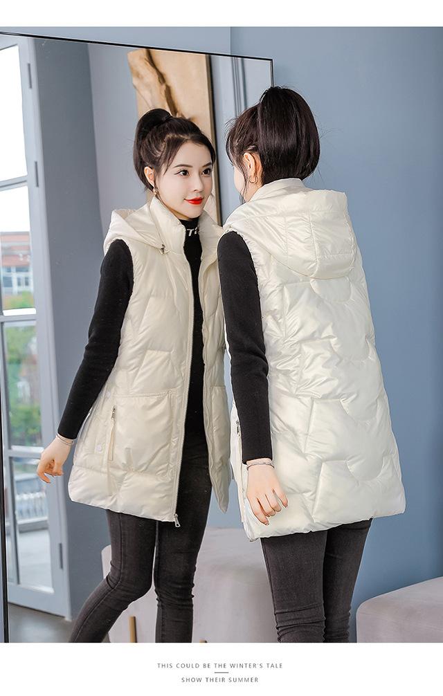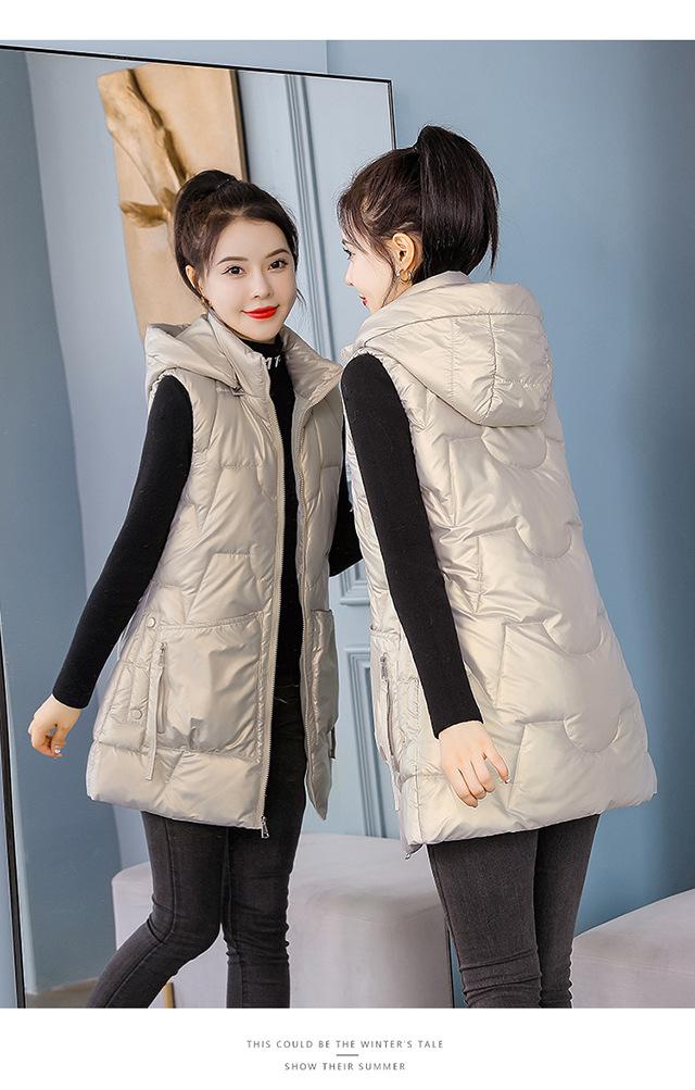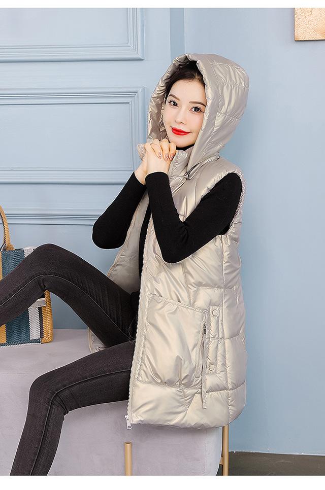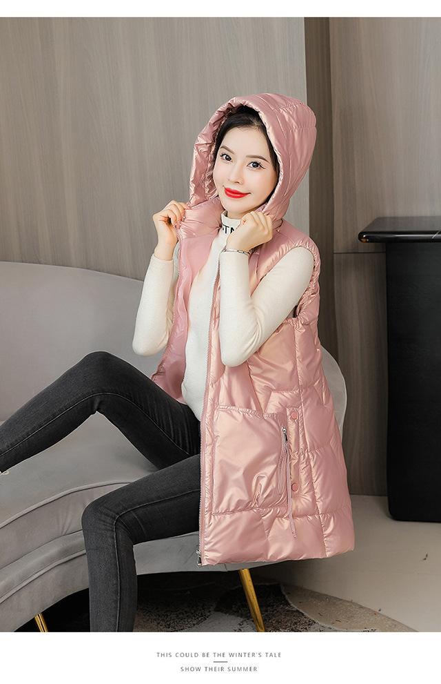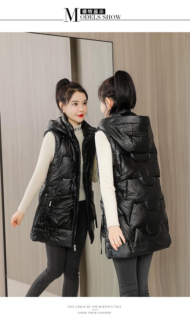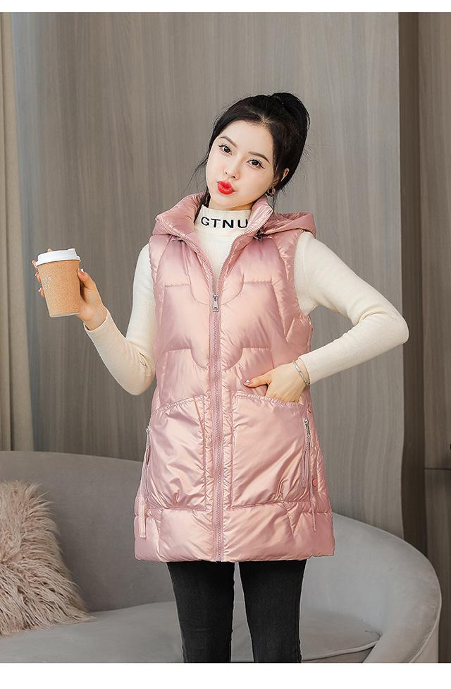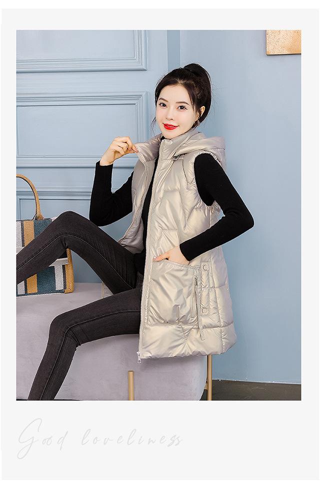 Chaleco Brillante sin Lavado para Mujer Largo Medio Nuevo Otoño e Invierno Chaleco Acolchado de Algodón Plumón Chaqueta Exterior de Moda