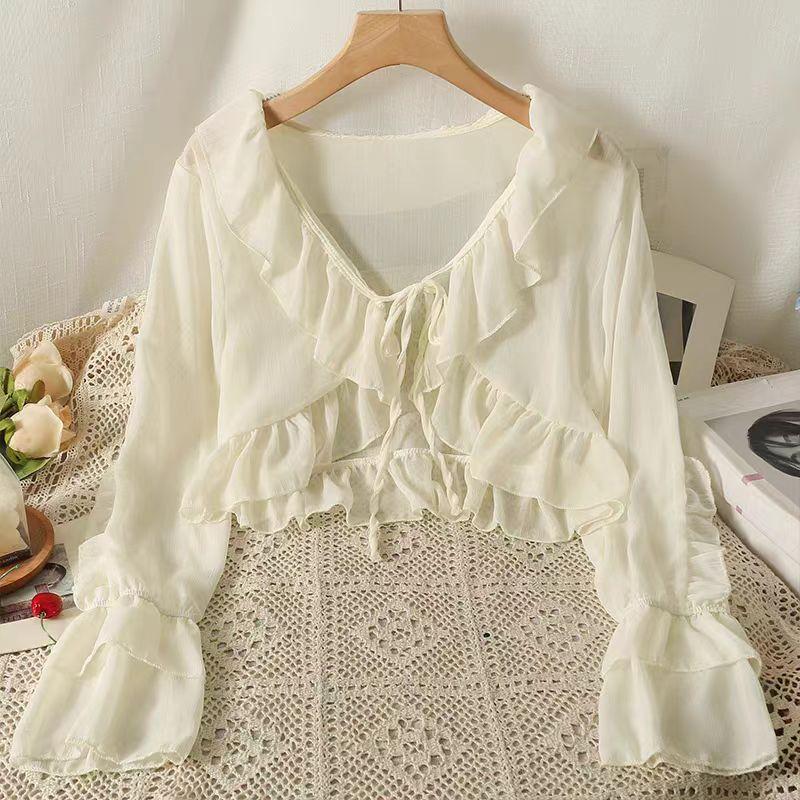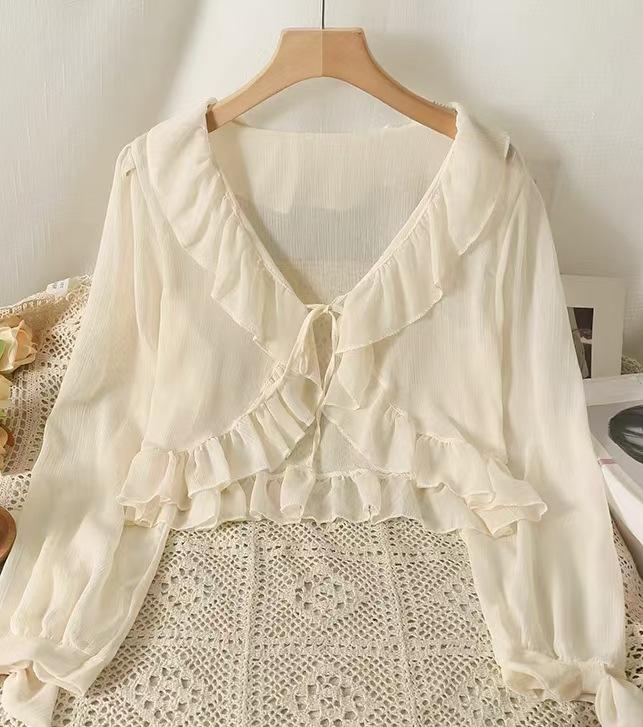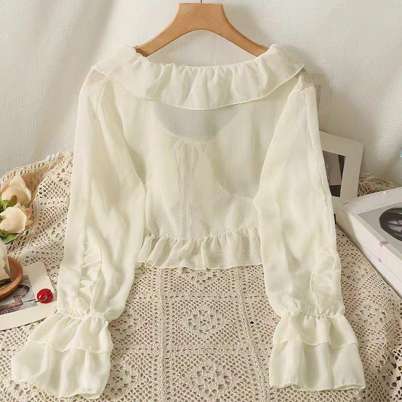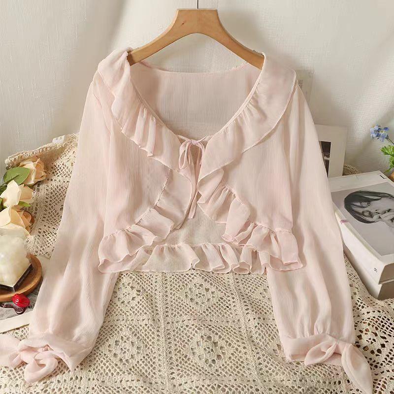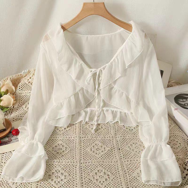 Ropa Exterior de Verano para Mujer Cárdigan Ligero Transpirable de Chifón Chaqueta con Falda de Tirantes Chal Pequeño Blusa para Mujer